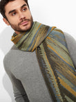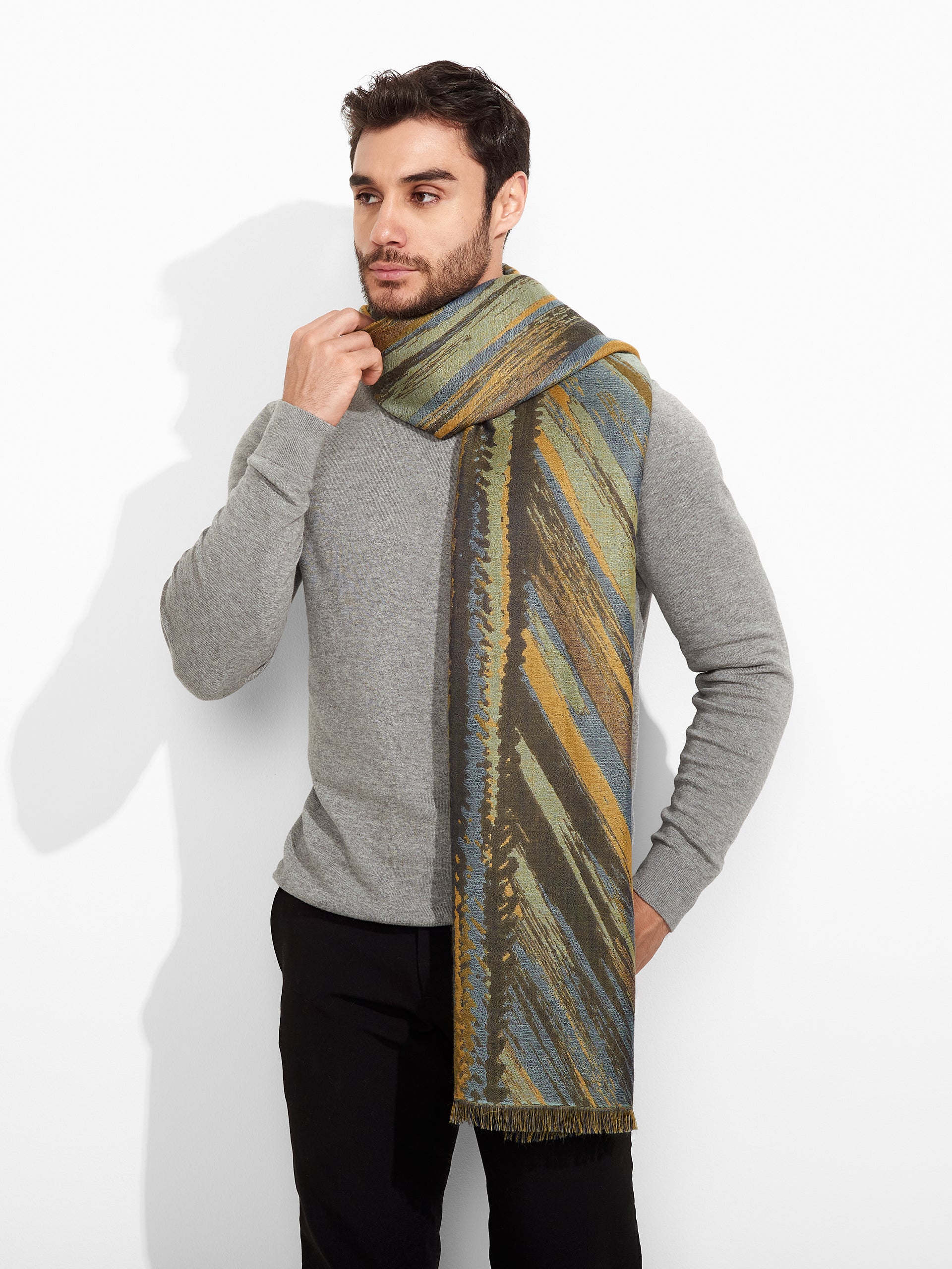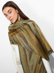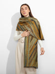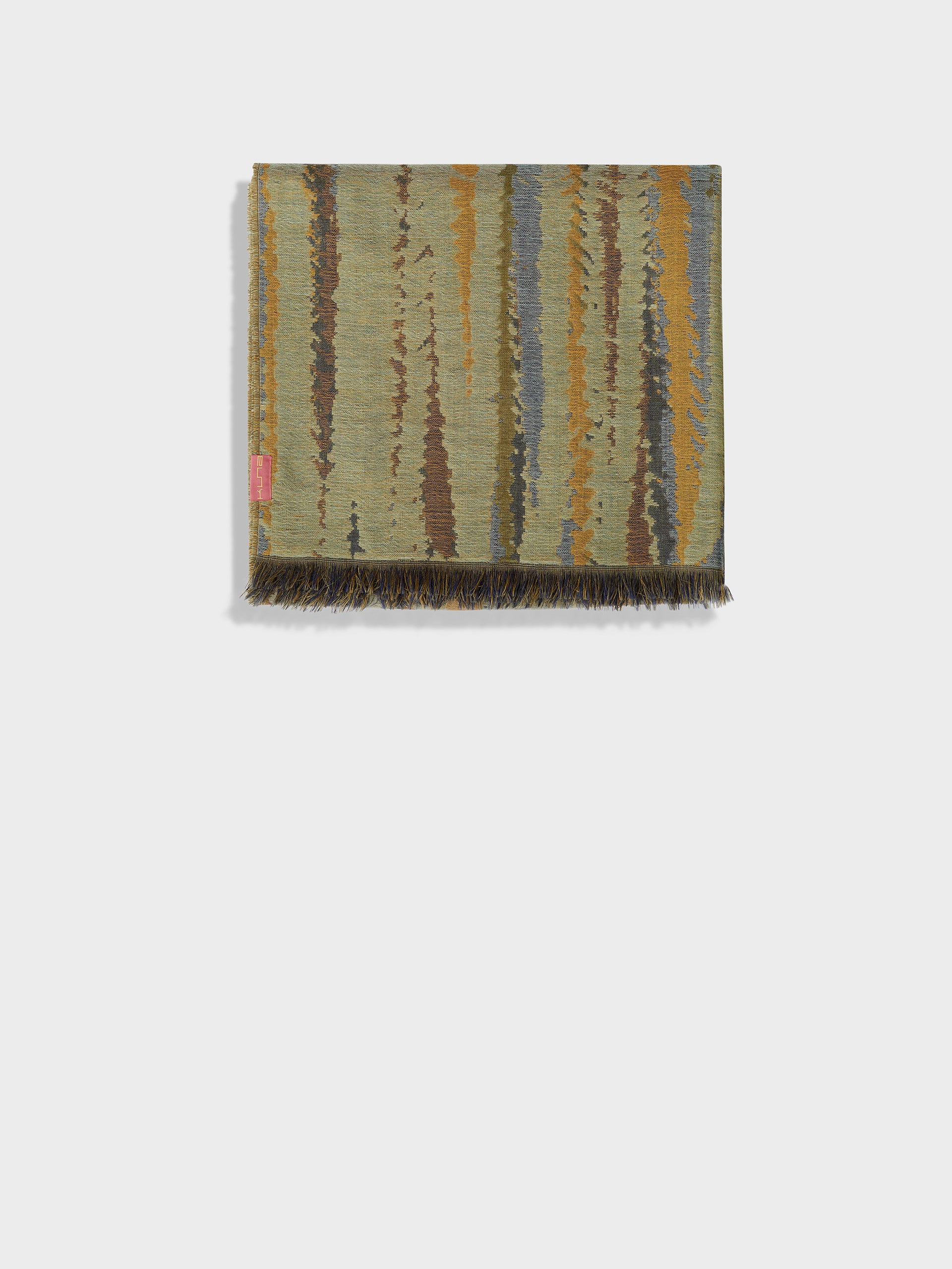 Zidny Stole in multicolor, featuring a jacquard weave with an irregular line design and fine fringed edges that complete its finish. Crafted from baby alpaca and silk. | Predominant material: Baby Alpaca
