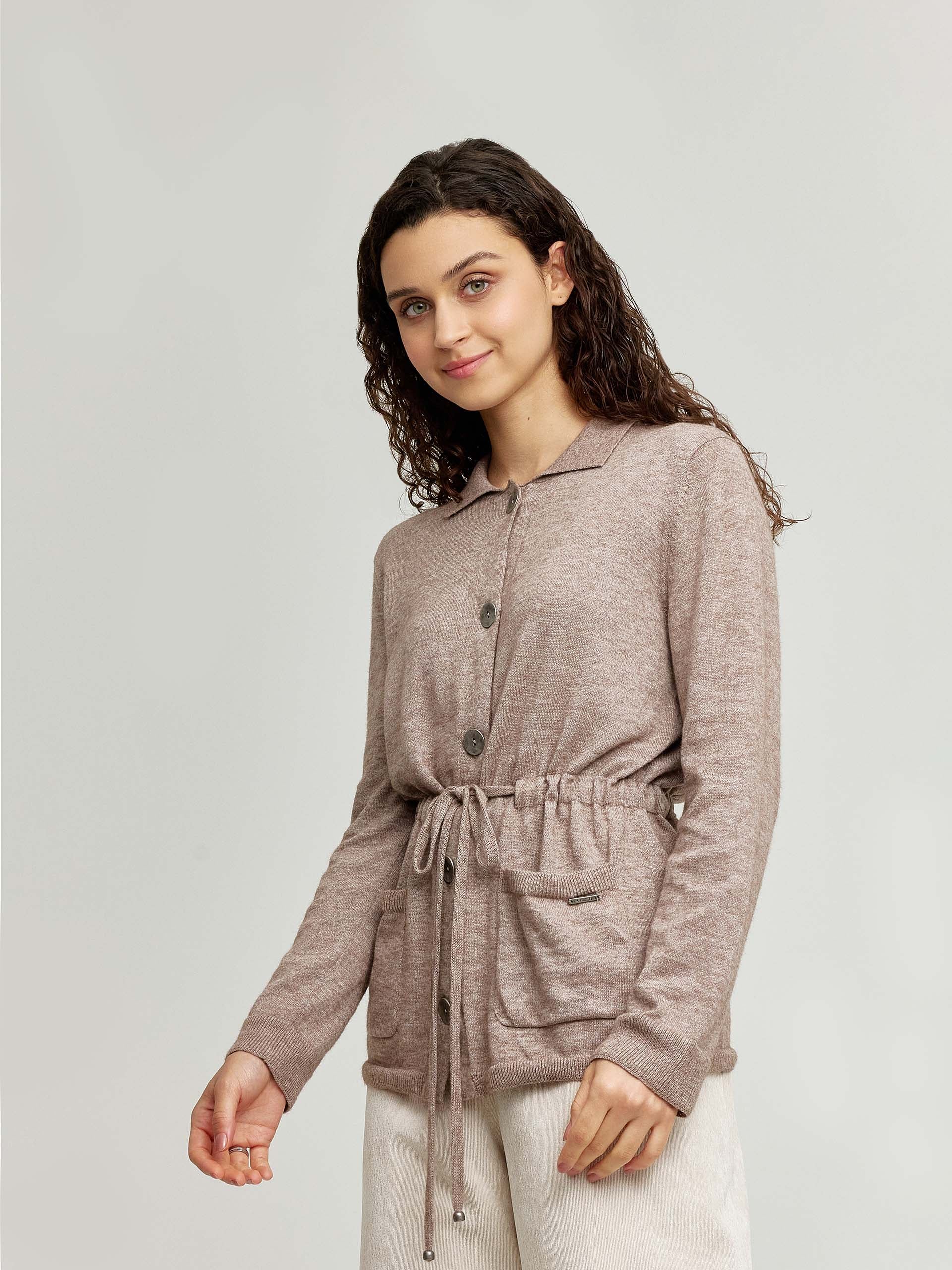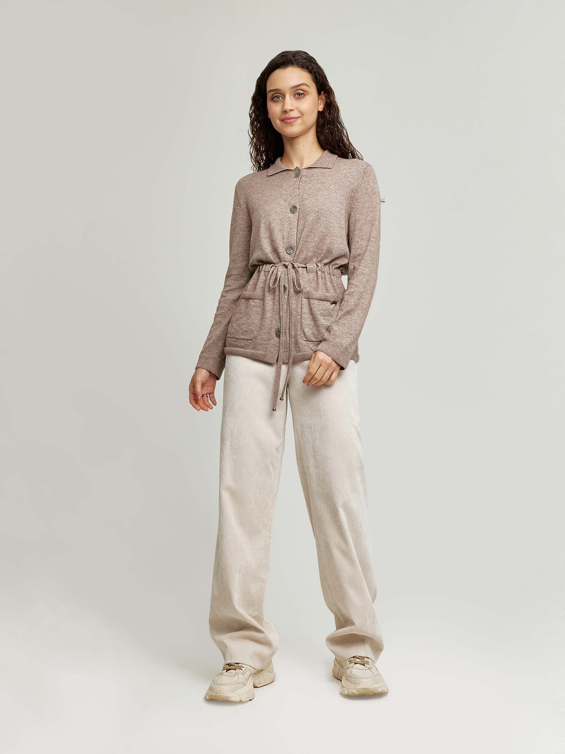 Beautiful cardigan made with organic cotton and baby alpaca. The Wallis cardigan is a minimalist garment with a shirt-style collar, a collected detail in jersey at the waist providing a unique fall with a romantic style. A classic garment in two characteristic colors of the collection. | Predominant material: Cotton & Baby Alpaca