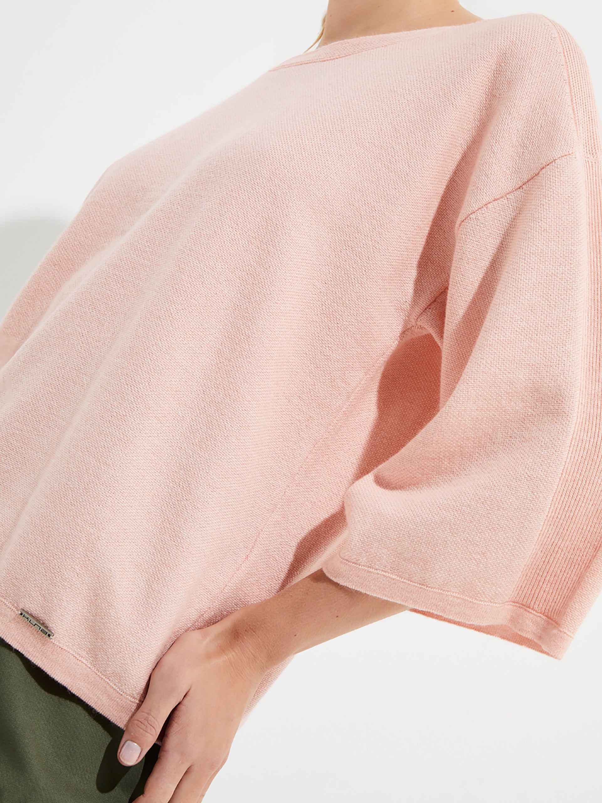 The Yolene sweater is the perfect casual garment for this season. Made of organic cotton and baby alpaca, this three-quarter sleeve sweater combines comfort and style. Available in three basic shades, it features a semi round neckline and an oversize design for a relaxed look. | Predominant material: Cotton