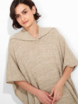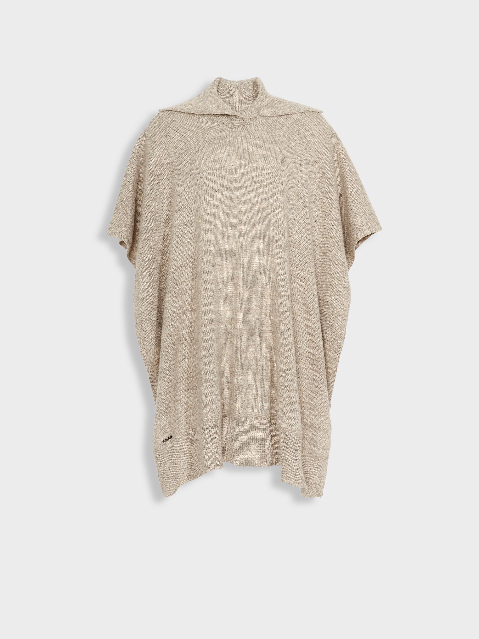 Zoila Poncho in beige tone, featuring a wide ribbed collar that complements its loose silhouette and open cut in a solid color. Crafted from baby alpaca, it offers warmth and softness. | Predominant material: Baby Alpaca