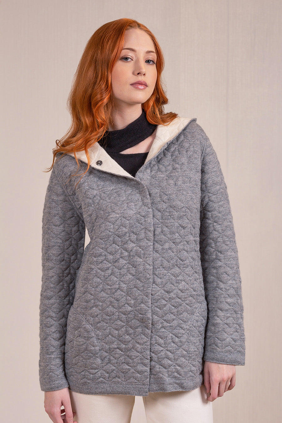 Cárdigan Varsovia De Baby Alpaca & Algodón Smoke & Ecru