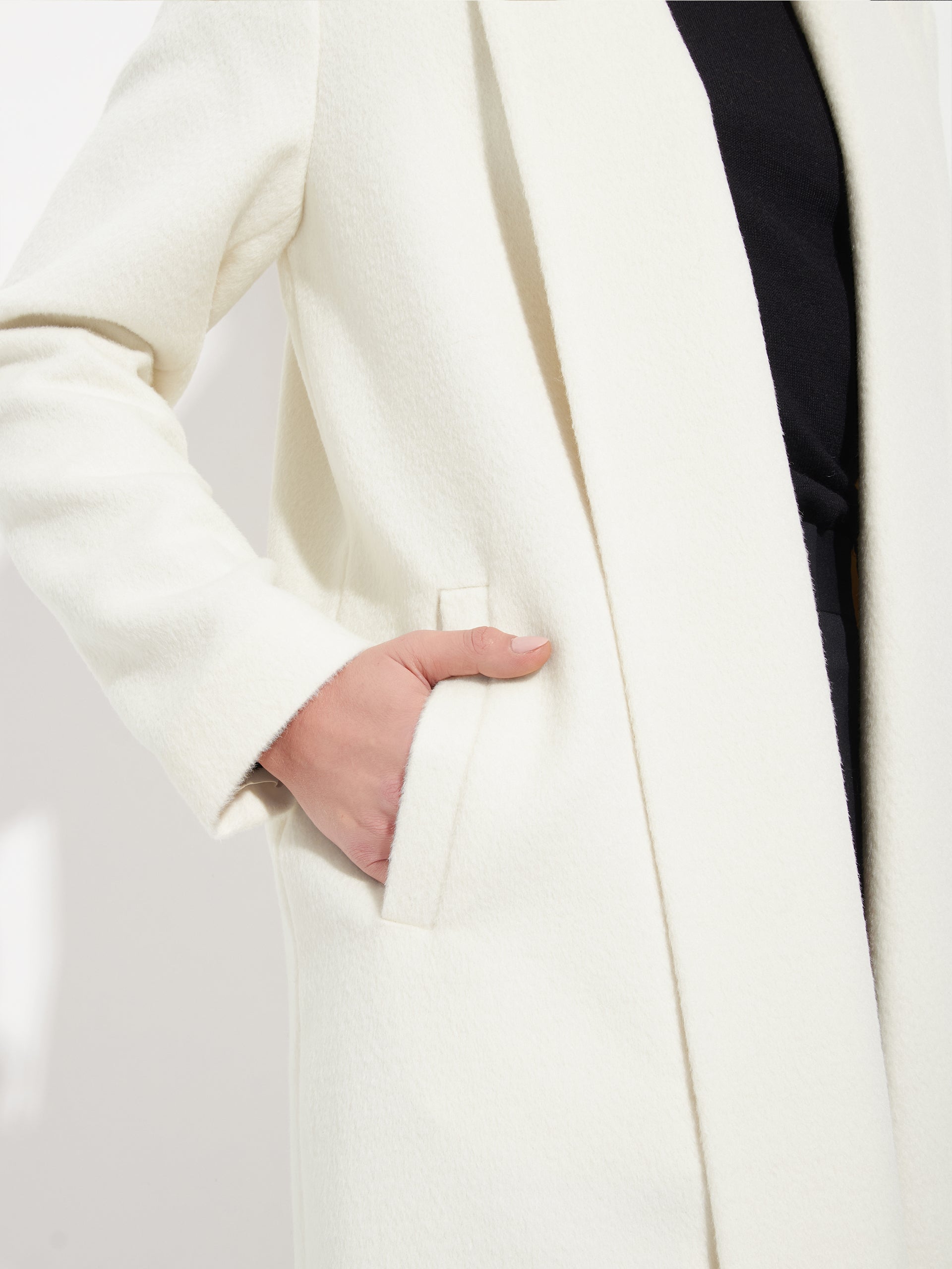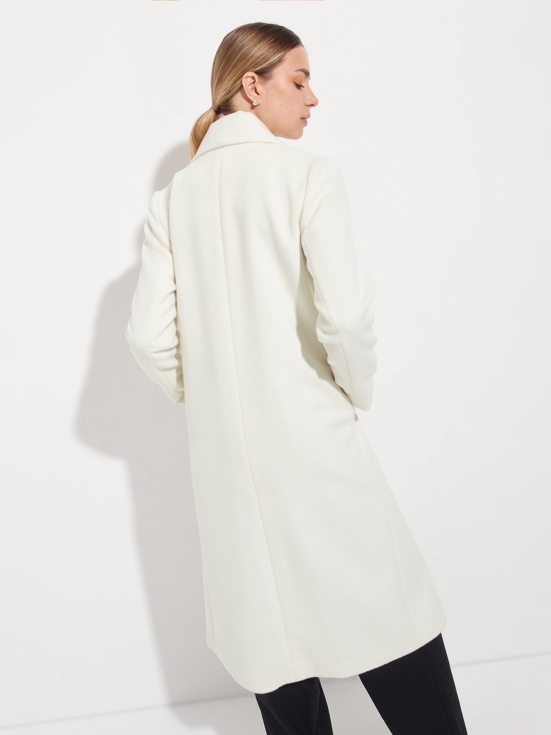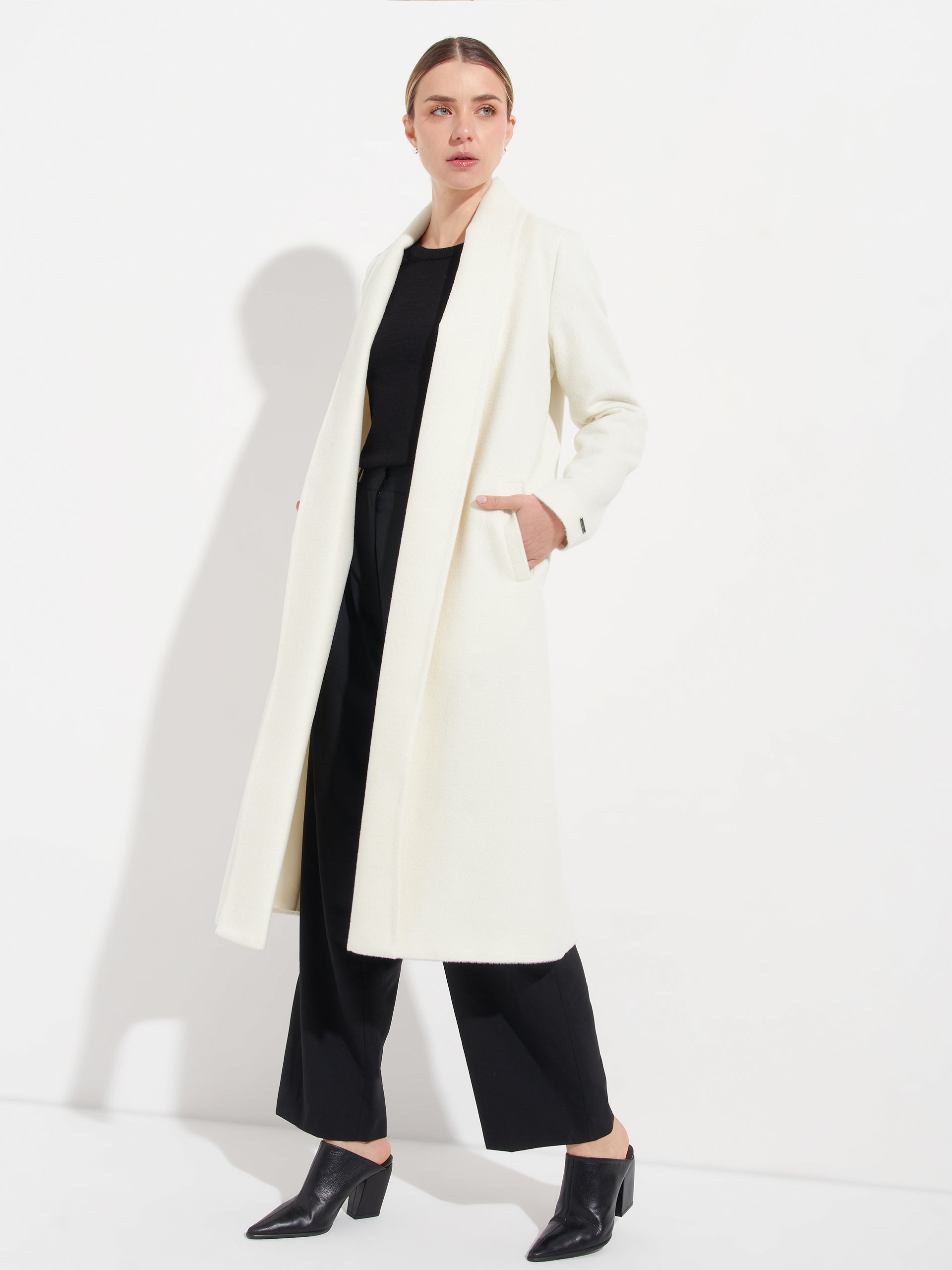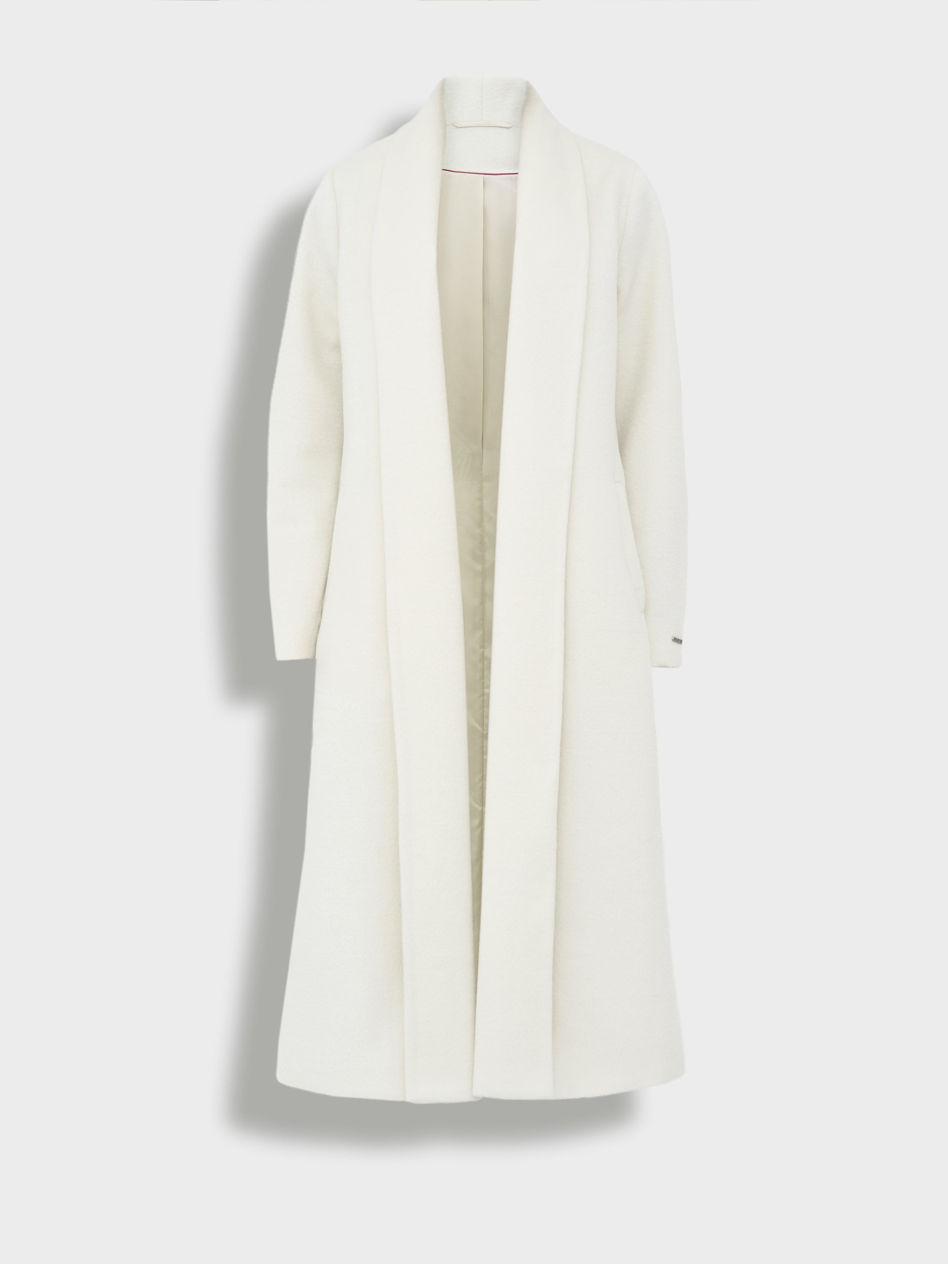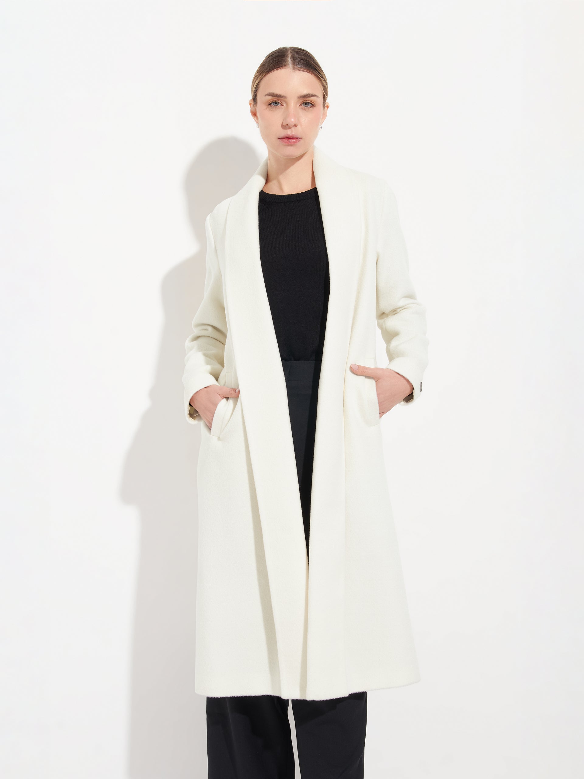 The Long Swing coat appears to be an exceptionally elegant and well-designed garment. The combination of sober and bright shades offers an interesting contrast that adds depth and style to the garment. This play of converging colors creates an attractive visual effect. Made of baby alpaca and wool. | Predominant material: Baby Alpaca