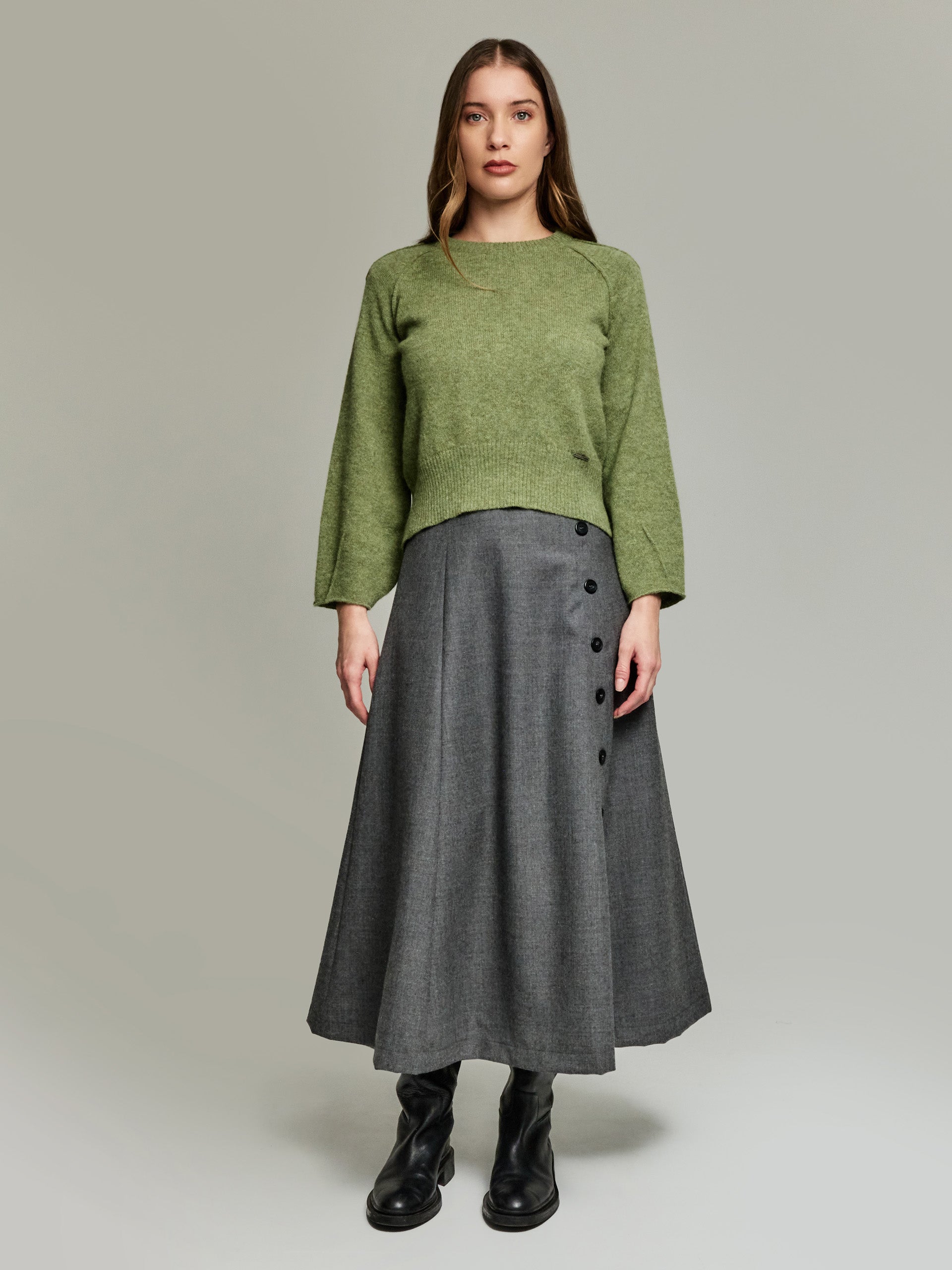 Elegant and cozy, this Jersey knit sweater is made of 100% baby alpaca. The Yovi sweater features a round neck, wide sleeves and oversize style for a modern and comfortable look. Available in two shades, reinvent your winter looks with this garment. | Material predominante: Baby Alpaca