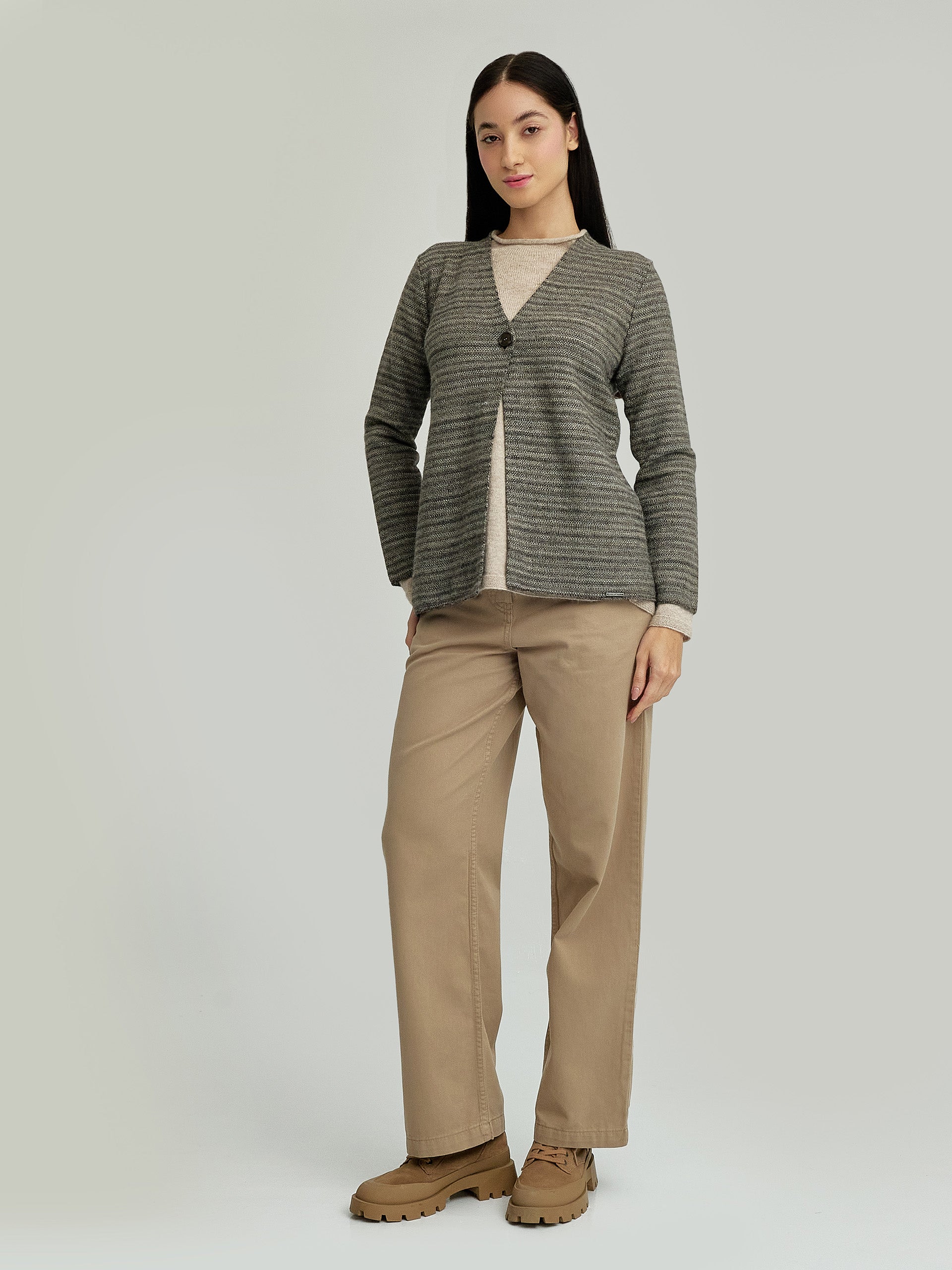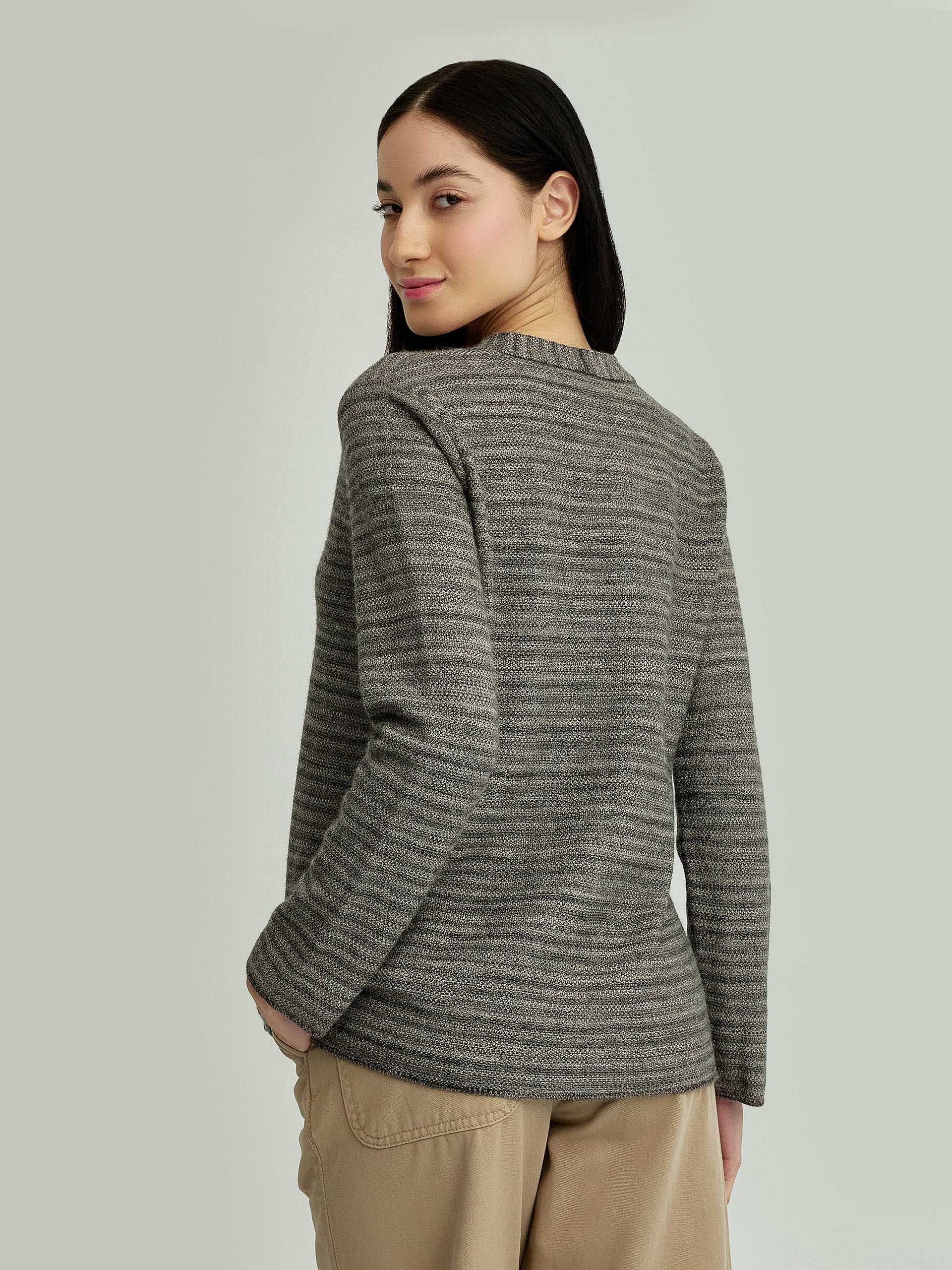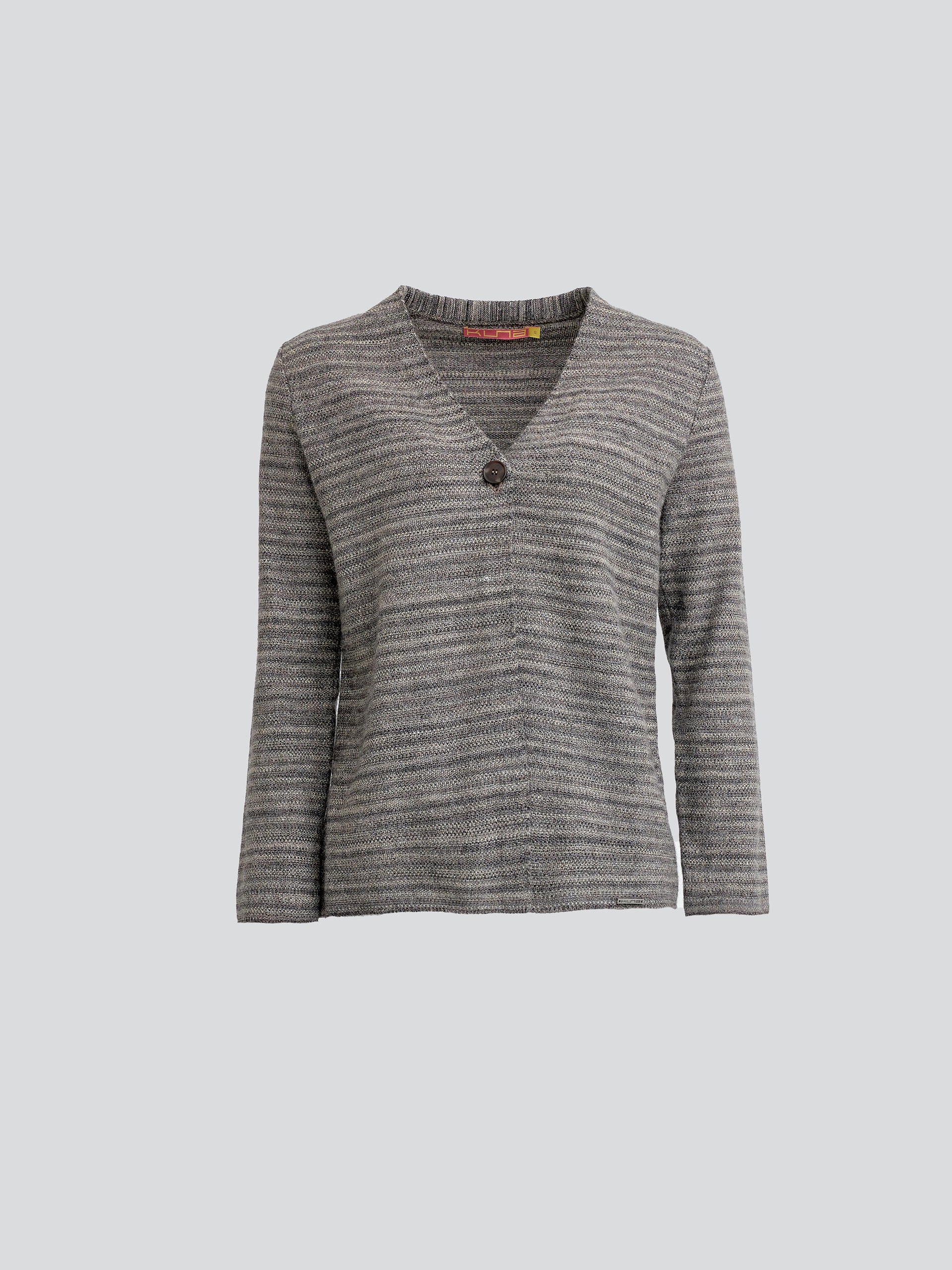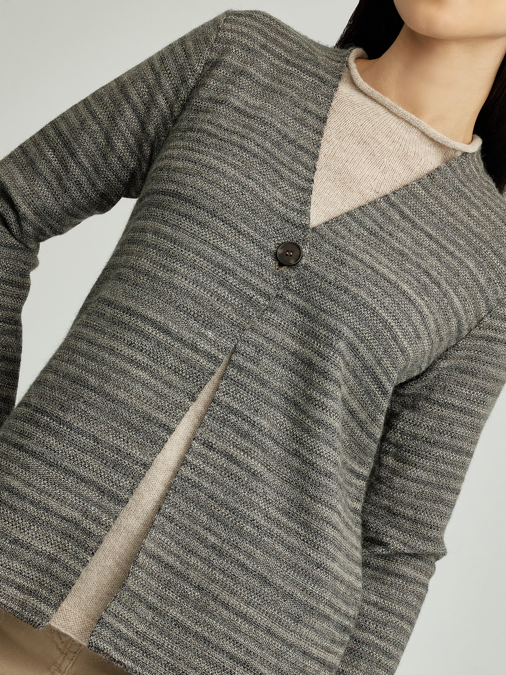 Our Yudith cardigan, with a striped design, is a must-have item for your wardrobe this winter. You can combine it easily according to the occasion. Find this unique design in two beautiful shades. It is made entirely from fine baby alpaca fiber. | Material predominante: Baby Alpaca