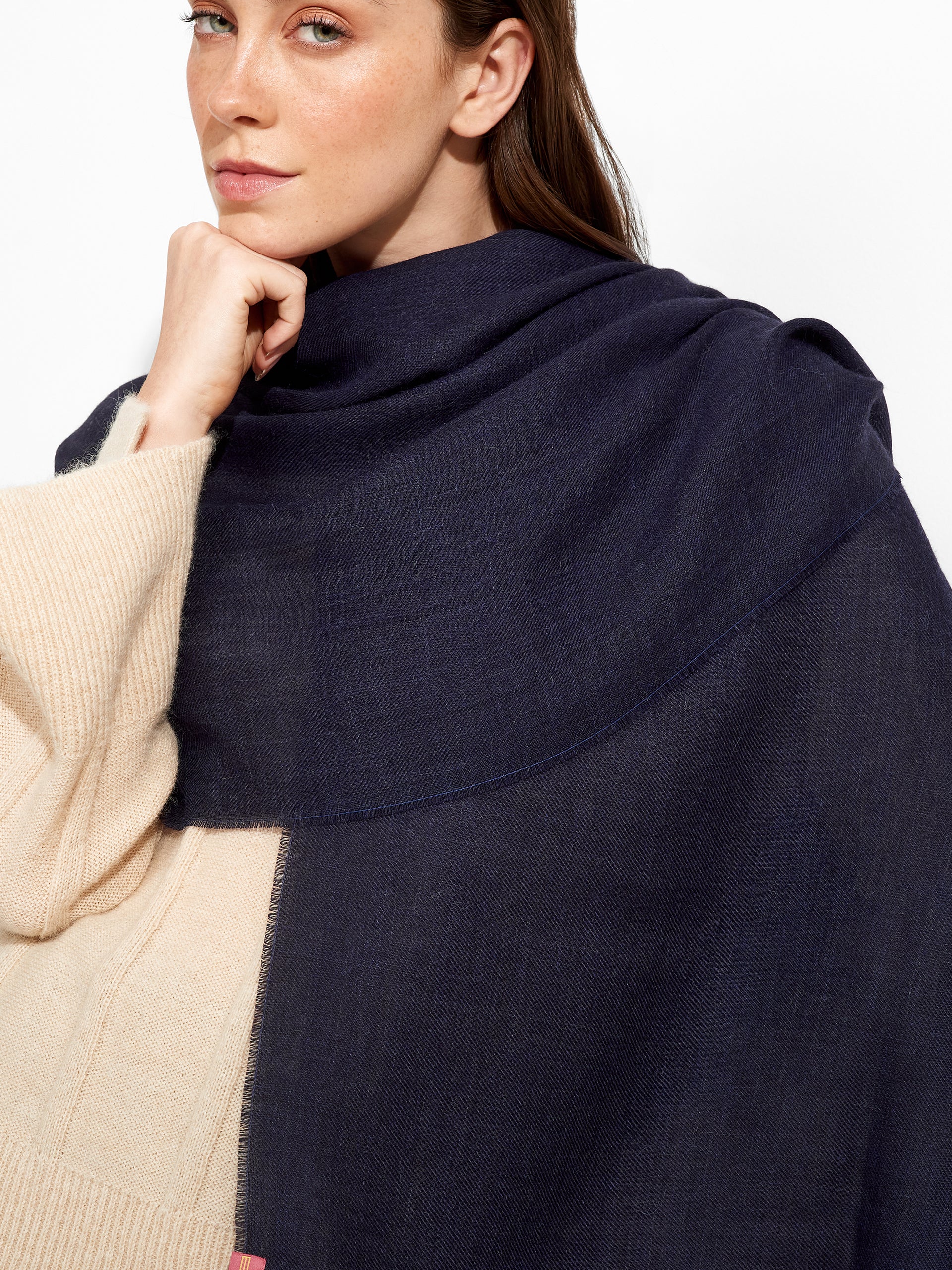 Amareto Stole in purple tone, in a solid color, featuring fine fringed edges. Crafted from baby alpaca, it offers softness and warmth. | Predominant material: Baby Alpaca