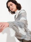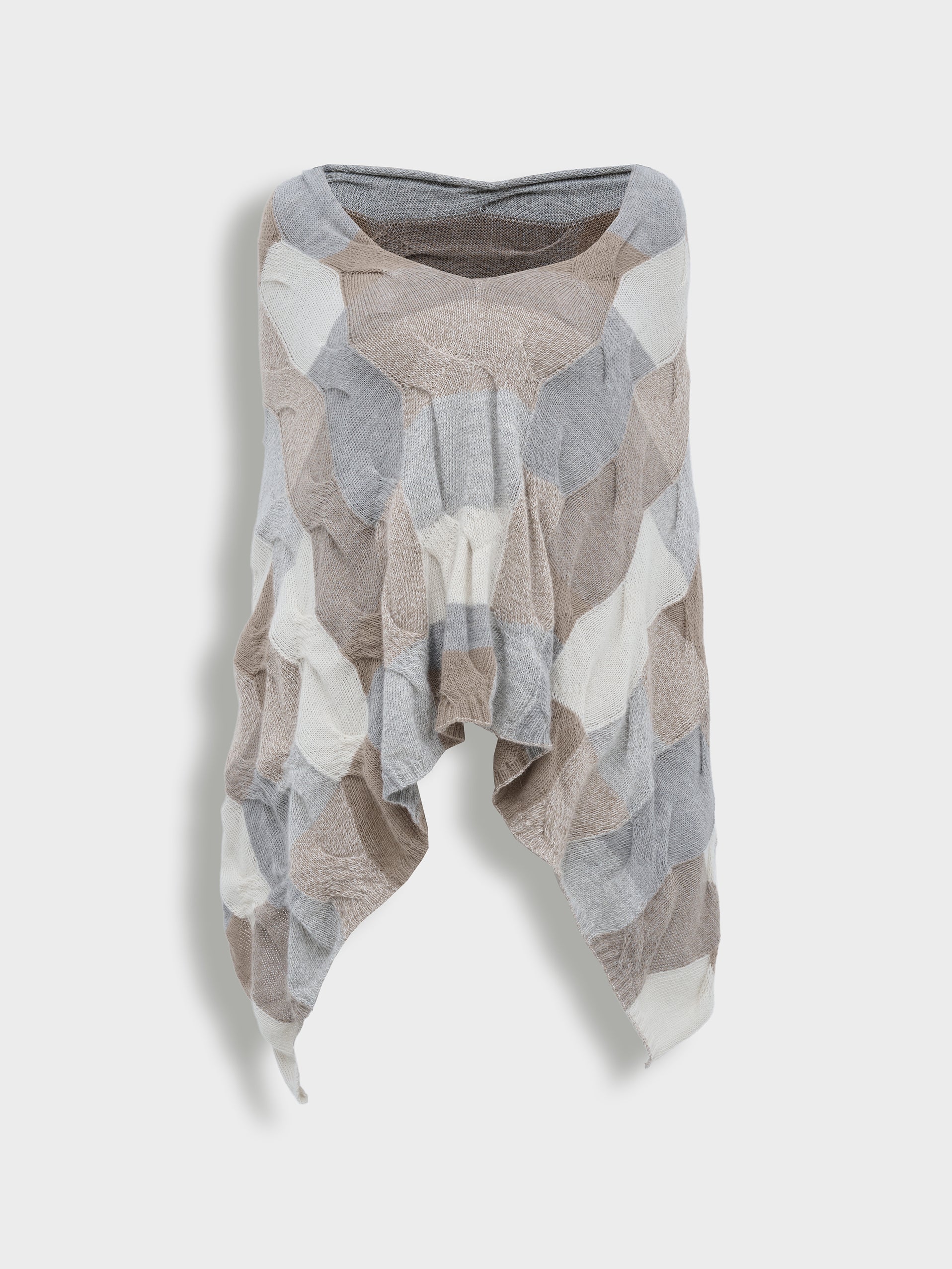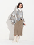 Multicolored Borsalino poncho with a stand-up collar and intarsia knit design. Made from 100% RAS baby alpaca, it features a patchwork of braids that add texture, contrast, and a unique style. | Predominant material: Baby Alpaca
