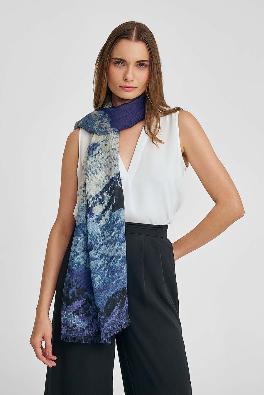 El tejido baby alpaca y seda es ligero y suave, por eso nos resulta perfecto para nuestras estolas. Watcher tiene un estampado multicolor para que puedas combinarlo con todo tu guardarropa. | Material predominante: Baby Alpaca