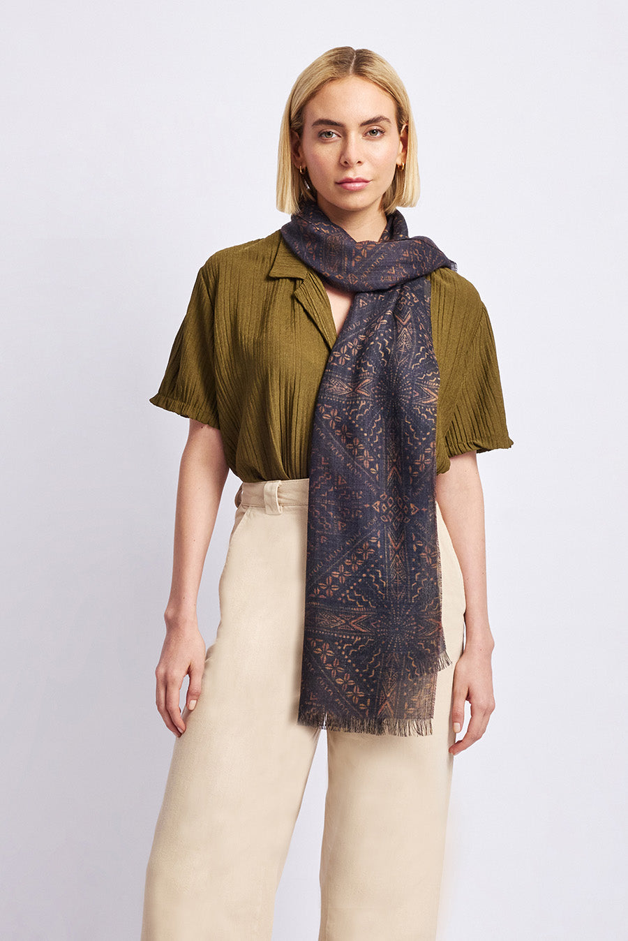 La calidad de nuestros materiales exalta el estilo de esta especial estola con un toque refinado. Dejate envolvolver en las nobles fibras naturales de baby alpaca y seda de la estola Webster. Un sofisticado accesorio que realza el encanto femenino. | Material predominante: Baby Alpaca