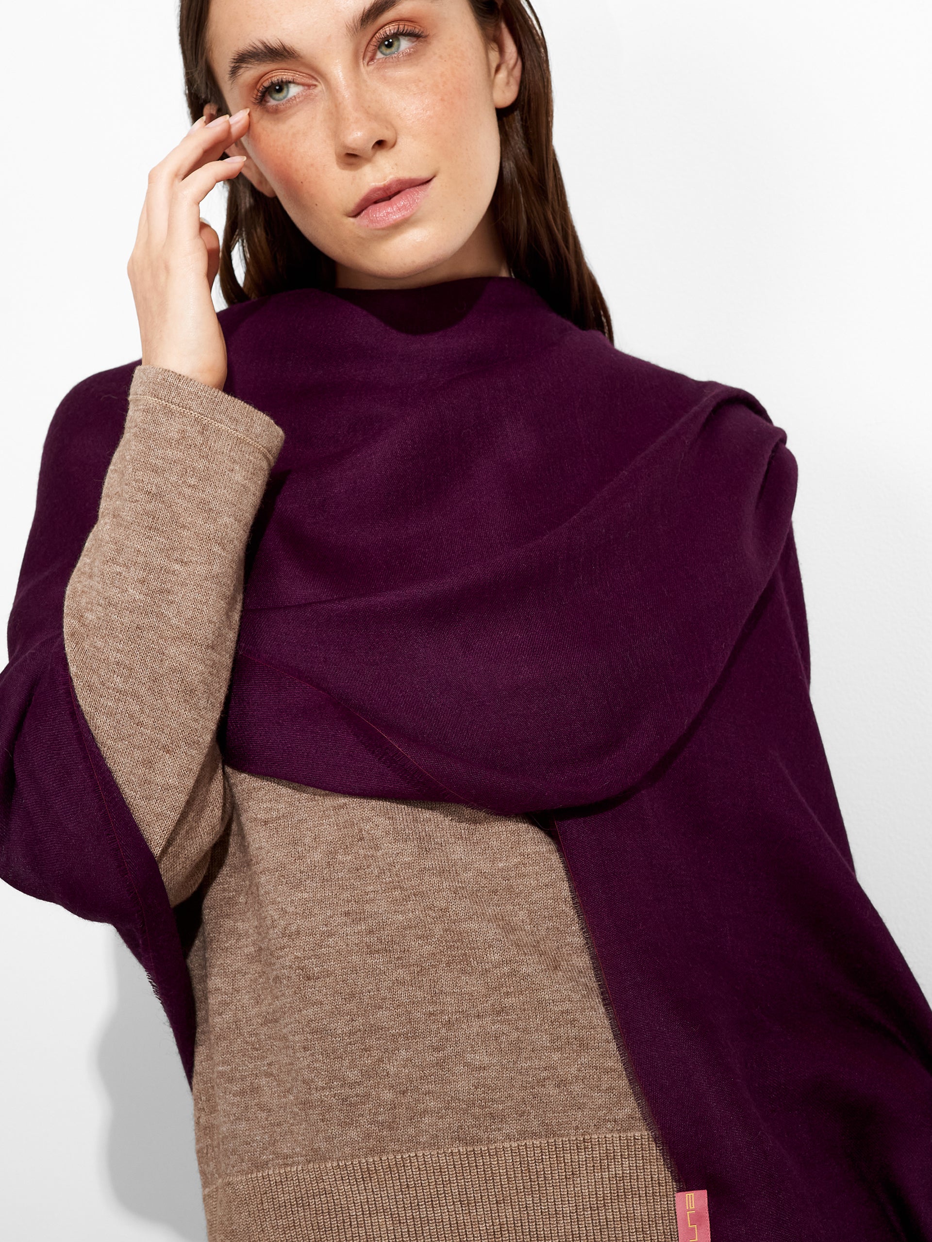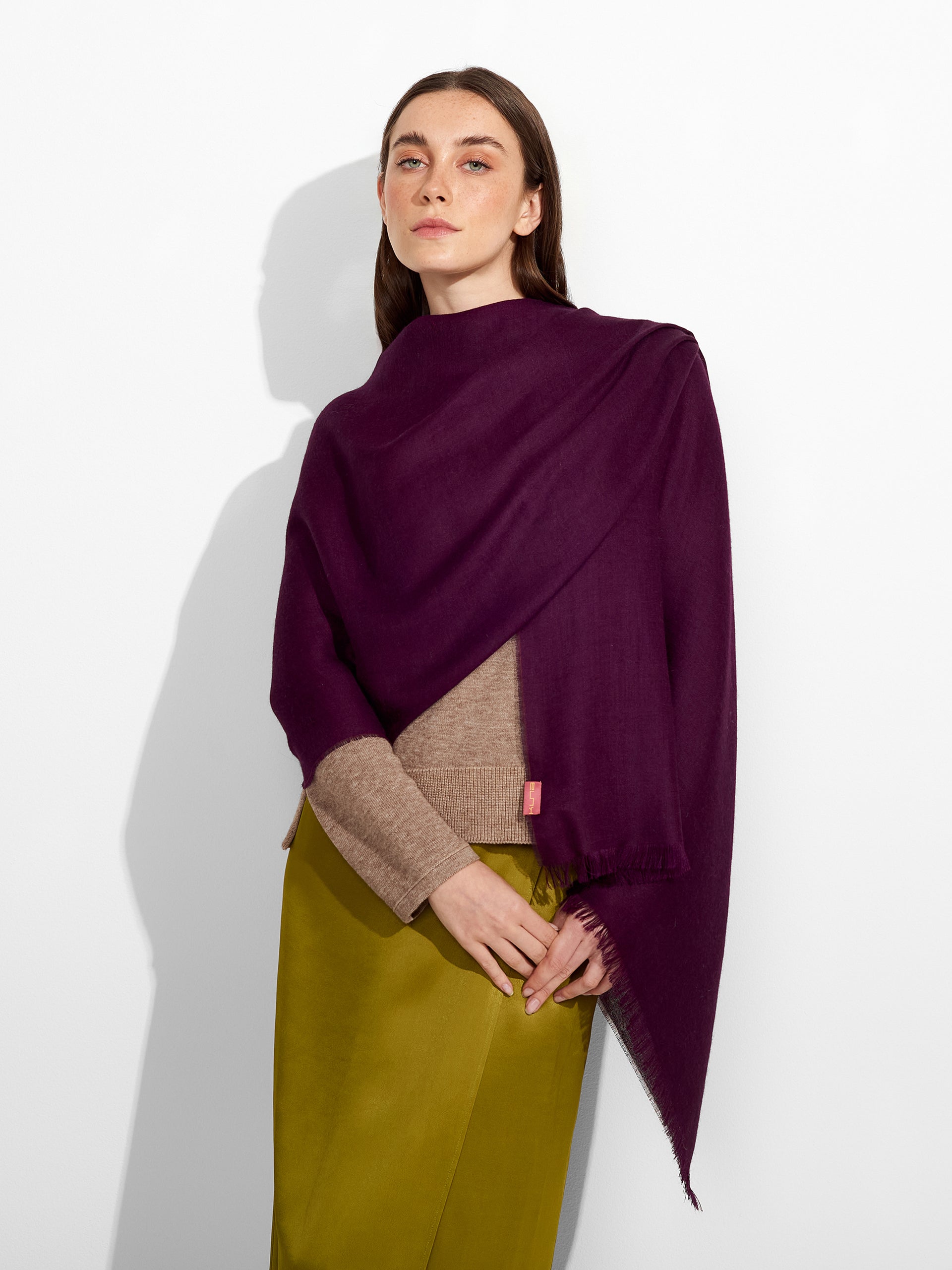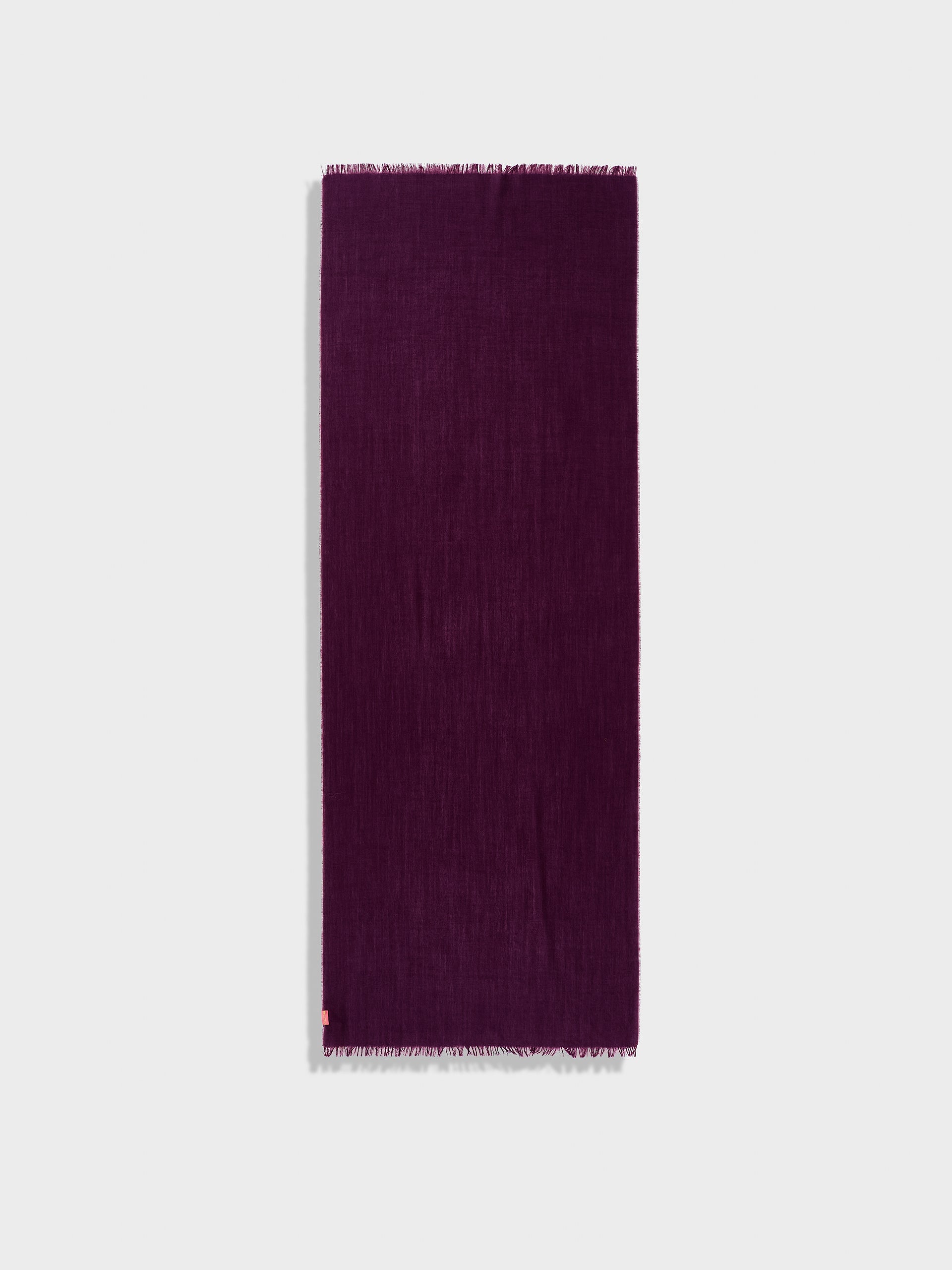 Teaberry Stole in purple tone, featuring a solid color and fine fringed edges that provide a delicate finish. Crafted from baby alpaca and silk. | Predominant material: Baby Alpaca