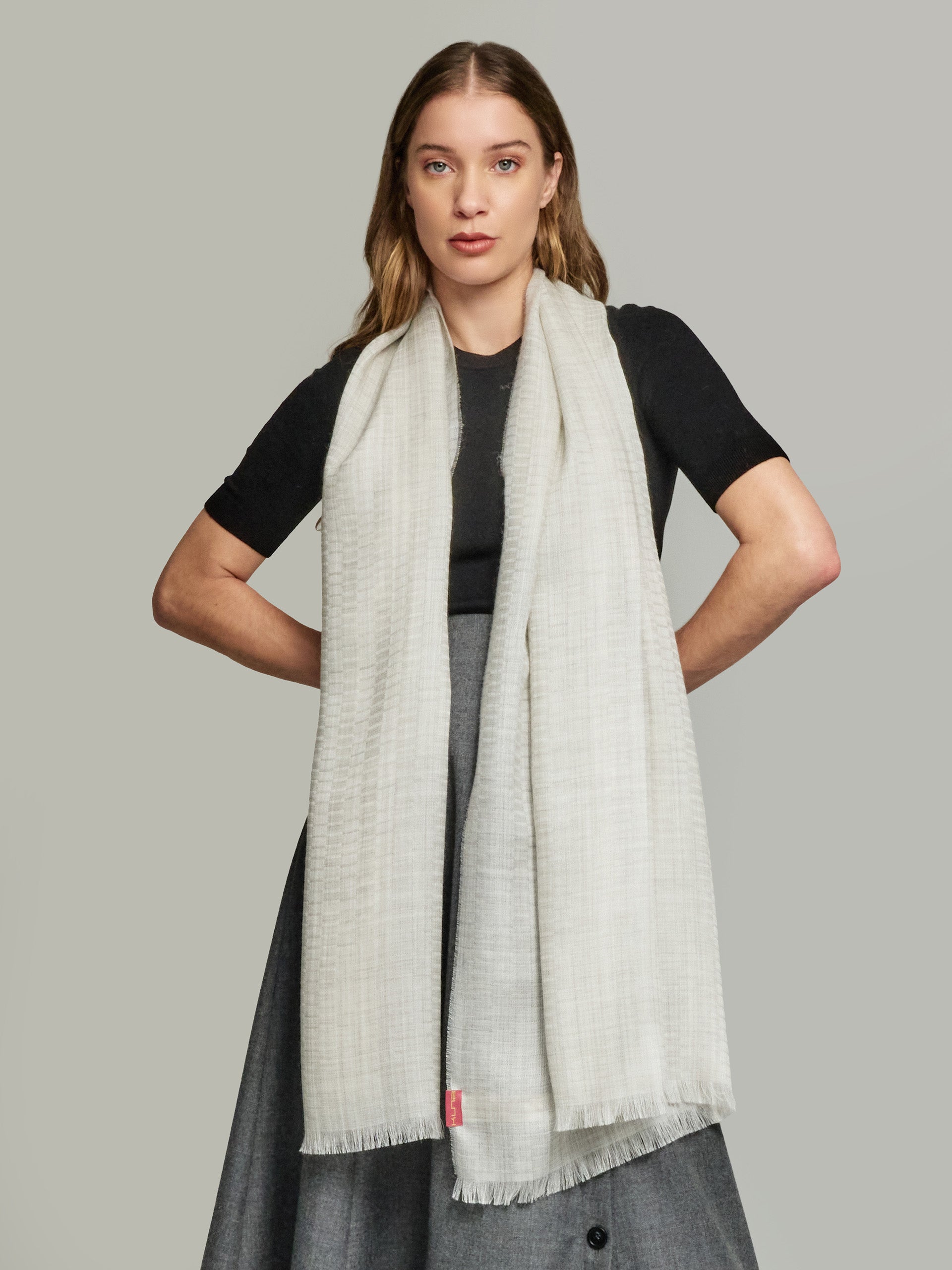 The light tones of this accessory make this stole a versatile option that can enhance different outfits and everyday styles. Feel the freshness of our beautiful Vermondi stole made of baby alpaca and eco silk. Available in two colors. | Material predominante: Baby Alpaca