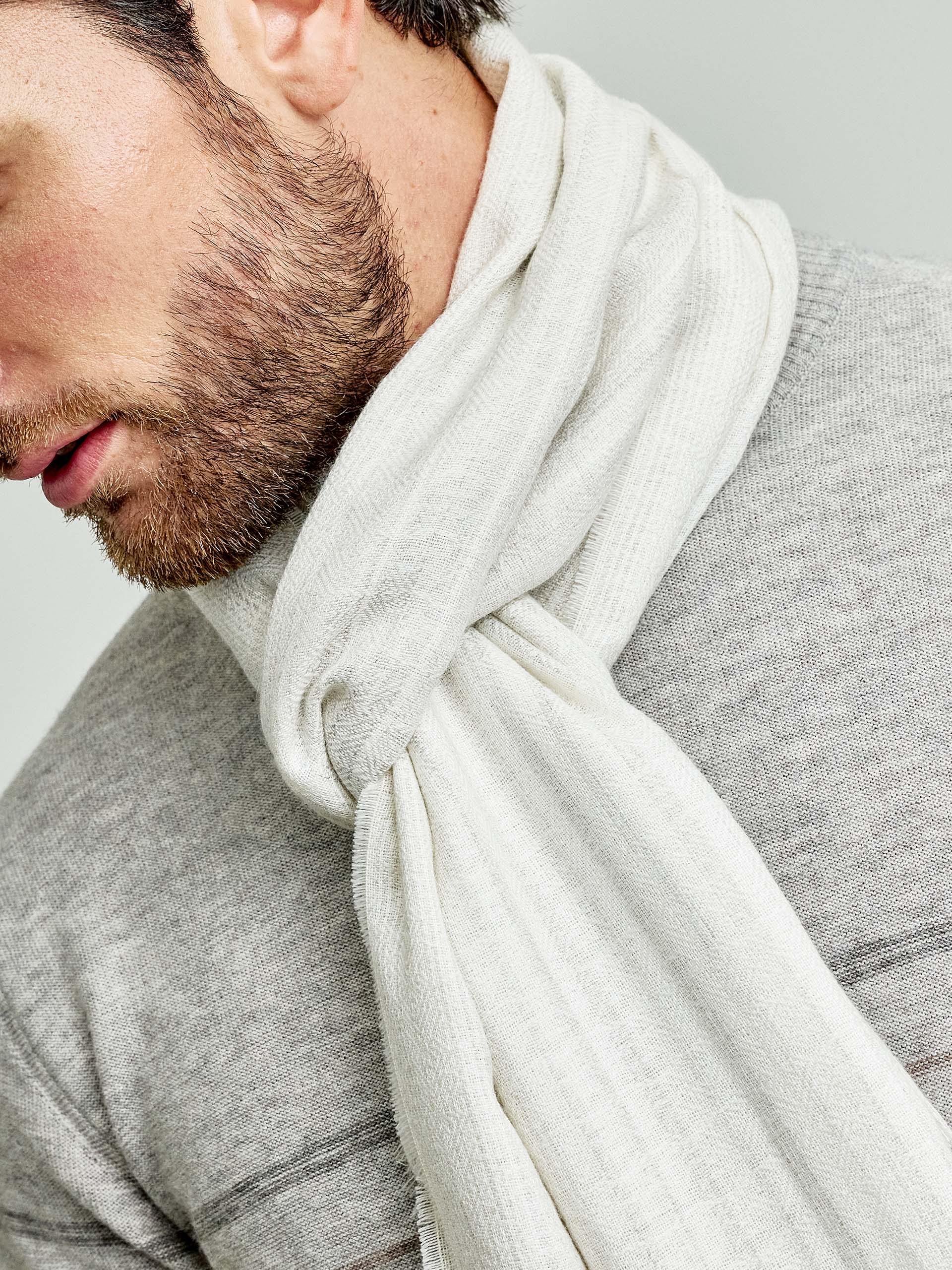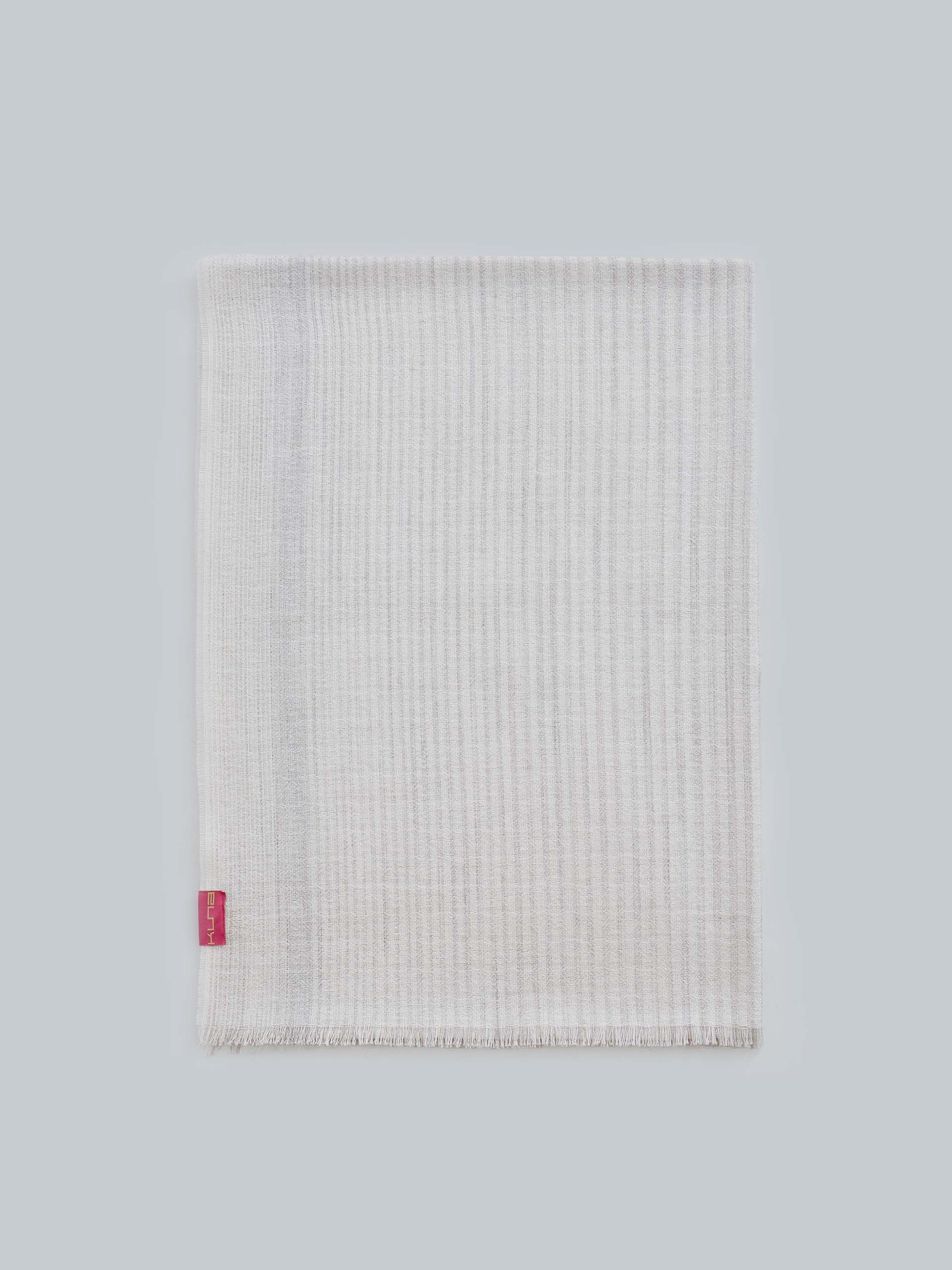 Shawl made of baby alpaca, silk and organic cotton. This beautiful accessory has a striped design. The Walden pashmina is a must-have for the summer and spring season. Feel the warmth and softness of this versatile shawl. Ideal for casual outings. | Predominant material: Cotton & Baby Alpaca