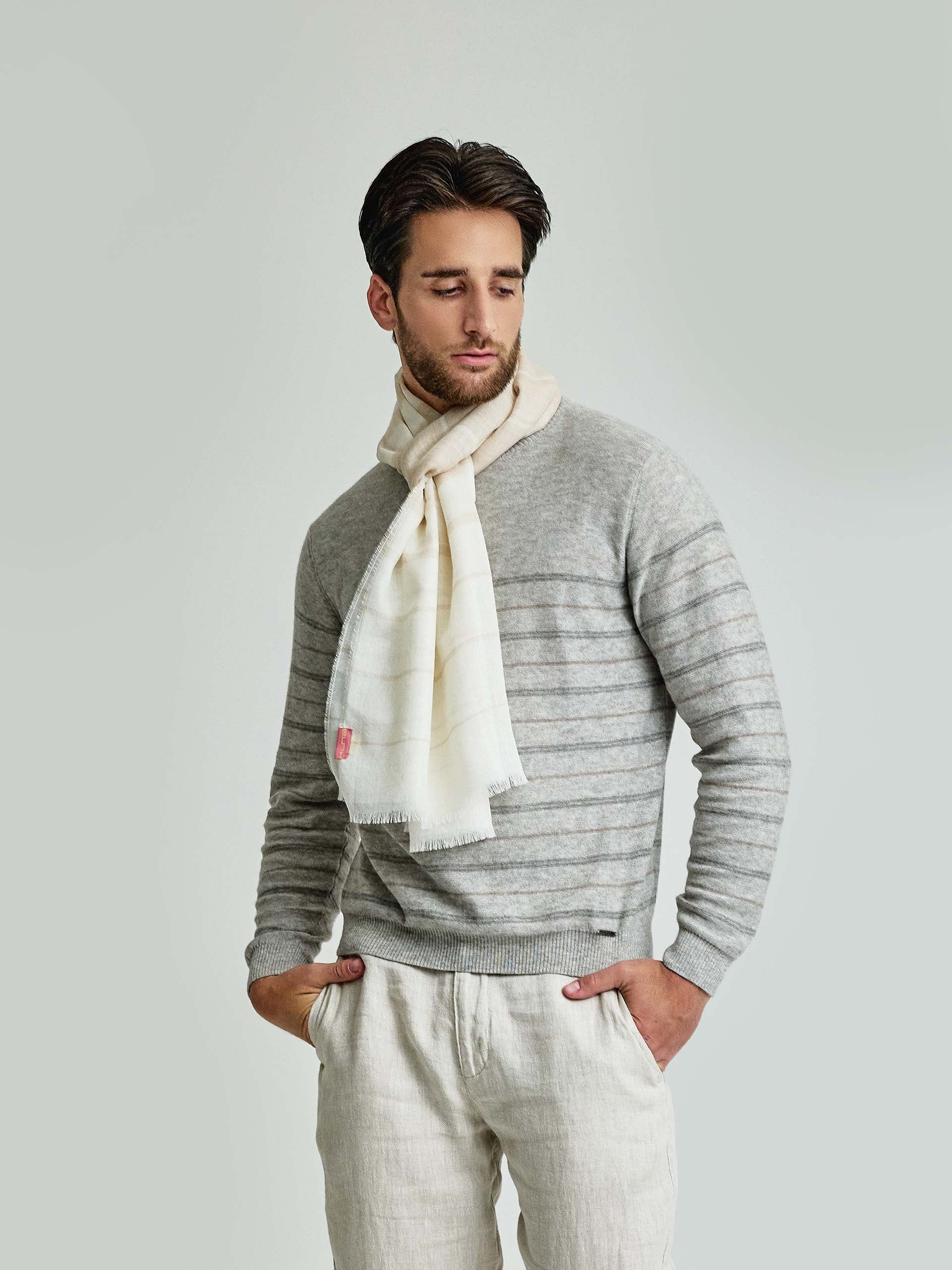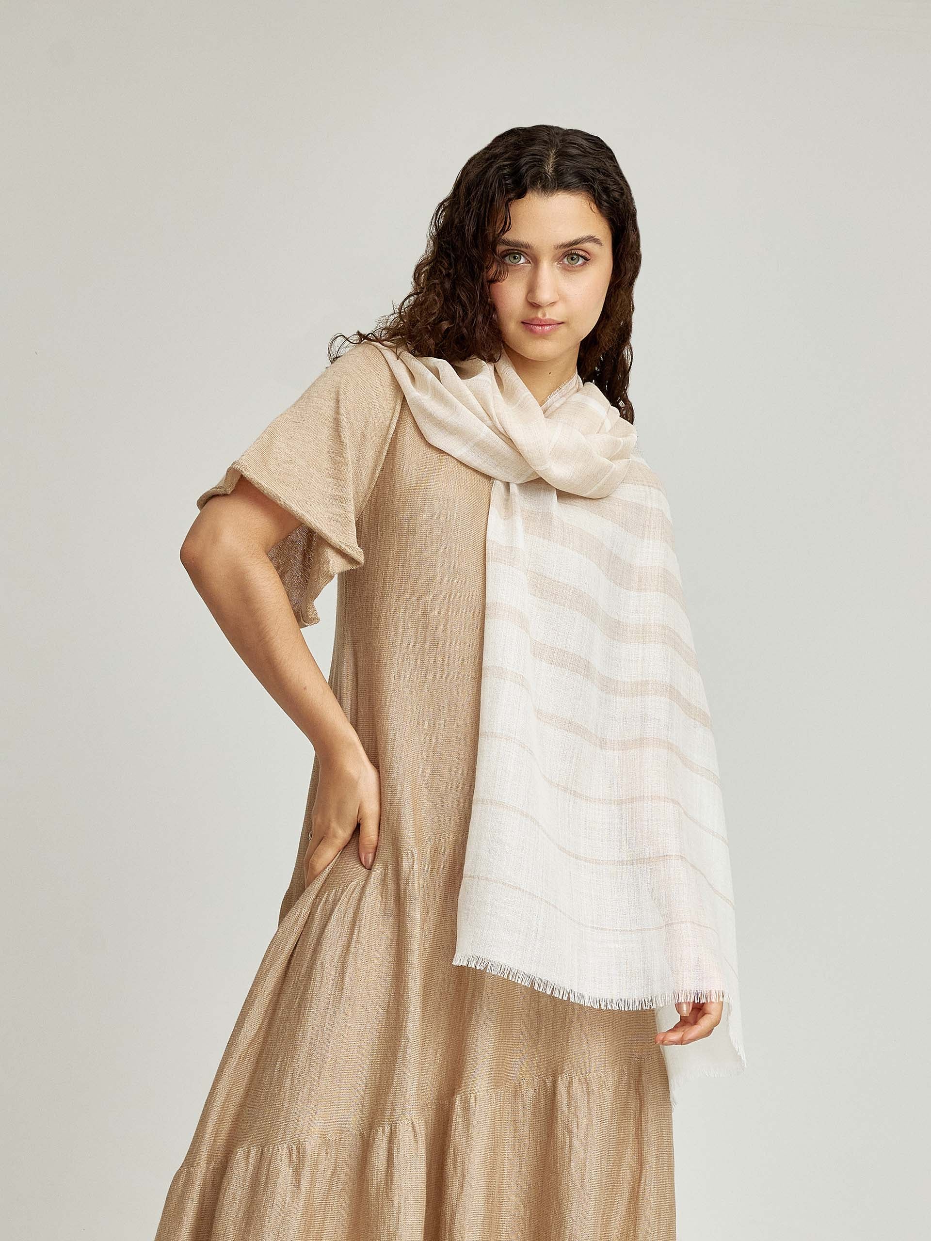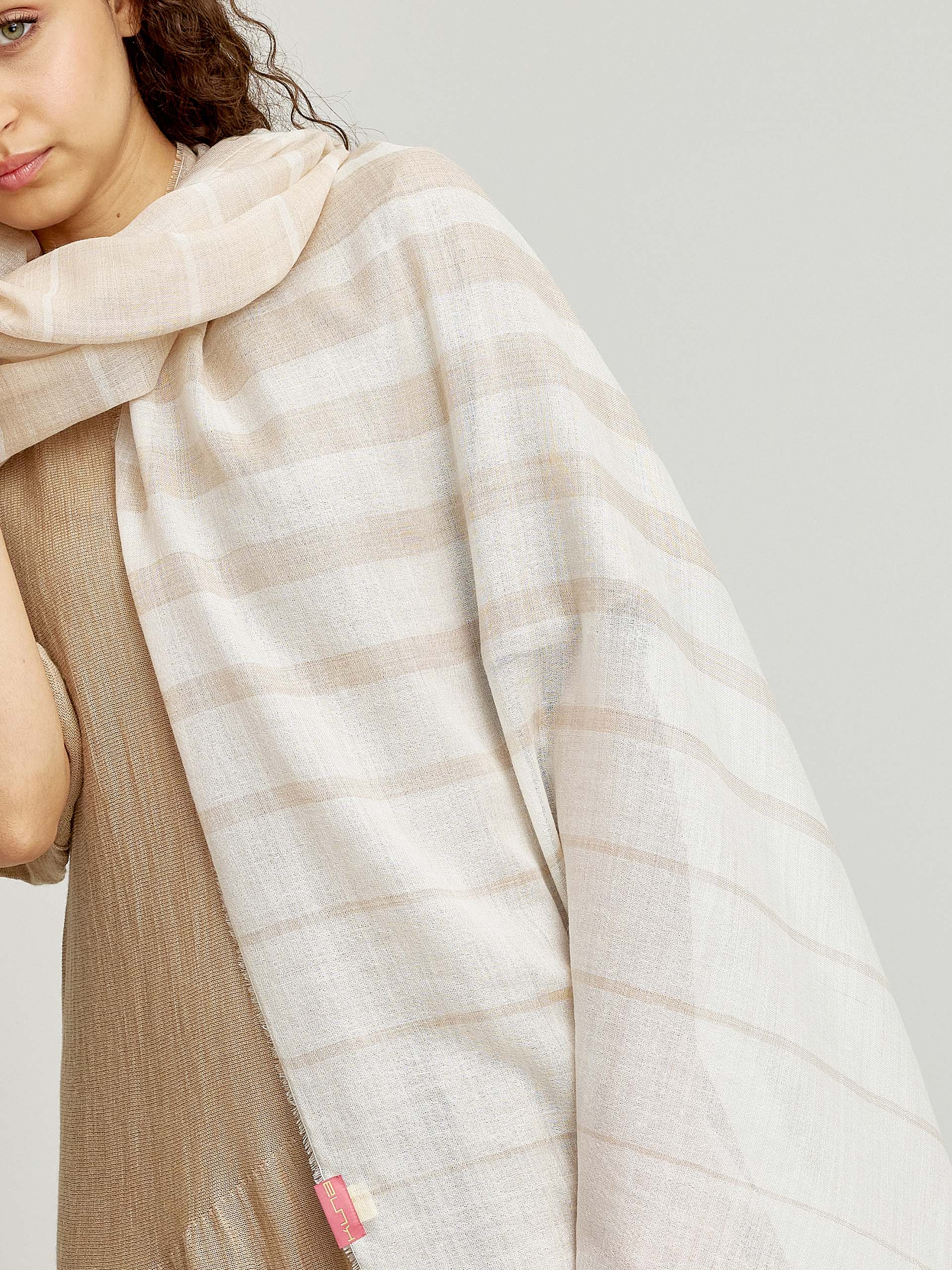 Wallenberg Shawl Baby Alpaca & Silk Ecru&Beige