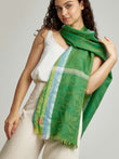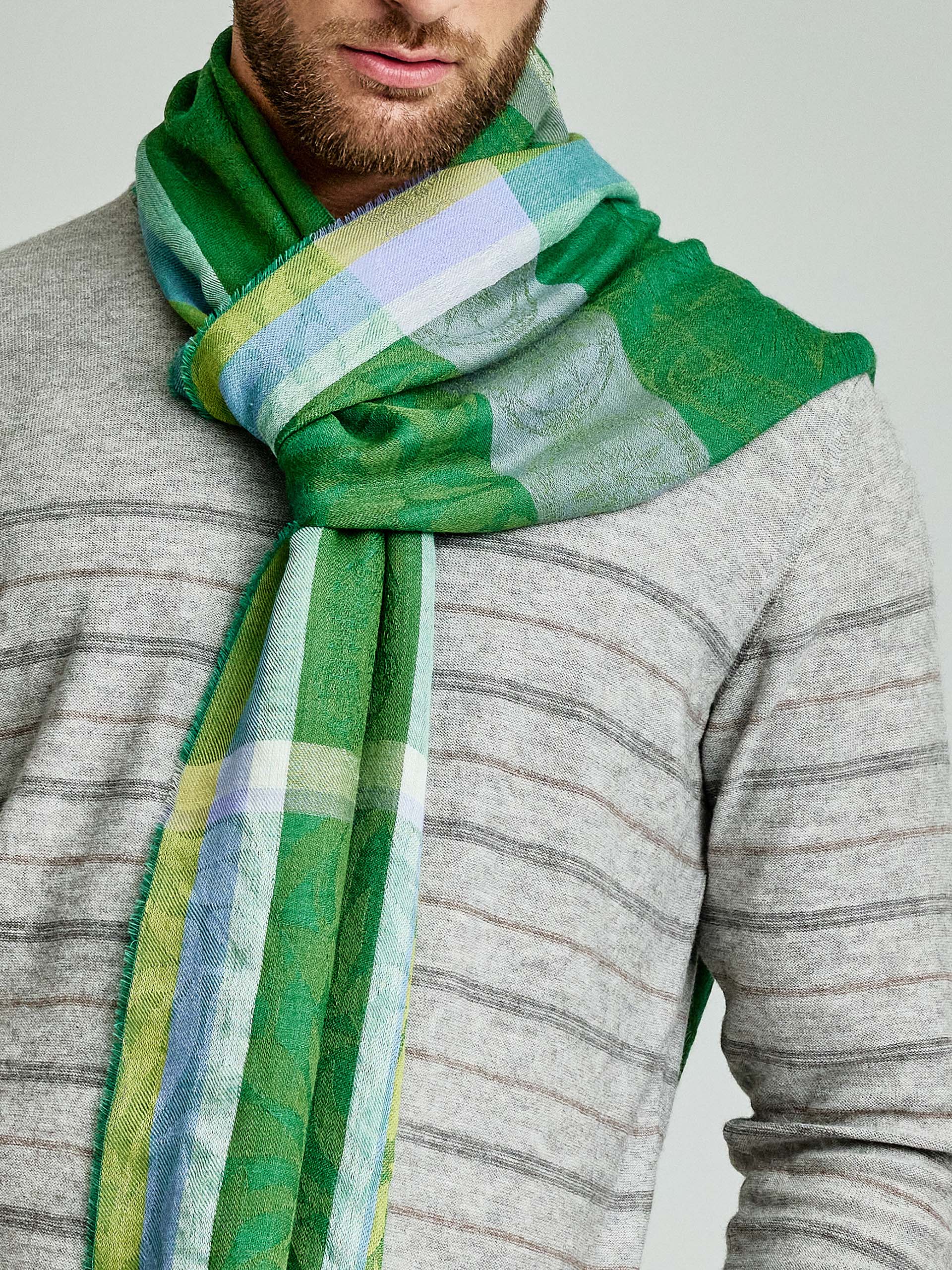 Let yourself be wrapped by a soft and light baby alpaca and silk fabric. This colorful accessory will be the color accent that will enhance your looks every time you wear it. Our Warvick shawl with leaf design is available in three colors. Perfect and ideal for any occasion. | Predominant material: Baby Alpaca & Silk