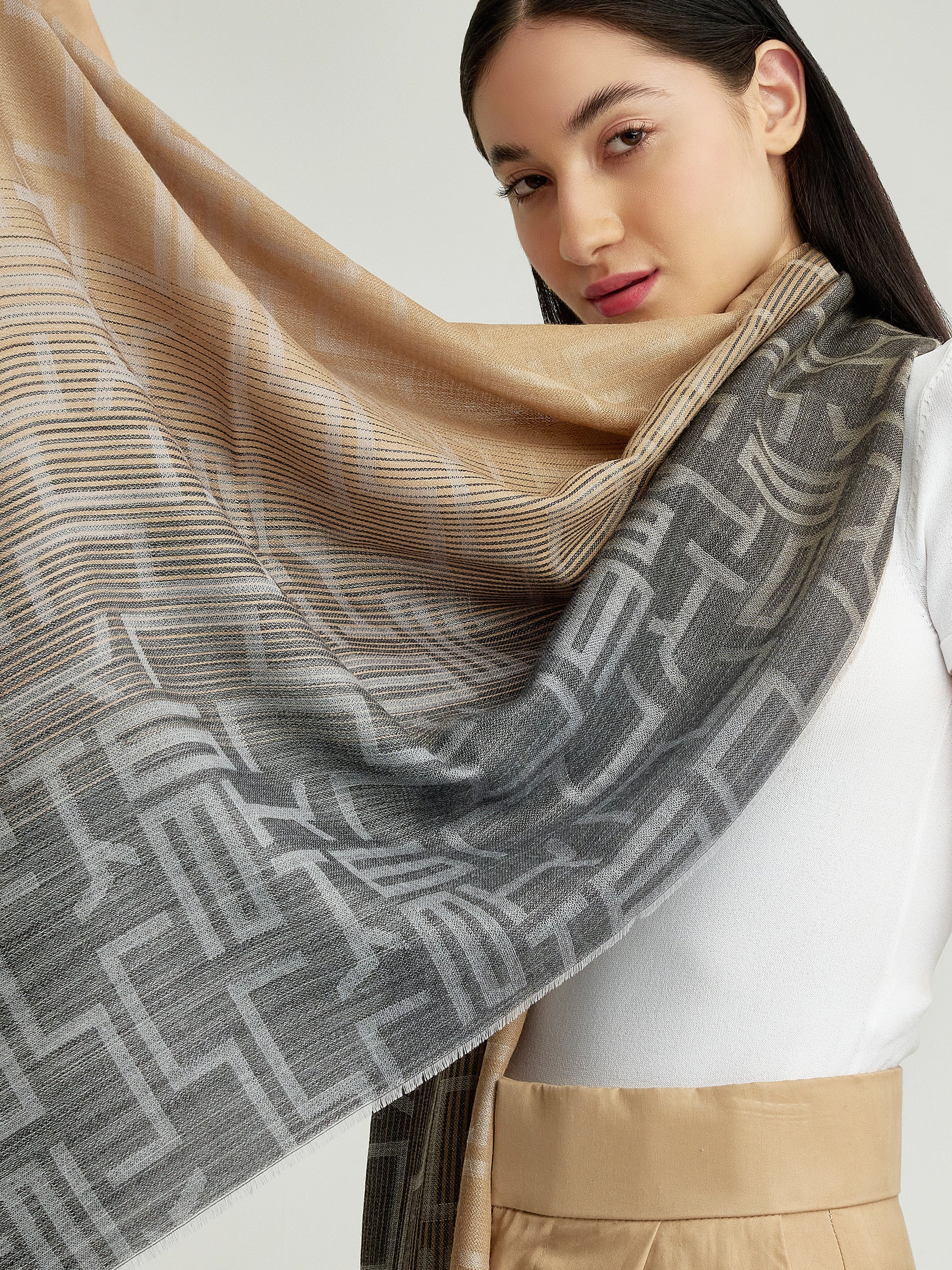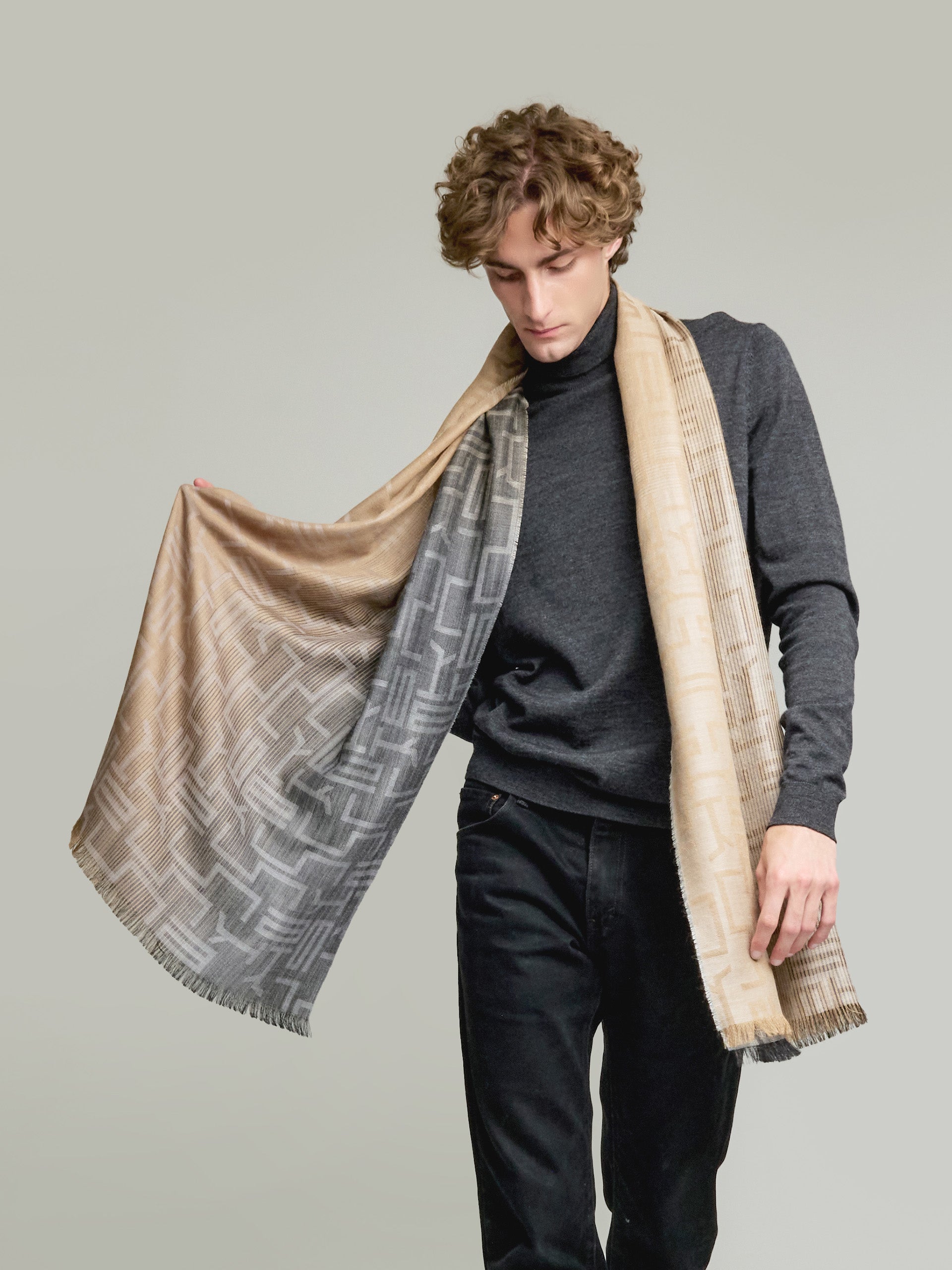 Discover the unequaled Wasser pashmina. Its attractive and unique design stands out for its elegance and comfort. Made with the softness of baby alpaca and the delicateness of silk, this item becomes an exceptional accessory that enhances your style with distinction. | Material predominante: Baby Alpaca