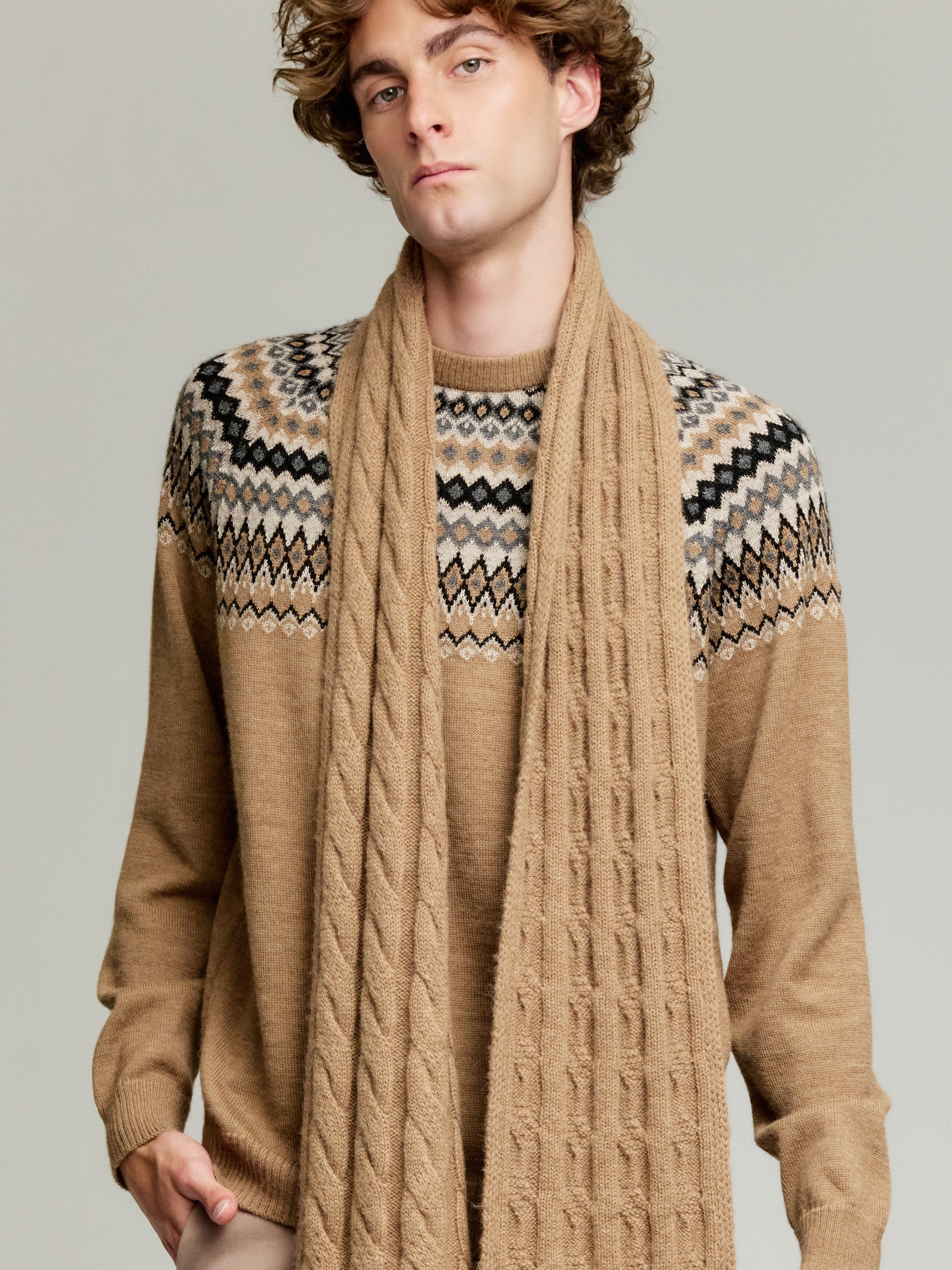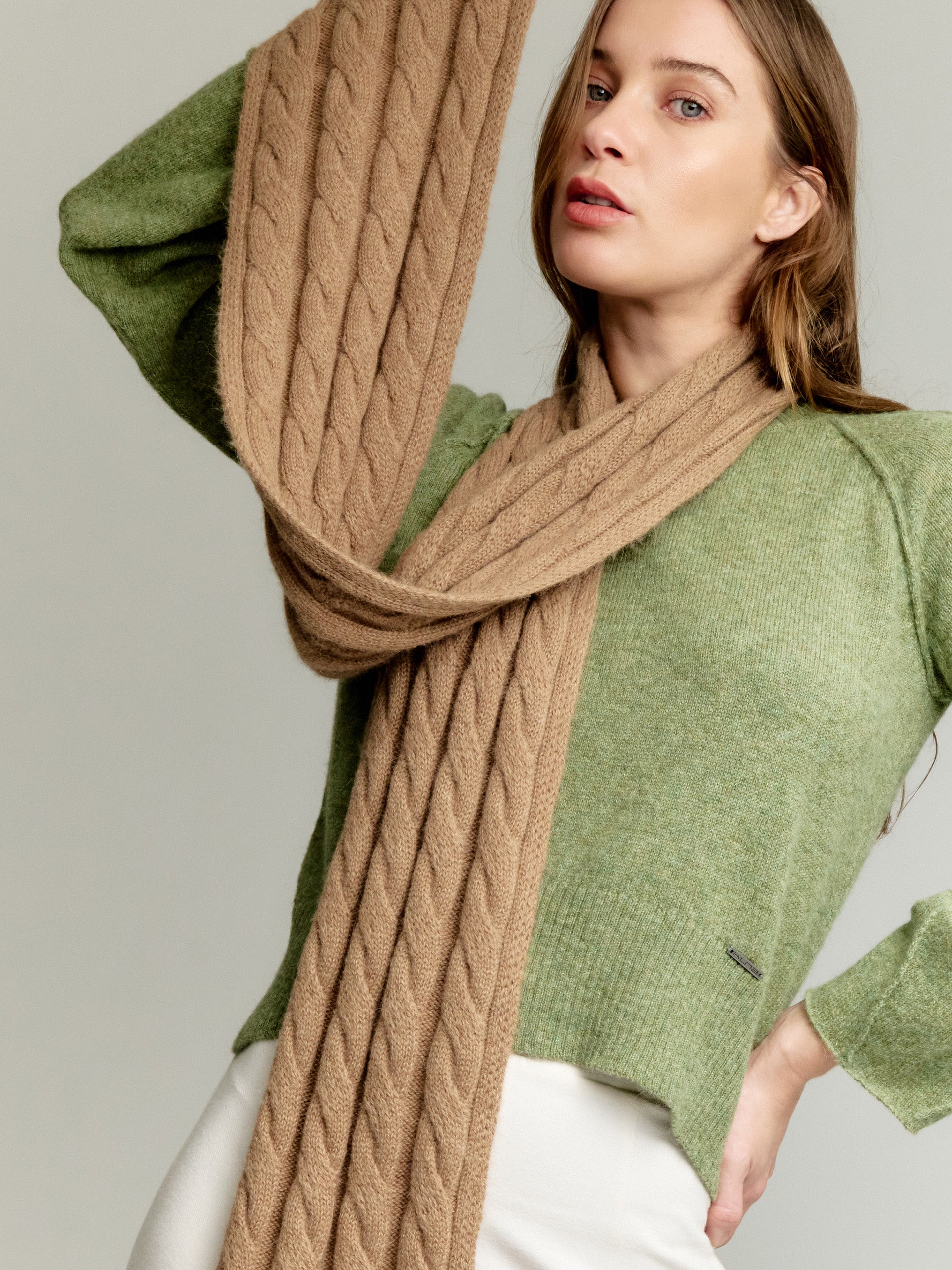 Immerse yourself in the luxurious softness of the Yarela scarf, woven with exquisite baby alpaca to offer you unmatched warmth on cold days. Its charming design, available in several tones, merges fashion and comfort, allowing you to brave the weather with elegance and style. | Predominant material: Baby Alpaca