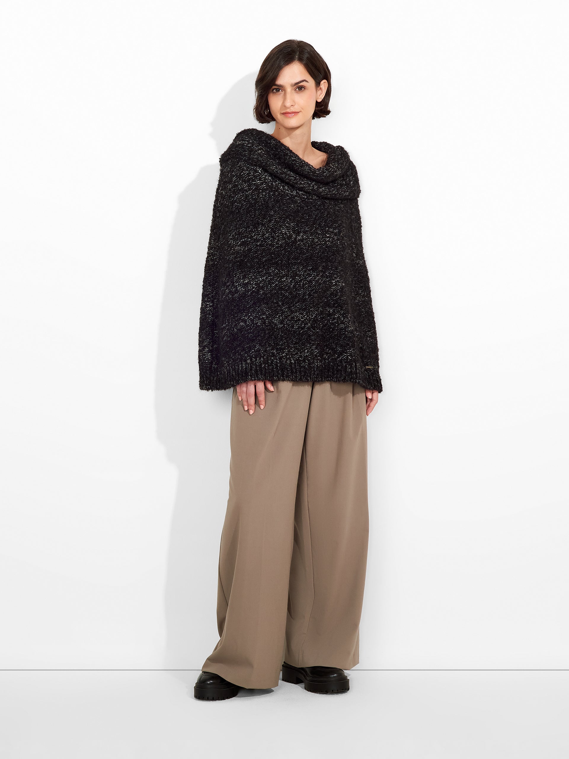 Zaira Poncho in black tone, with a loose silhouette and open design that adapts to the body. It features a light finish and soft texture. Crafted from a blend of suri alpaca, baby alpaca, and wool, it offers warmth and comfort. | Predominant material: Suri Alpaca