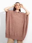 Zoila Poncho in pink tone, featuring a wide ribbed collar that complements its loose silhouette and open cut in a solid color. Crafted from baby alpaca, it offers warmth and softness. | Predominant material: Baby Alpaca
