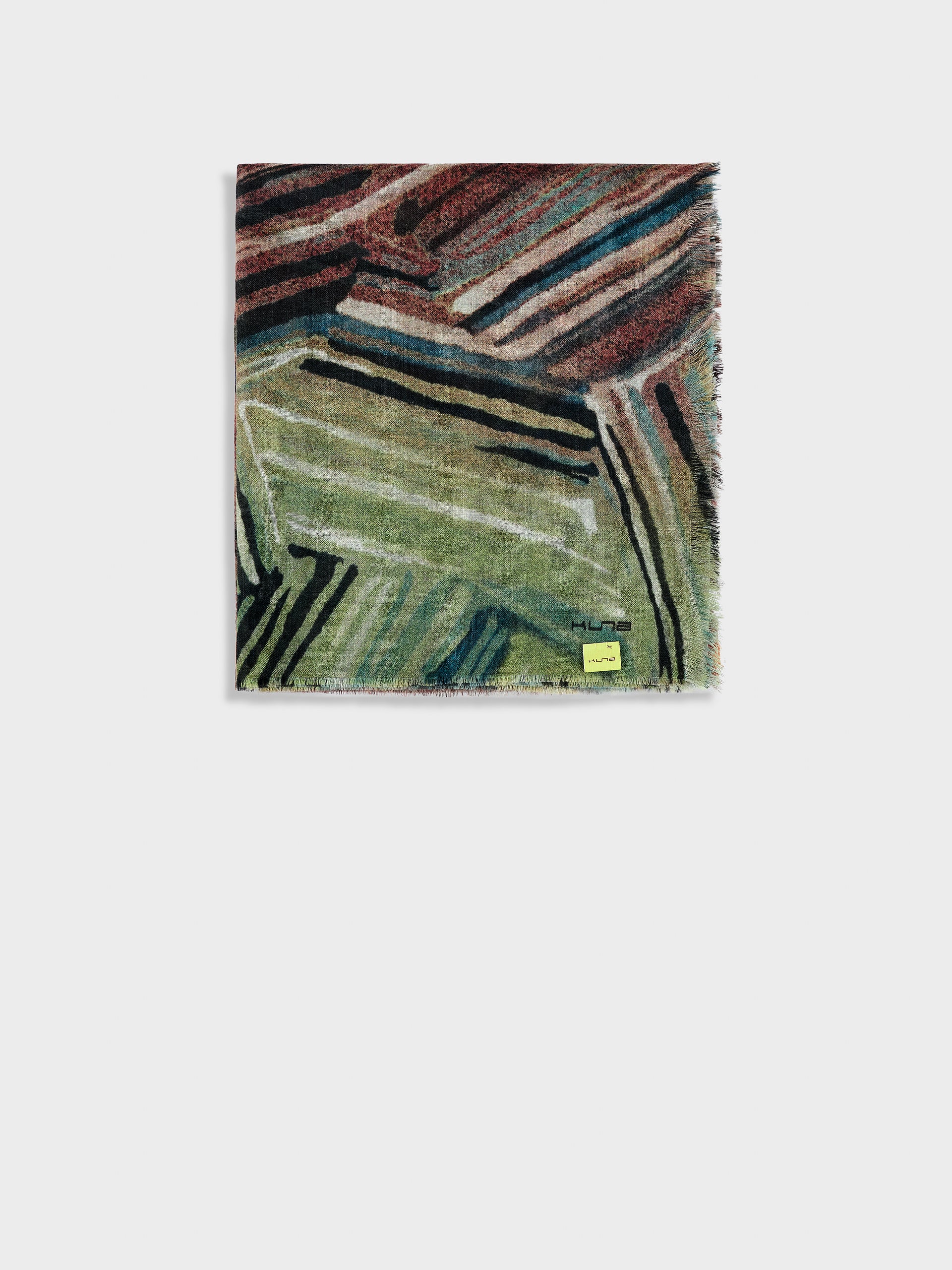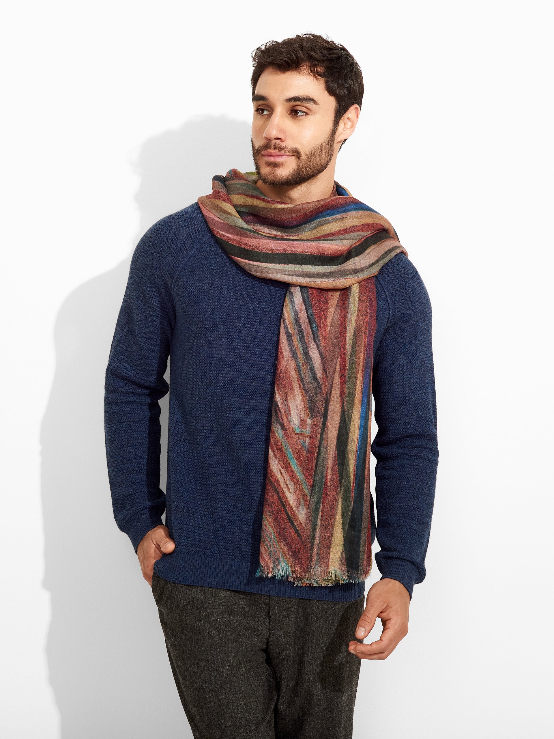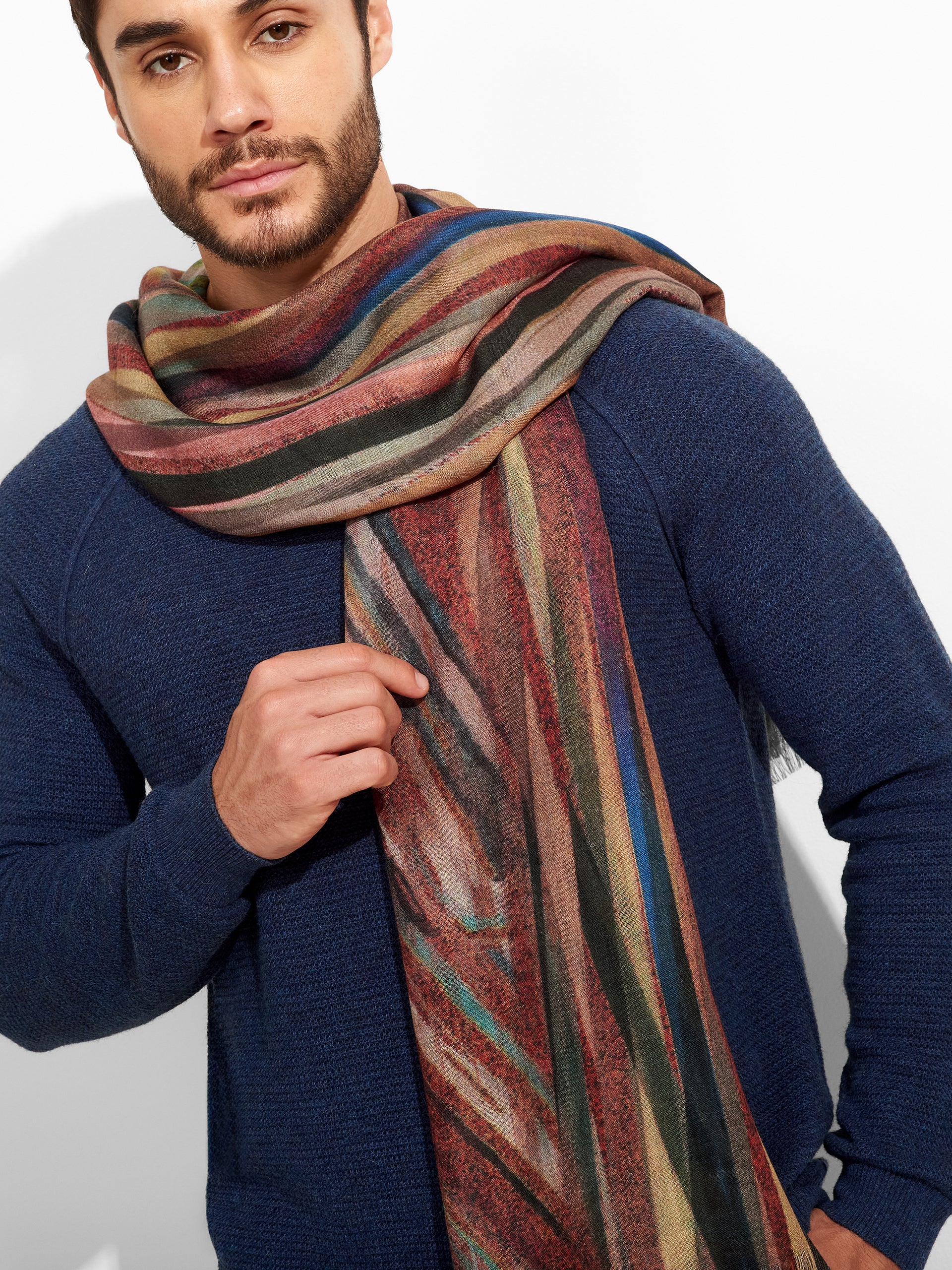 Ztamp 4 Stole in multicolor tone, featuring exceptional lightness and a wavy stripe design, with fine fringed edges. Crafted from a blend of baby alpaca and silk, it is light and soft. | Predominant material: Baby Alpaca