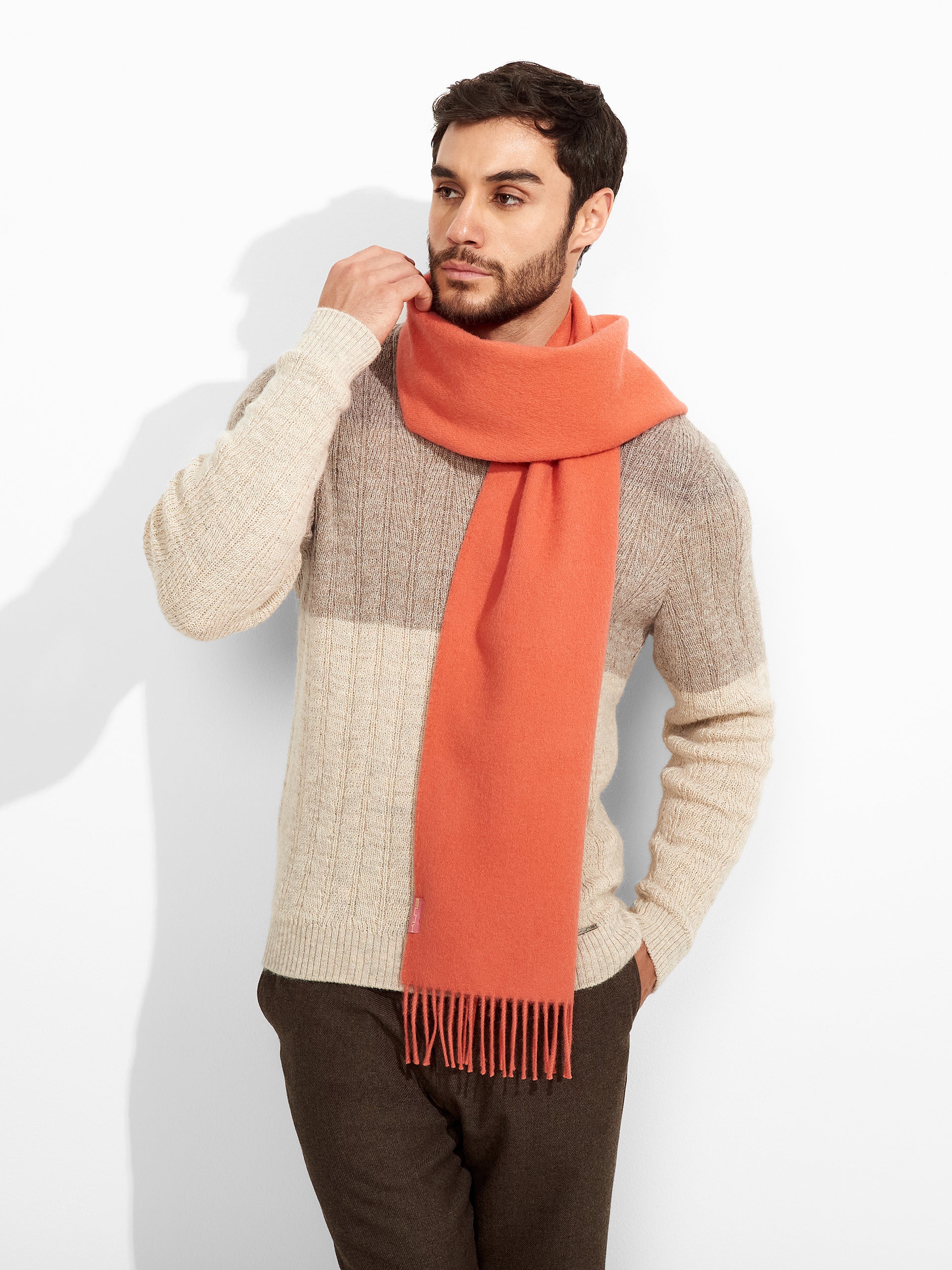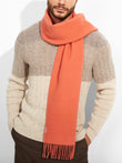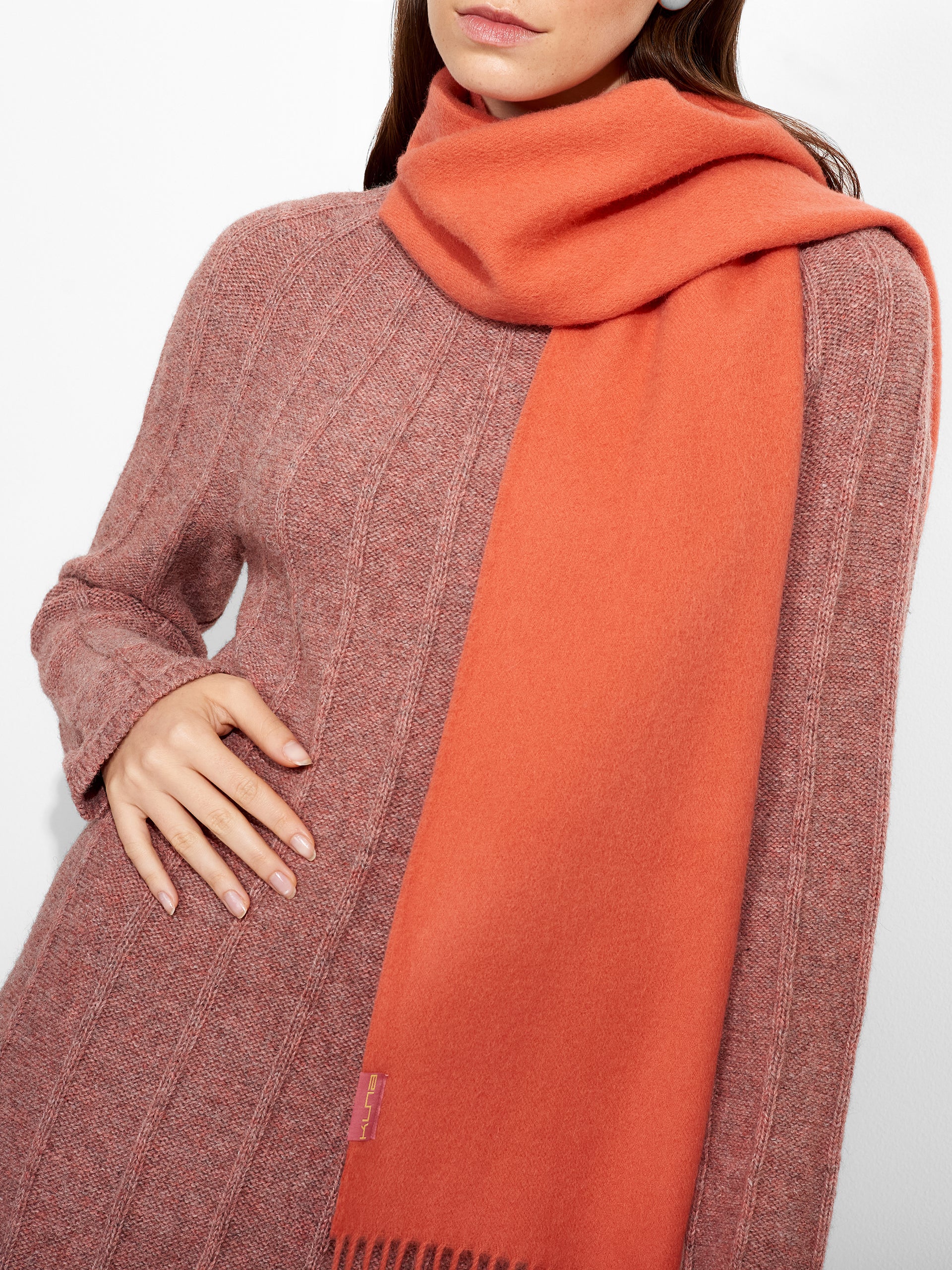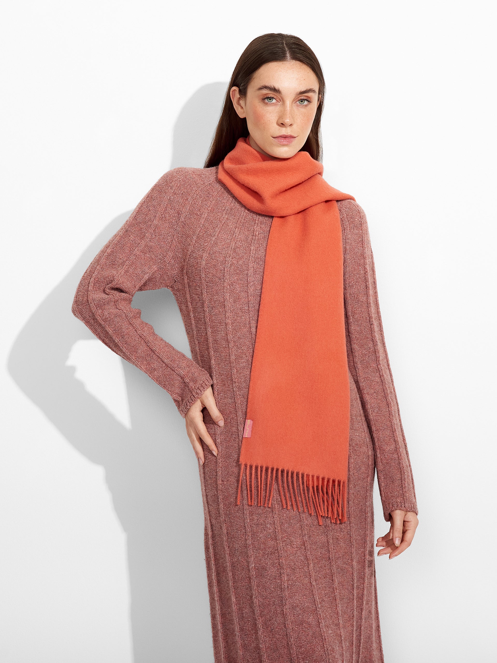 Adrian Scarf in orange tone, designed in solid color with thick fringed edges. Crafted from baby alpaca, it offers warmth and exceptional softness. | Predominant material: Baby Alpaca