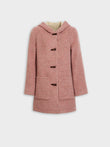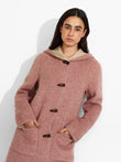 Alaia Coat in pink tone, featuring a wrap silhouette with a hood, polyester horn-type buttons, and front patch pockets. Its reversible design makes it versatile. Crafted from a blend of baby alpaca and wool. | Predominant material: Baby Alpaca