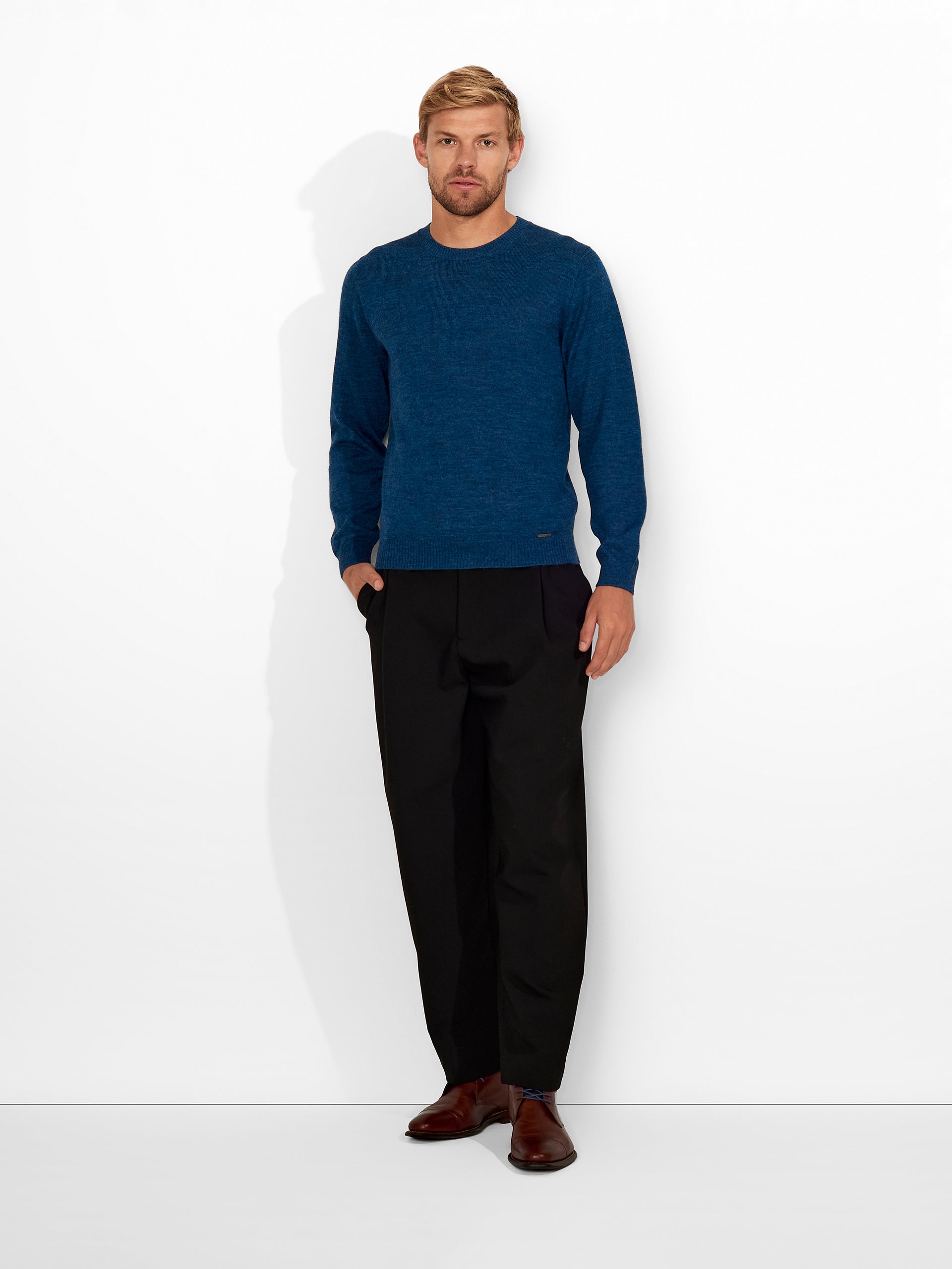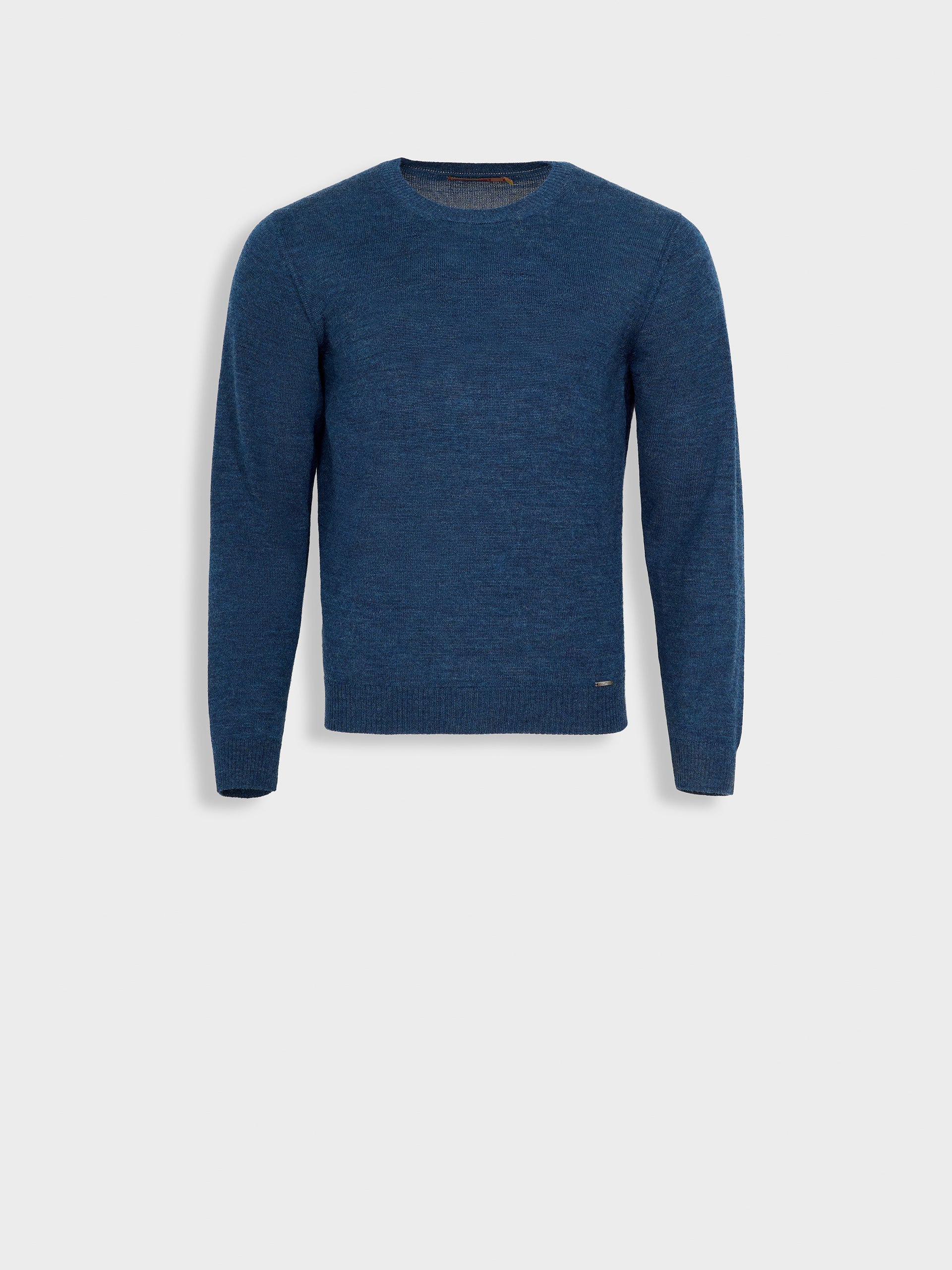 Alaska sweater in blue tone, designed in a solid color with a round neckline. The knit is soft and warm. Expertly crafted from baby alpaca, it offers exceptional warmth and softness. | Predominant material: Baby Alpaca