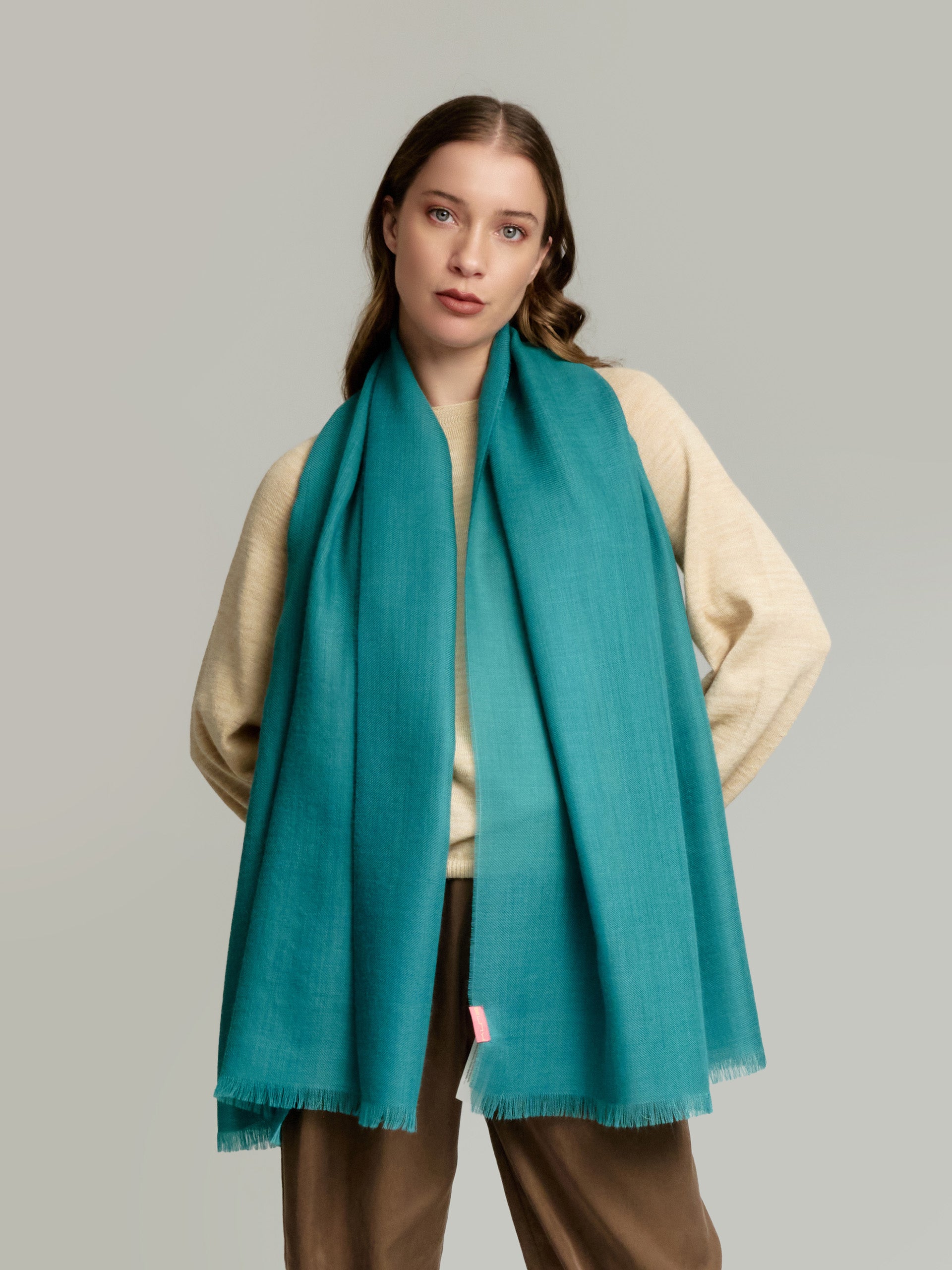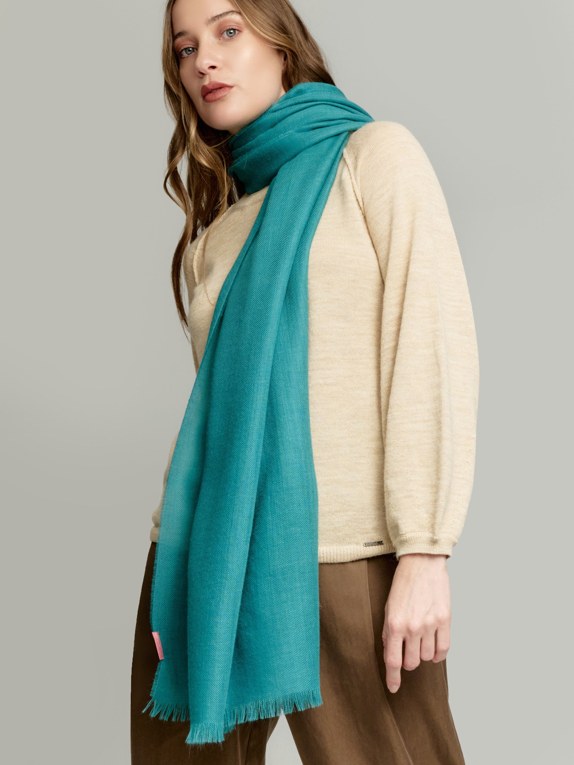 Discover the versatility of our Amareto pashmina, available in a wide range of vibrant solid shades. This perfect accessory for any occasion is made of 100% baby alpaca, bringing not only warmth, but also a touch of style and sophistication to your outfit. | Material predominante: Baby Alpaca