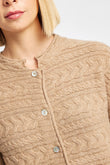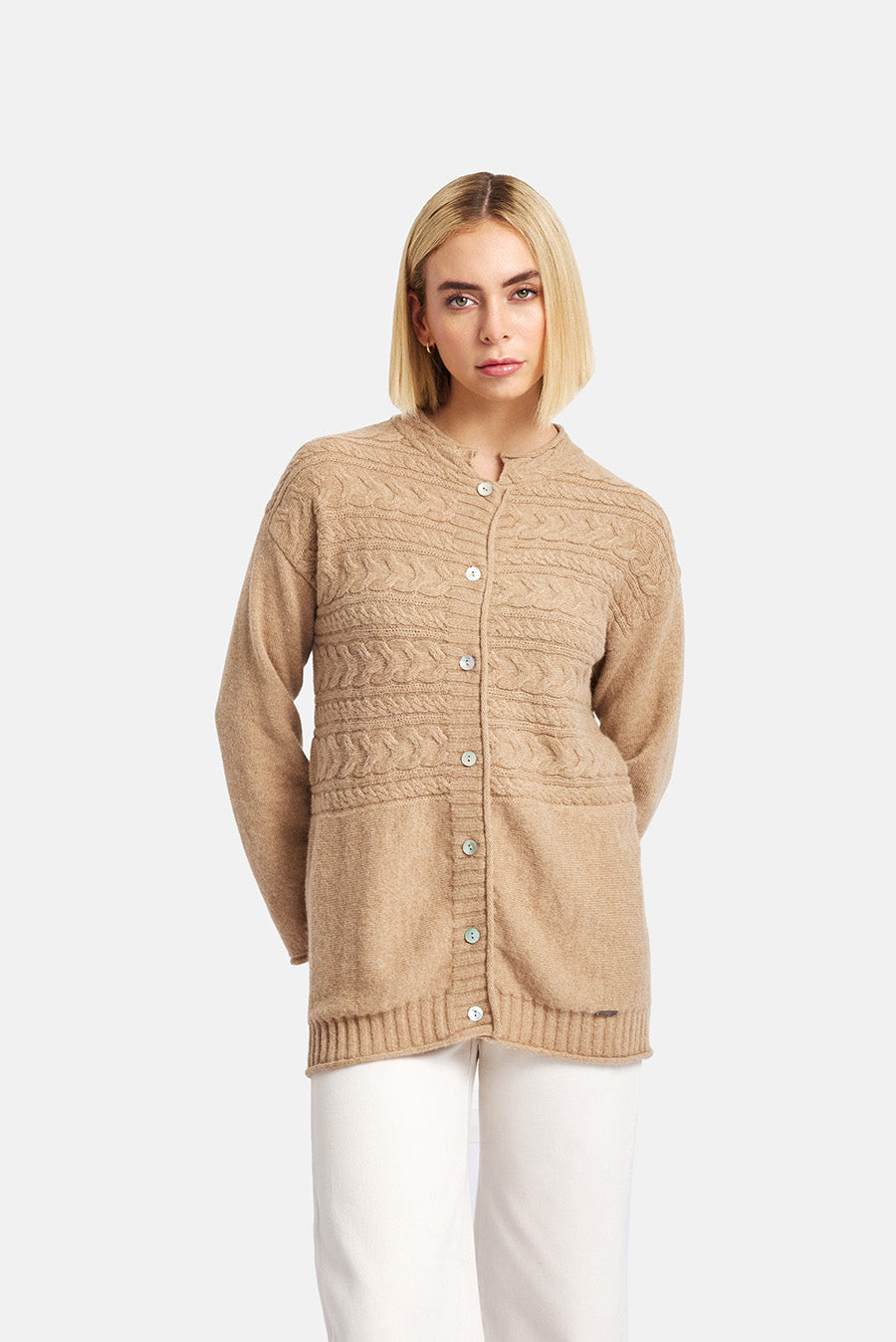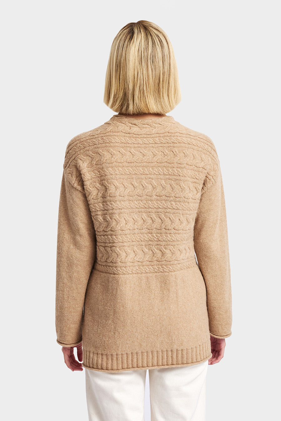 We spiced up this cosy baby alpaca cardigan by adding unique touches: braided details, embellishments on the sleeves, and buttons to finish the look.