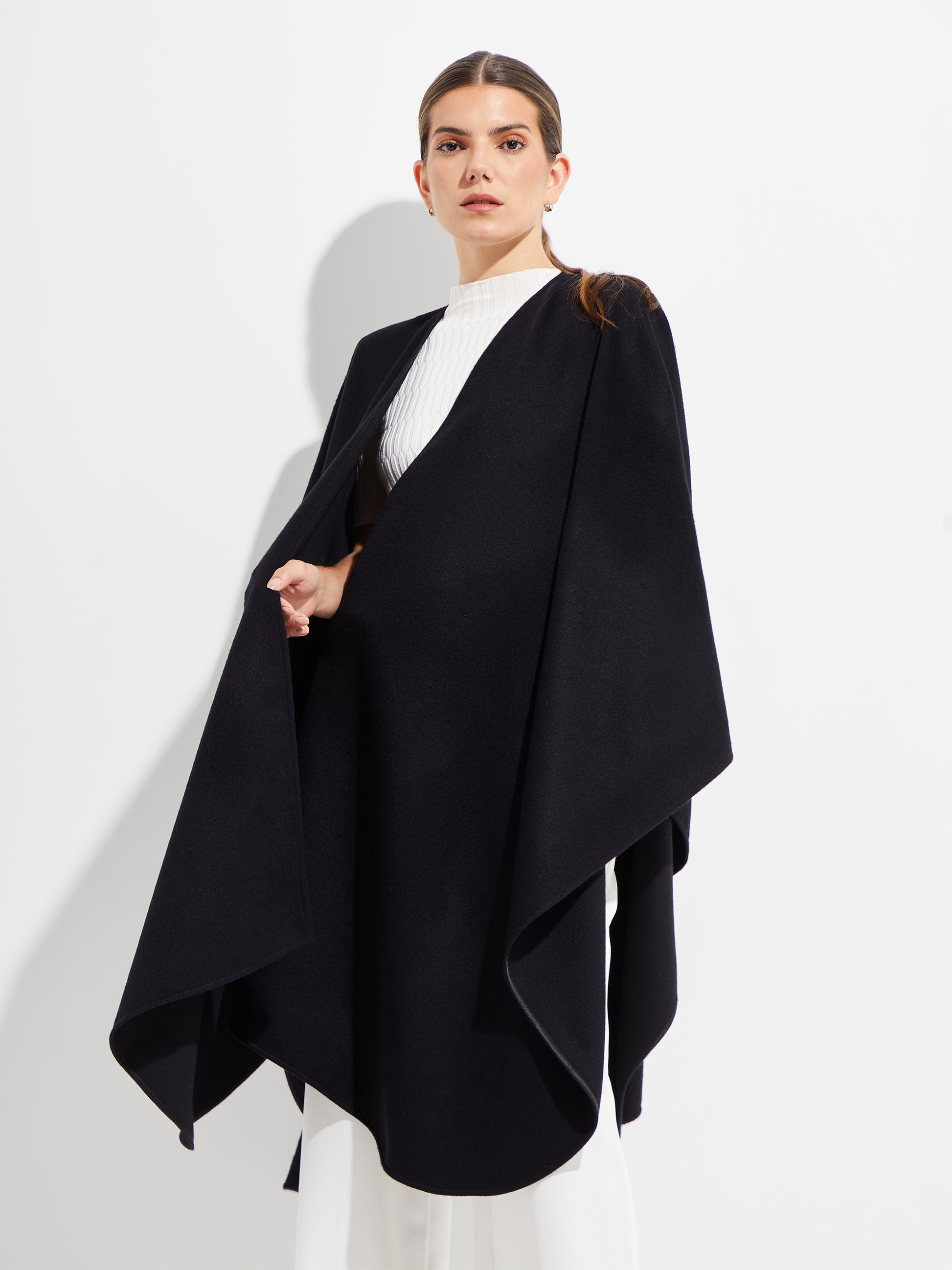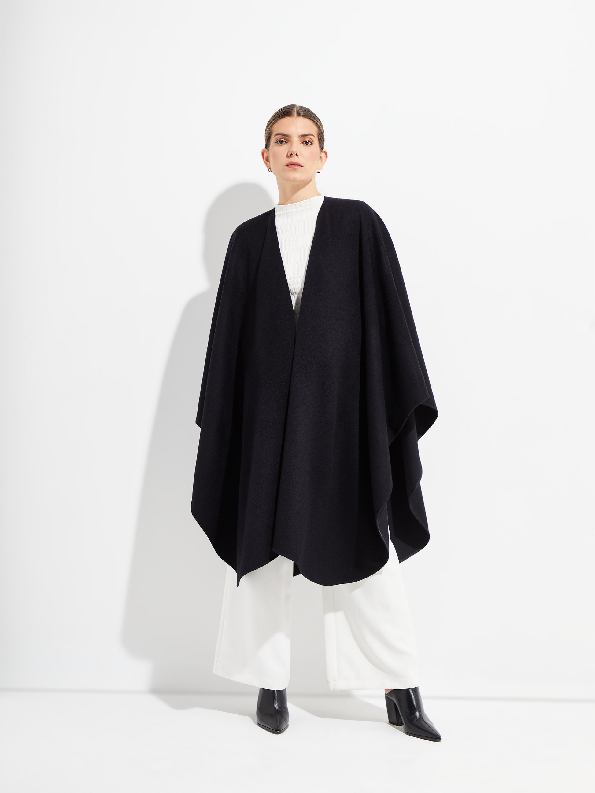 Expression of elegance and warmth with the Grun cape. Experience the exceptional softness provided by the finest Royal Alpaca fibre it is made of.