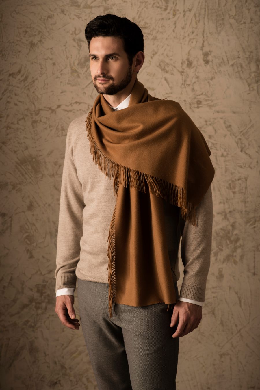 This scarf with fringes on the edges is made of vicuña fibre, the finest and rarest in the world. This unique material has been impeccably woven to create a lightweight and exclusive accessory. The article is unique, as each scarf is numbered.