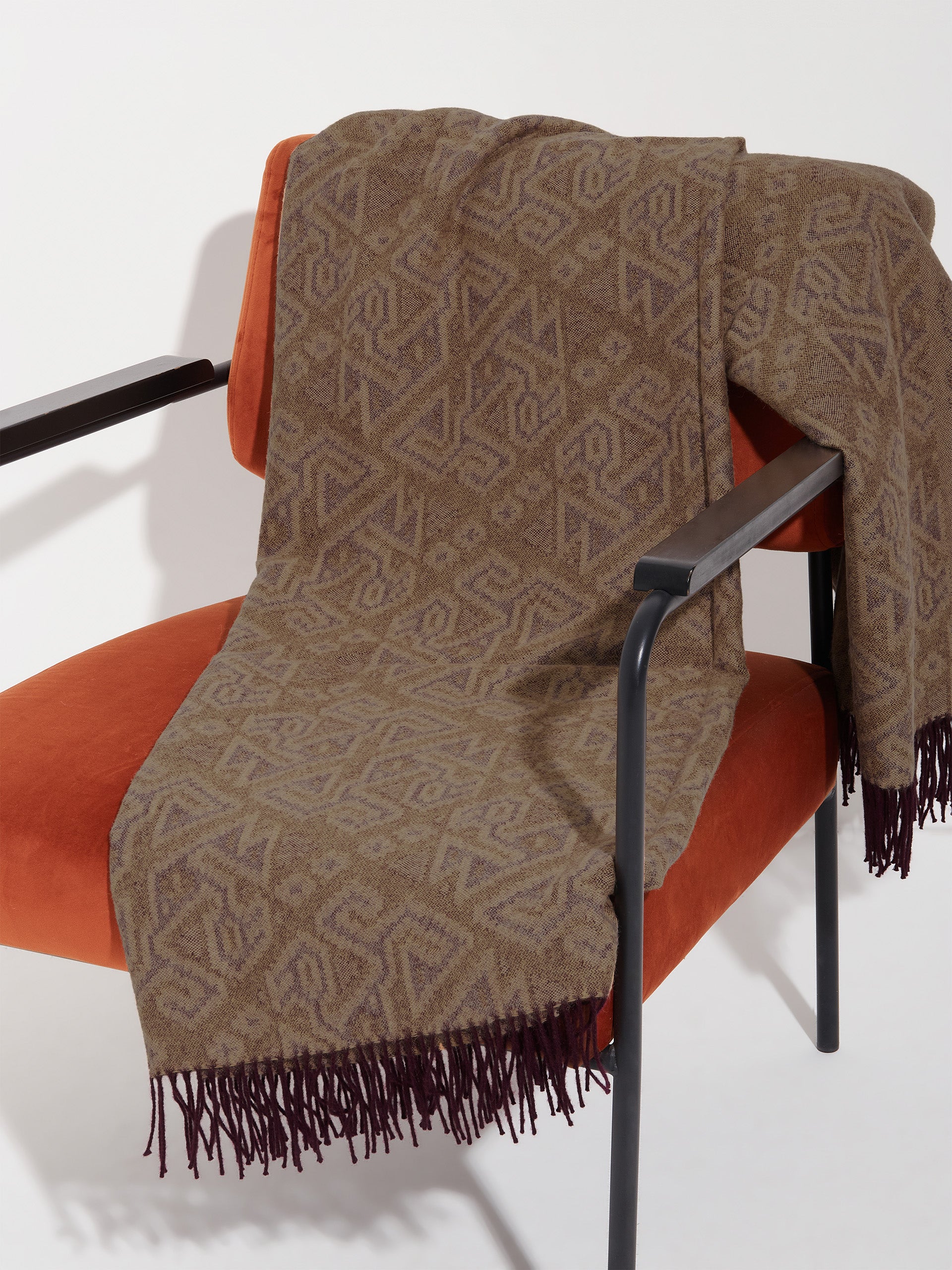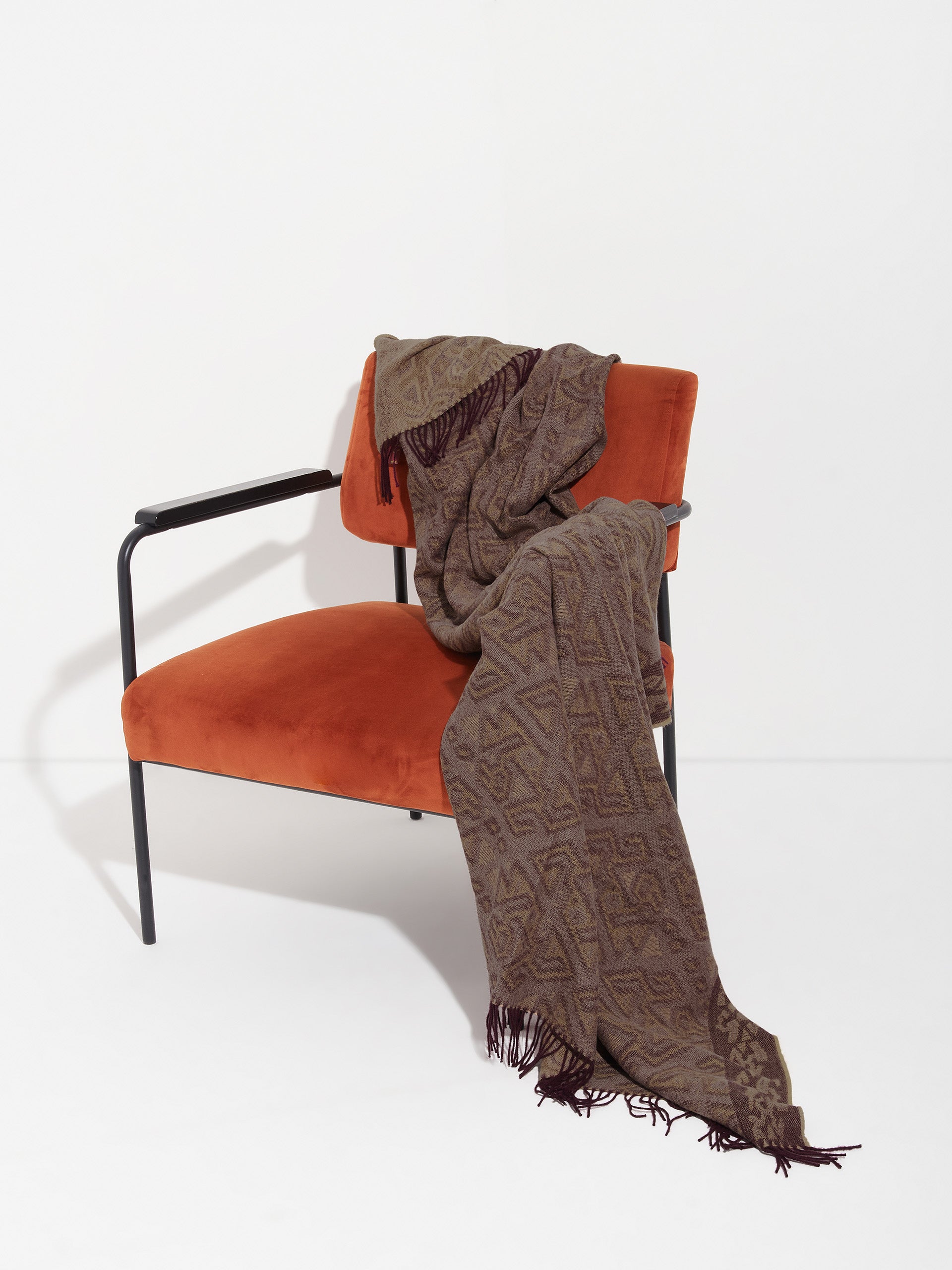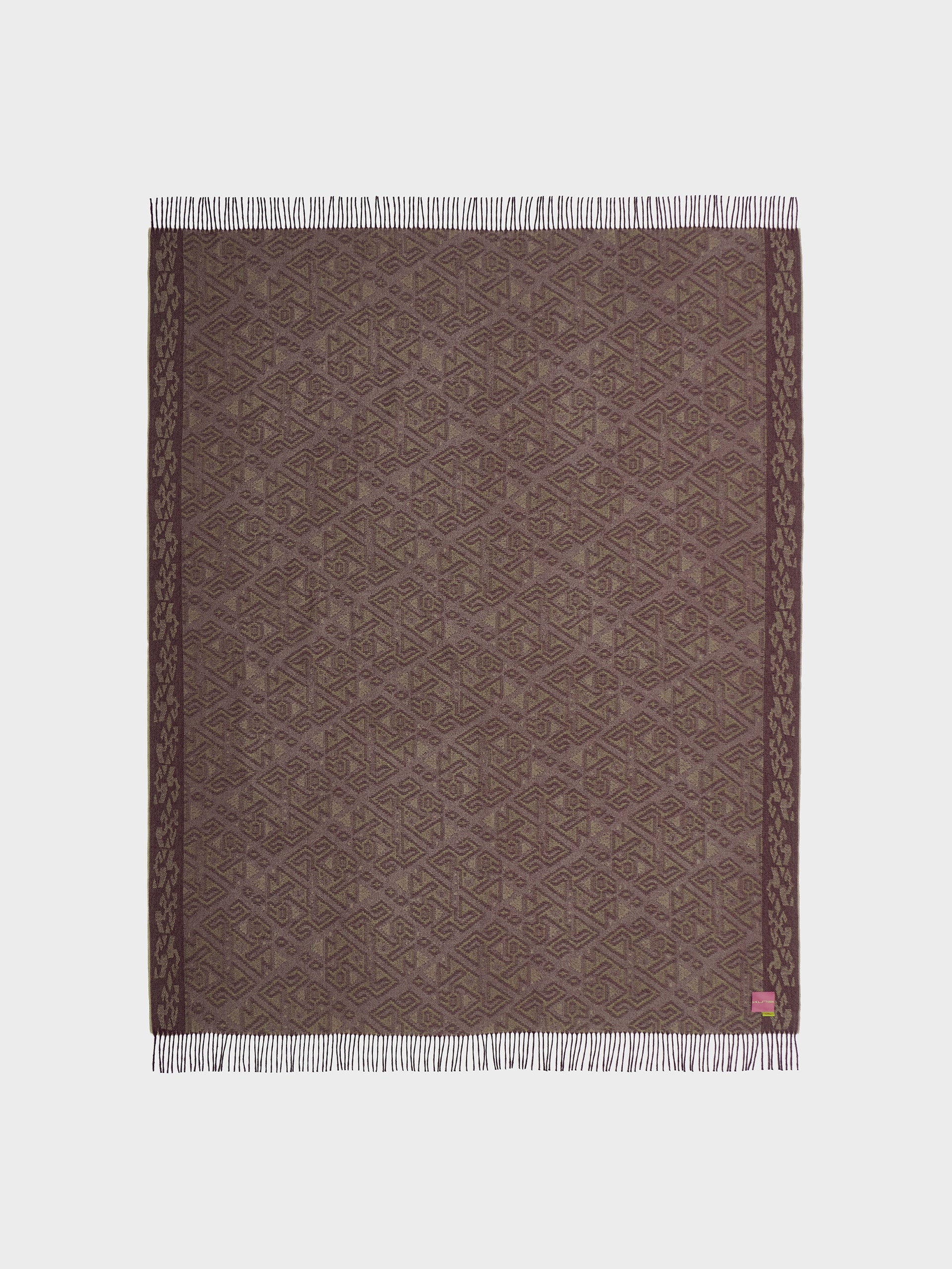 Chincha 2 blanket in cherry red, made from 100% baby alpaca using a double-sided Jacquard technique. Measuring 200/184 x 145 cm, it is inspired by the Chincha culture, evoking the richness of ancient traditions through a design with cultural identity. | Predominant material: Baby Alpaca
