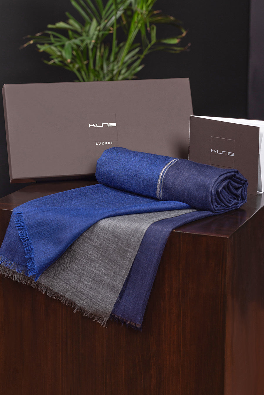 Barnabe Shawl Royal Alpaca Blue & Beige