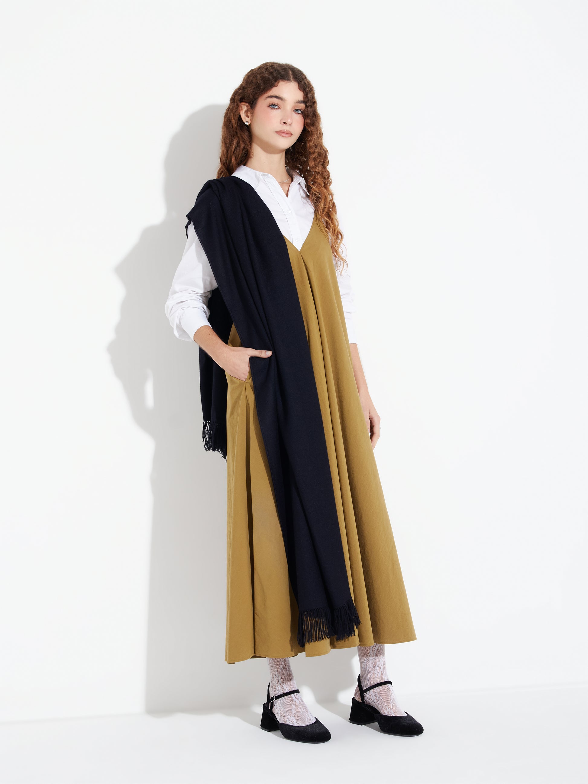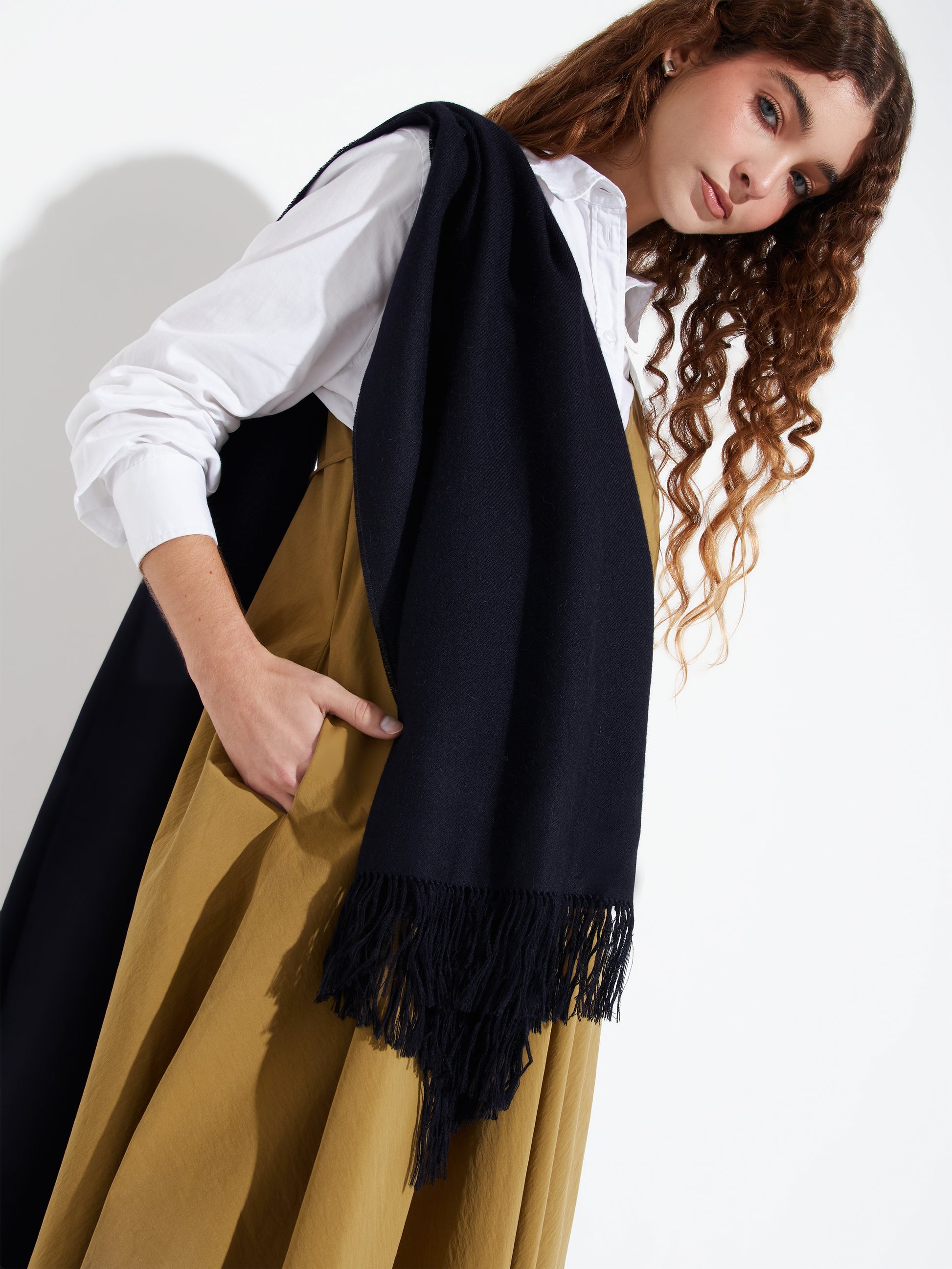 Soft royal alpaca stole with long bangs on the sides. A versatile and lightweight accessory capable of adding a beautiful touch to your evening looks.