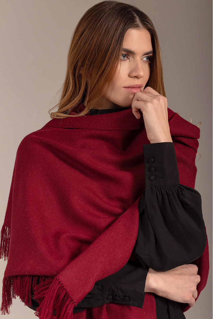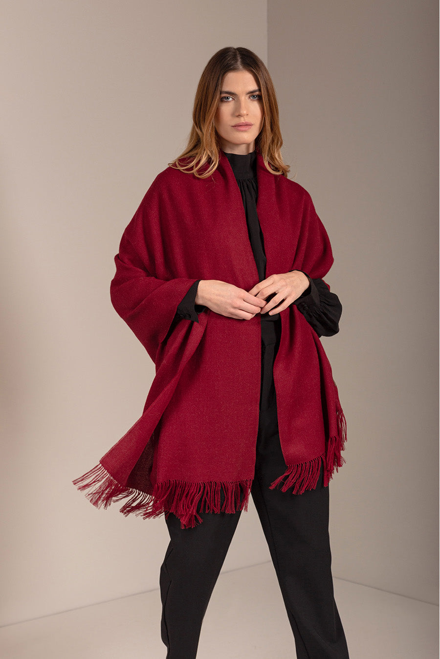 Soft royal alpaca stole with long bangs on the sides. A versatile and lightweight accessory capable of adding a beautiful touch to your evening looks.