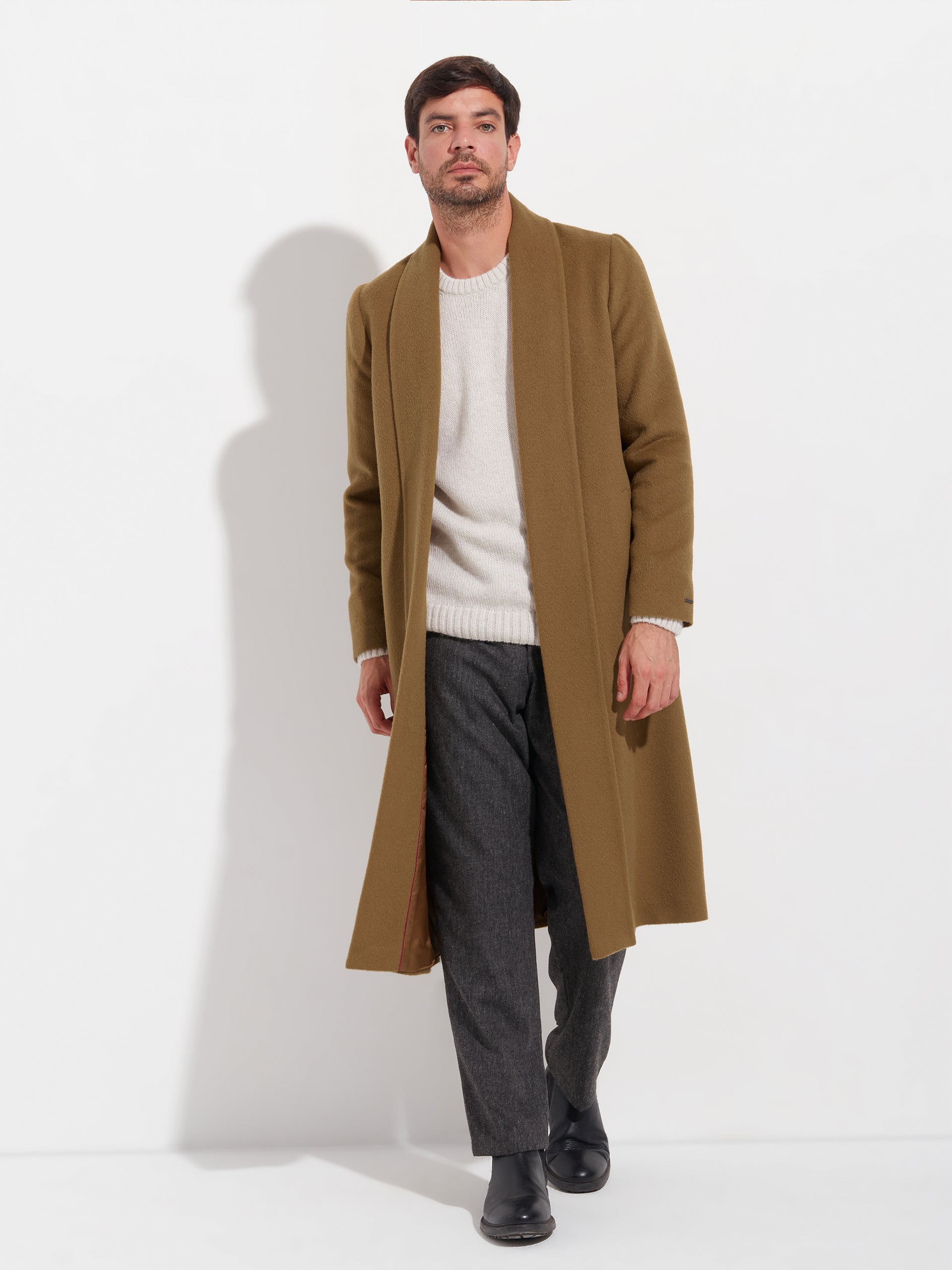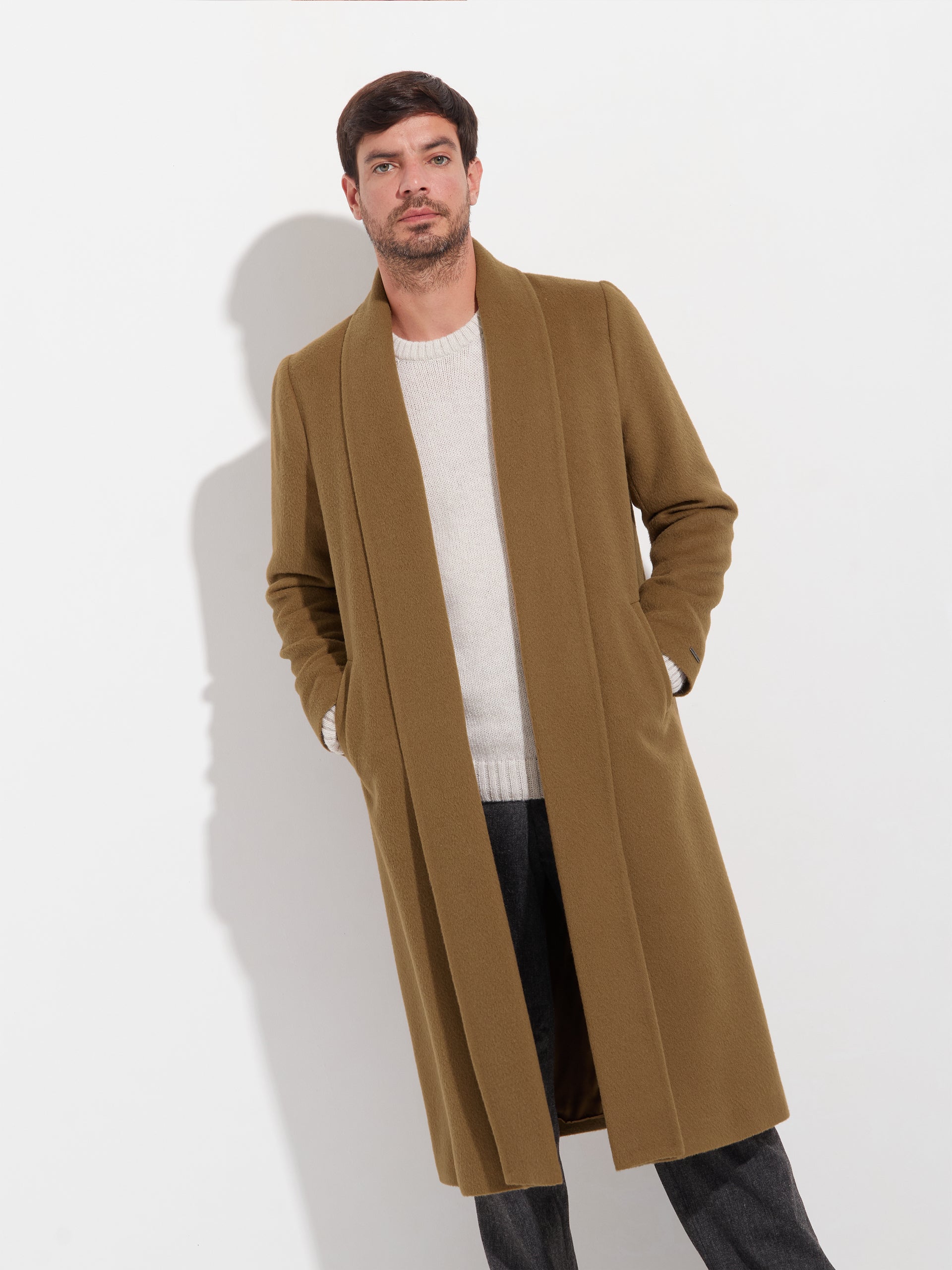 The Long Swing overcoat is a masterpiece of elegance and functionality where the sober is intertwined with flashes of subtle shine. Made from the finest fiber in the world, each detail of this exclusive garment exudes luxury and quality. Its sophisticated design adds a touch of refinement to any outfit. | Material predominante: Baby Alpaca