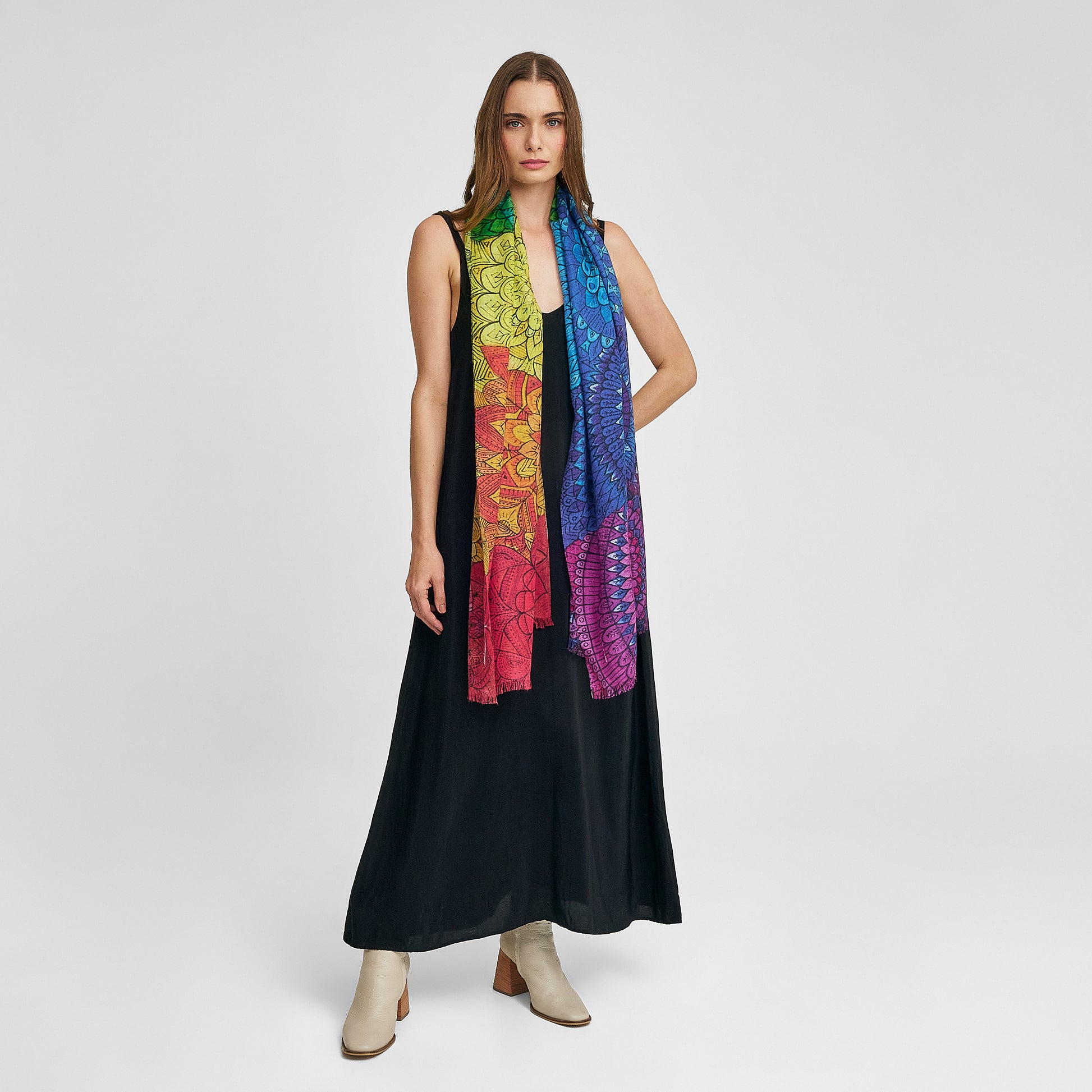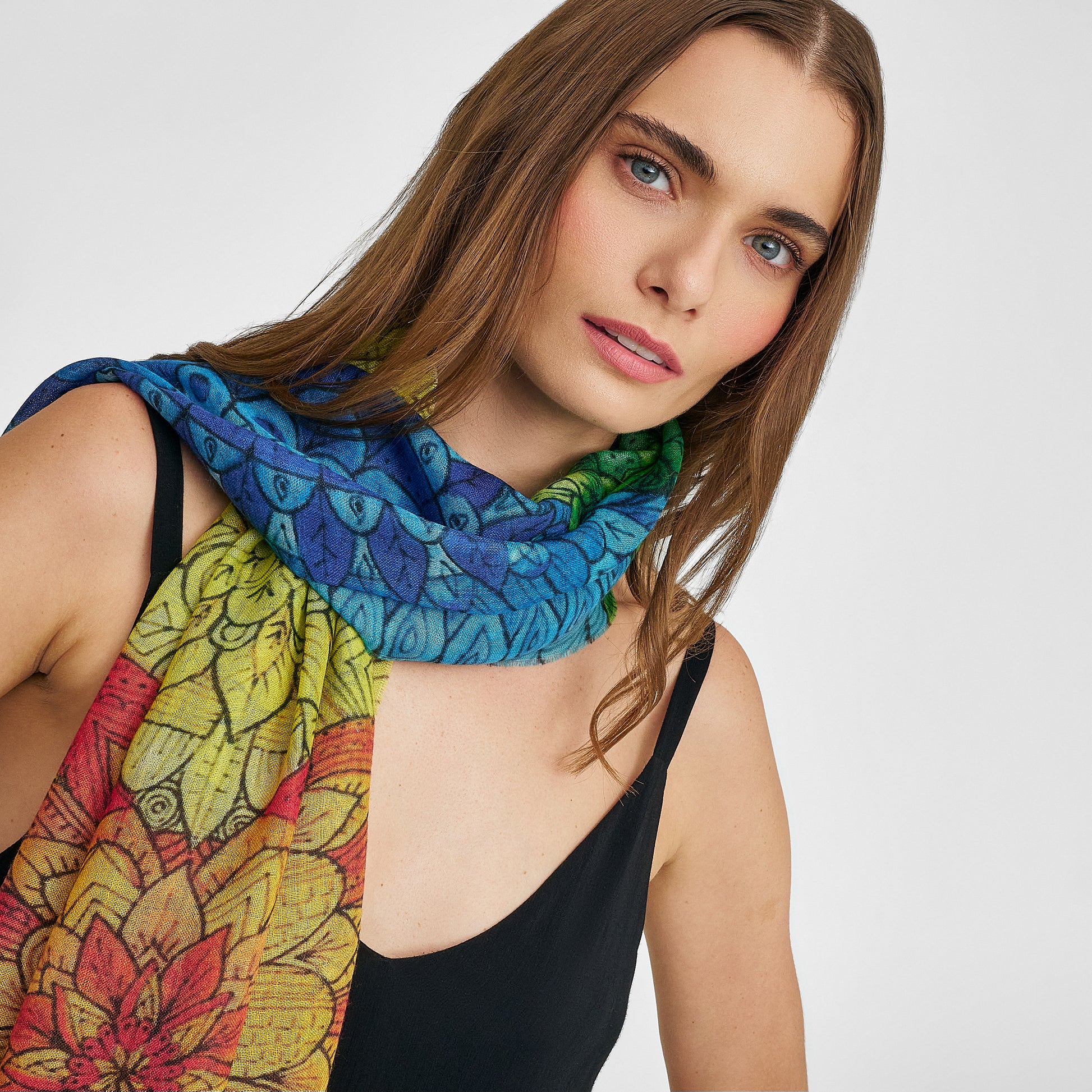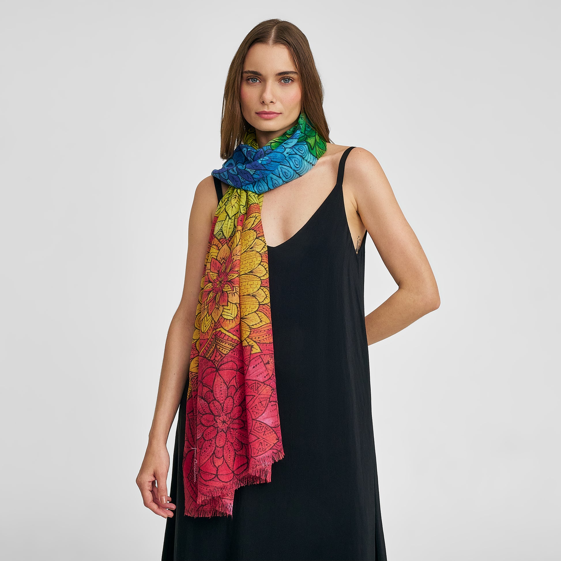 You stop taking everything personally and understand that everyone has their own process, that time is not important when it comes to healing. It becomes easier and easier to be in balance. "I trust that everything is being created in the best way for me." This beautiful shawl has been inspired by our artist Kelly Abarca, made in baby alpaca and silk. | Predominant material: Baby Alpaca & Silk