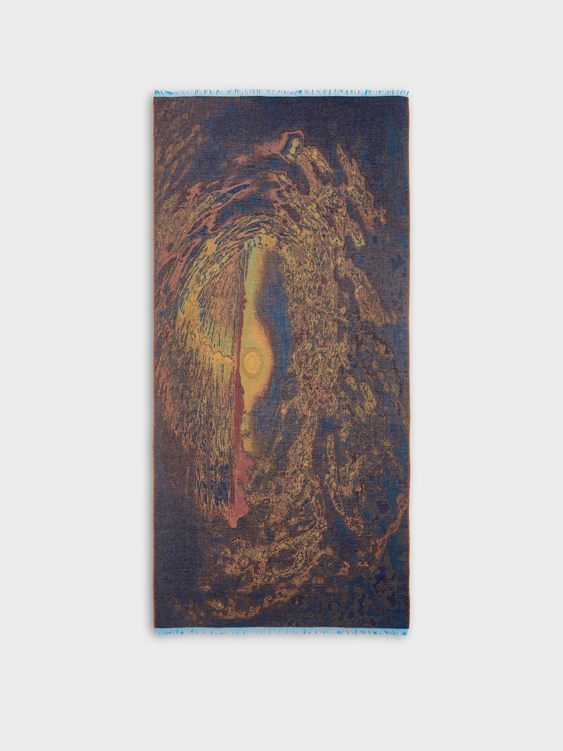 One after another, the enormous waves crash striking the coastline of Hawaii’s archipelago. Touristis and surfers indulge with this epectacle. The latter ones defy the colossal waves of this natural playhground that expels energy through its colours and invites us to enjoy the strength of its scenery | Predominant material: Royal Alpaca And Silk