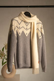 A perfect blend of warmth and style. This set features a luxurious alpaca sweater paired with a timeless scarf, both crafted from the finest quality “Baby alpaca”. Elevate your holiday wardrobe with the cozy elegance of this unique ensemble.