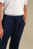 Sporty style and refined materials characterize the new pants of our Comfort Line, dedicated to relaxing moments and time at home. The soft inner pima cotton fabric is combined with the outer layer of baby alpaca and silk in a contrasting color. Side pockets and adjustable drawstring complement the style of the pants.