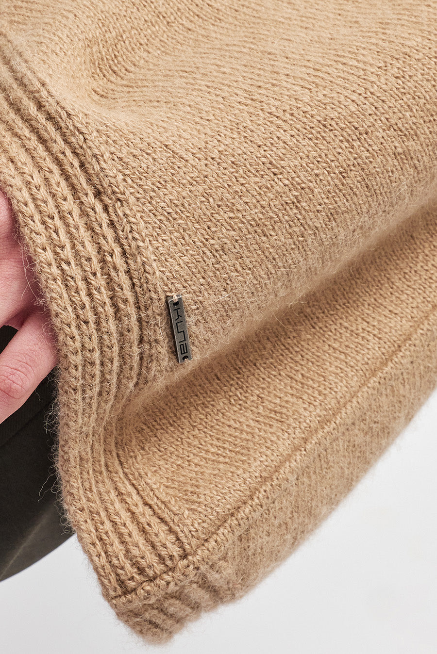 Feel the warmth and softness of a garment made entirely from baby alpaca yarn. Relaxed silhouette and solid color, an ideal garment for casual outings.