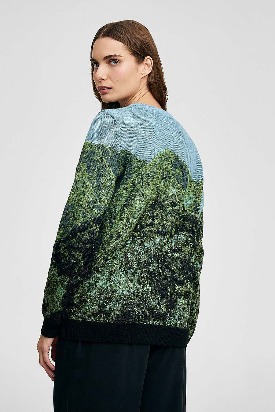 Our reversible sweater is inspired by Cordillera Azul located in the Andes of Peru, made of 100% baby alpaca. It is part of our Landscape collection. Unisex sweater.