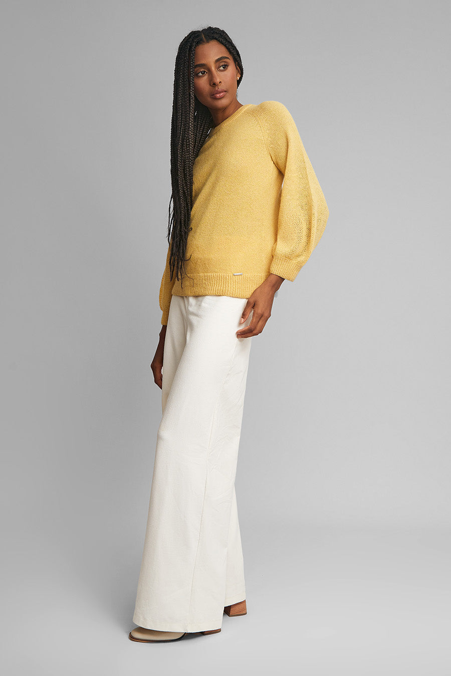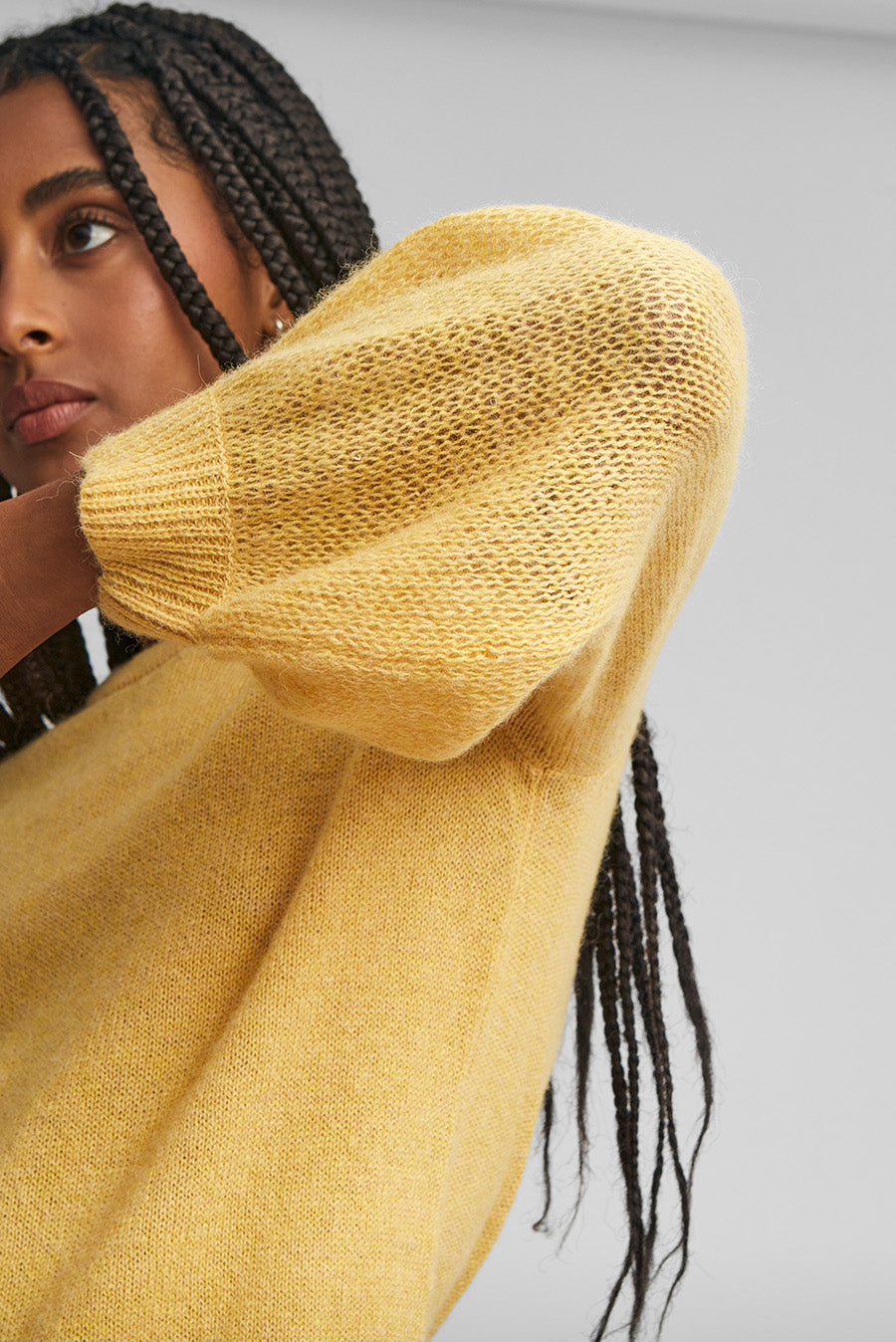 Our Wake sweater is perfect for any occasion. Made from 100% baby alpaca. It is light and soft. The detail of the jersey-knit puff sleeves gives it a special touch.