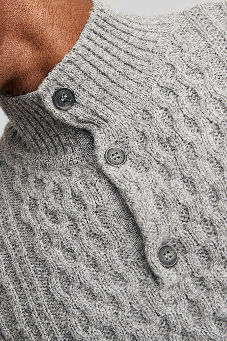 Our Watch sweater has an attractive pattern on the upper part that will make it your favorite. Its high collar accompanied by buttons makes it ideal for cold winter days.