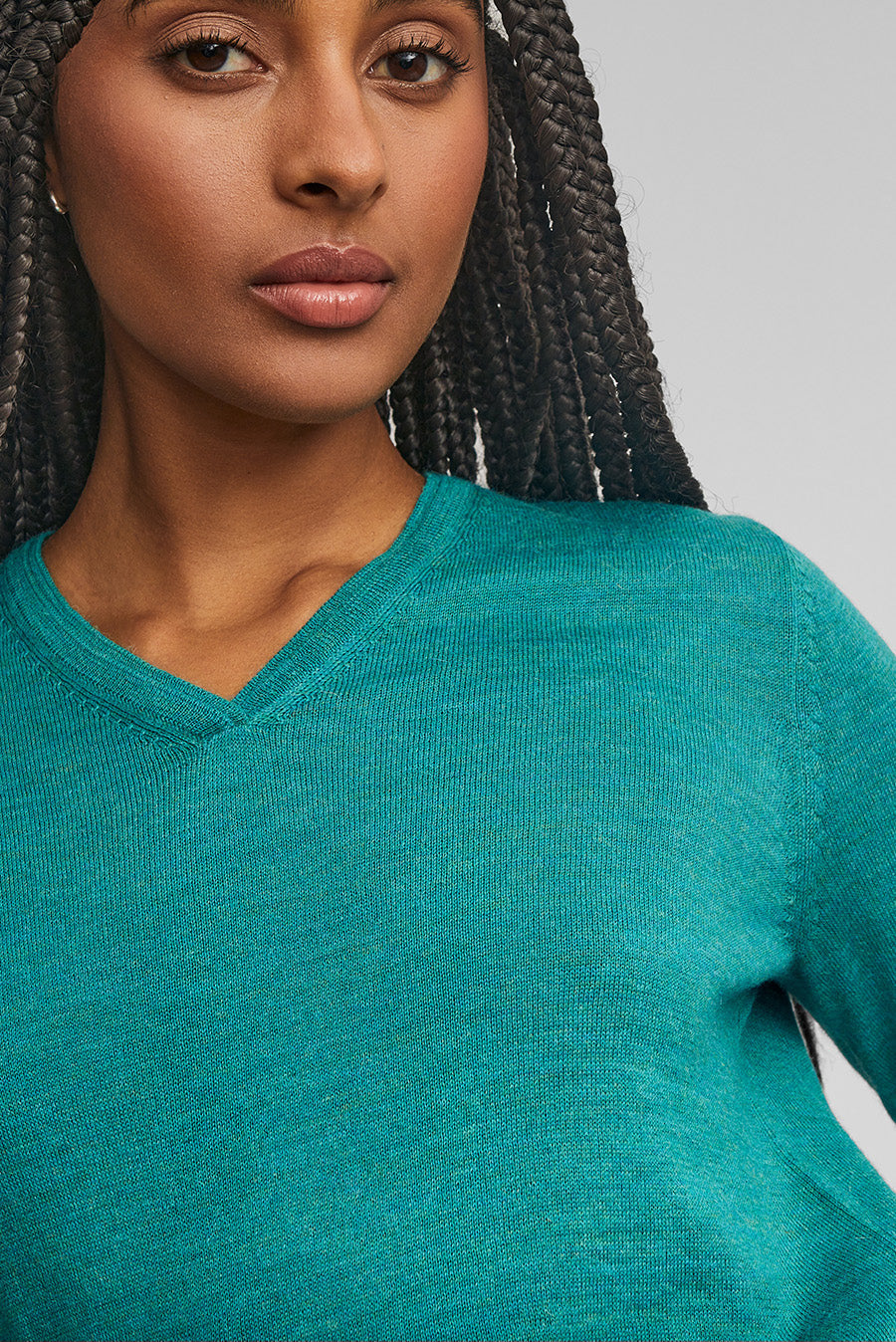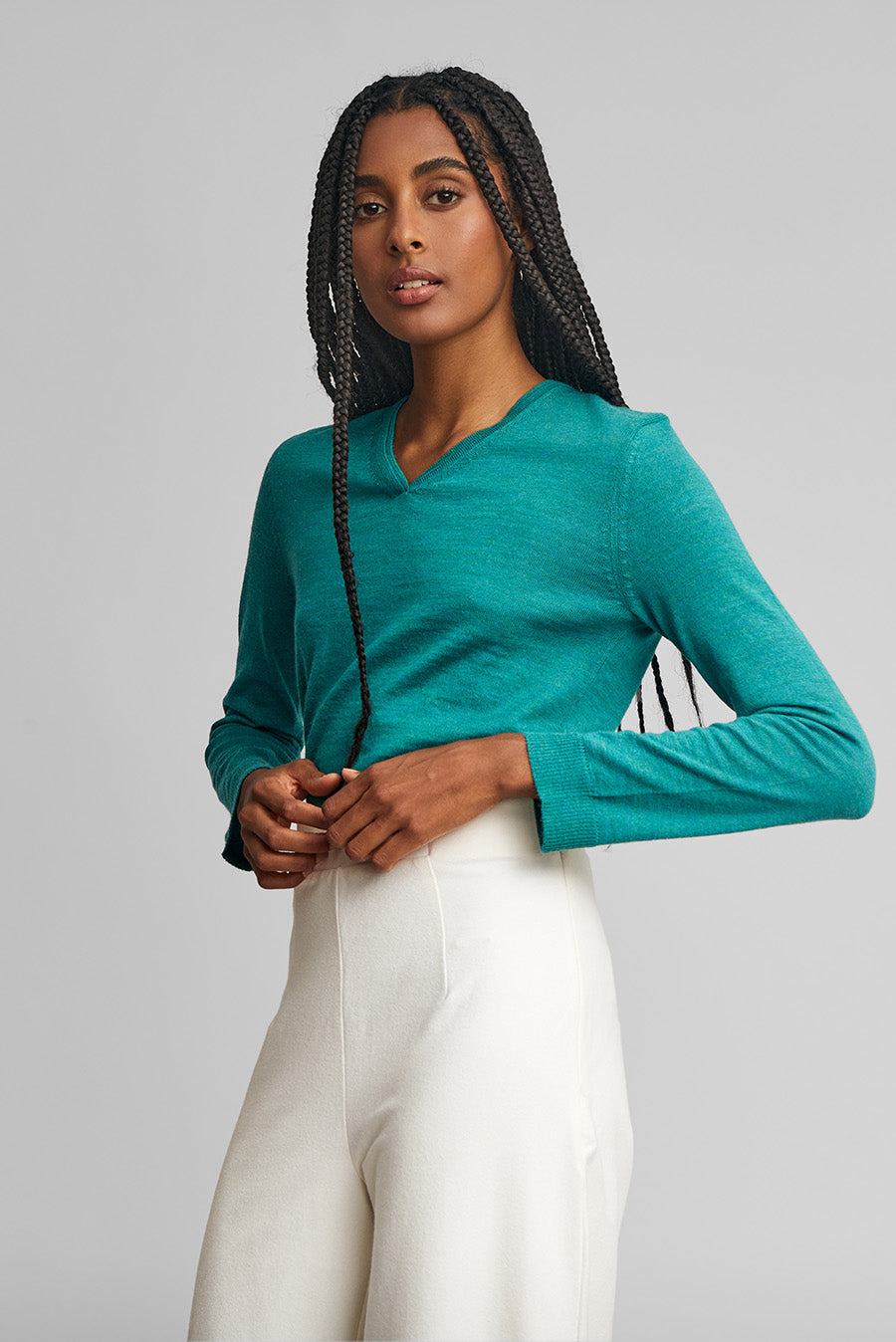 Light baby alpaca sweater in bright colors. Cozy, versatile, with a V-neck. Ideal design to give a special touch to your look.