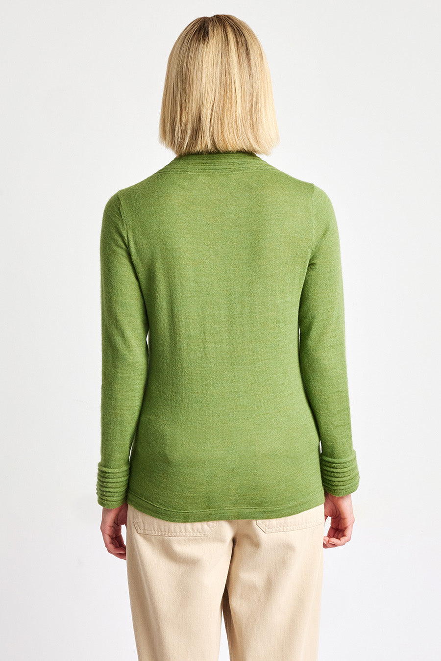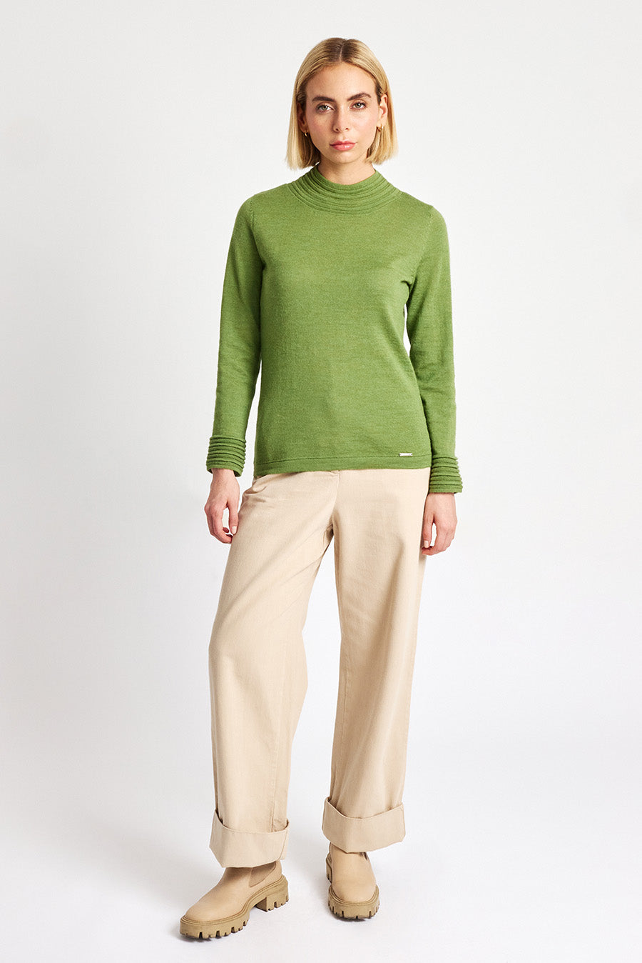 Apparently simple, but with those indescribable touches of how well done. This sweater with a round neck and long sleeves, made from baby alpaca, is one of those basic, not-so-basic, garments that we never tire of repeating.