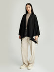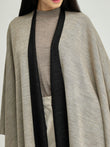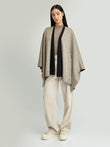 Discover the perfect harmony between finesse and sobriety with our Temira reversible poncho. This accessory fuses elegance and versatility in a single garment, giving you the freedom to choose between two distinctive styles in an instant. Make a fashion statement with this must-have item that will accompany you on any occasion. | Material predominante: Baby Alpaca