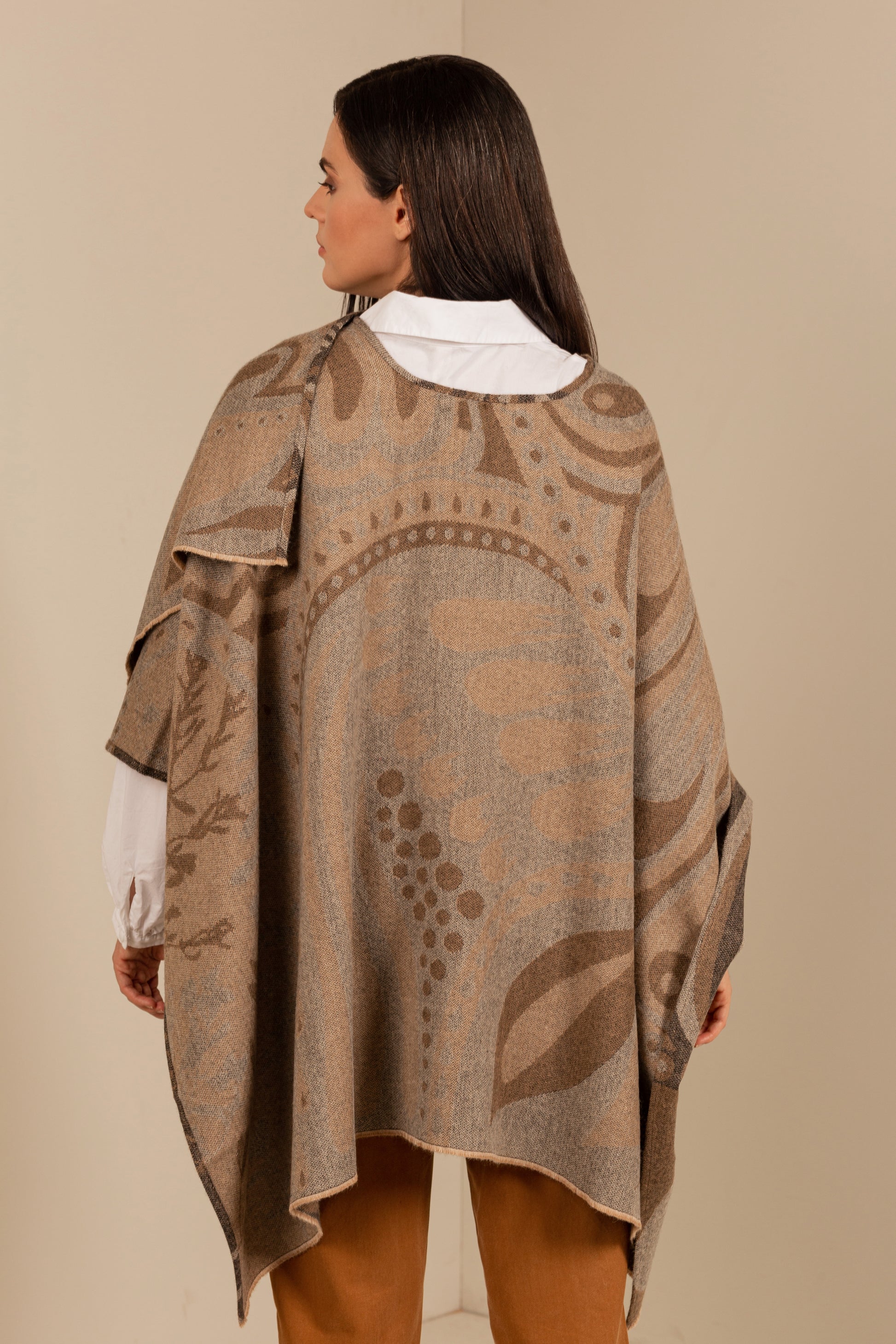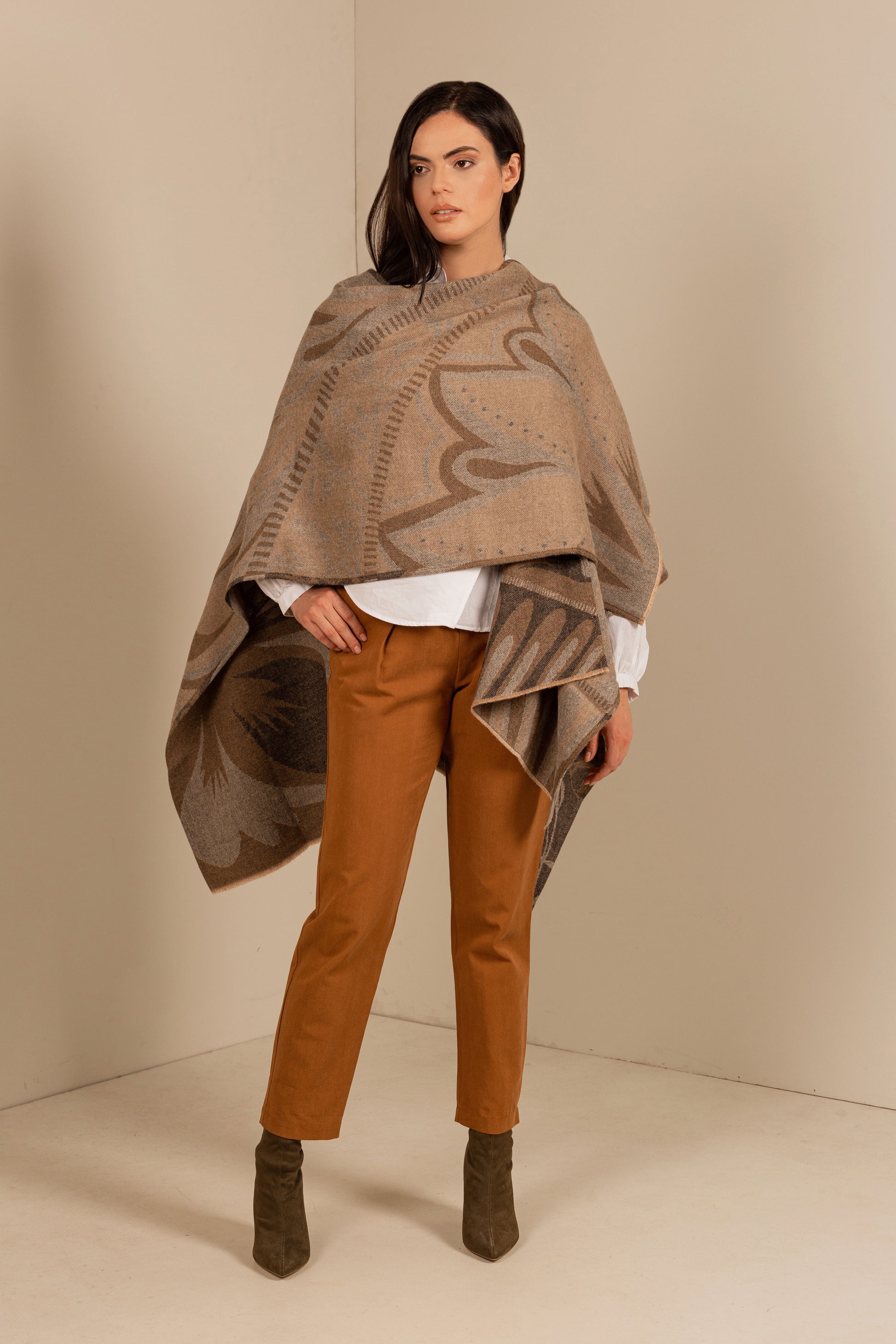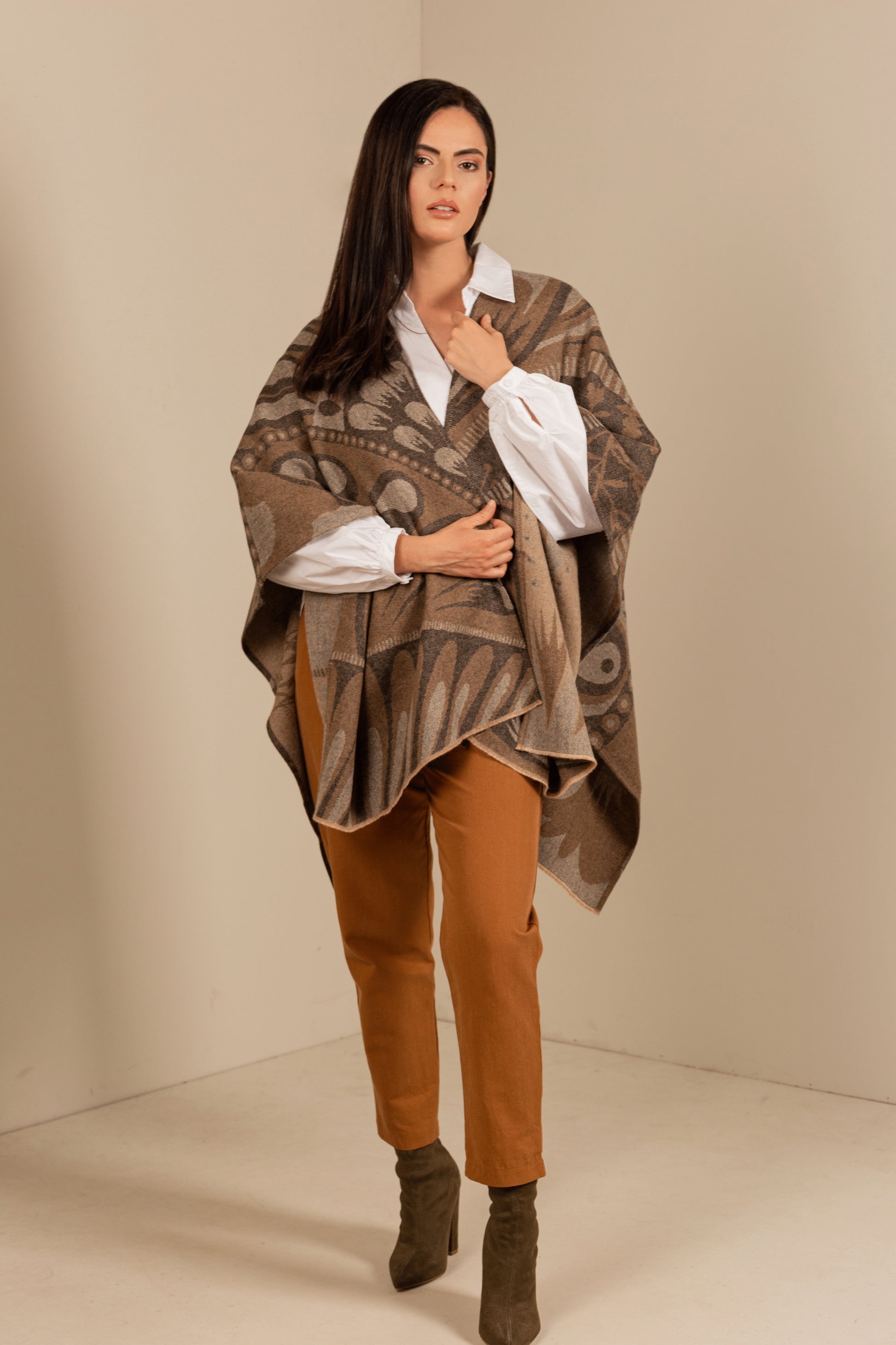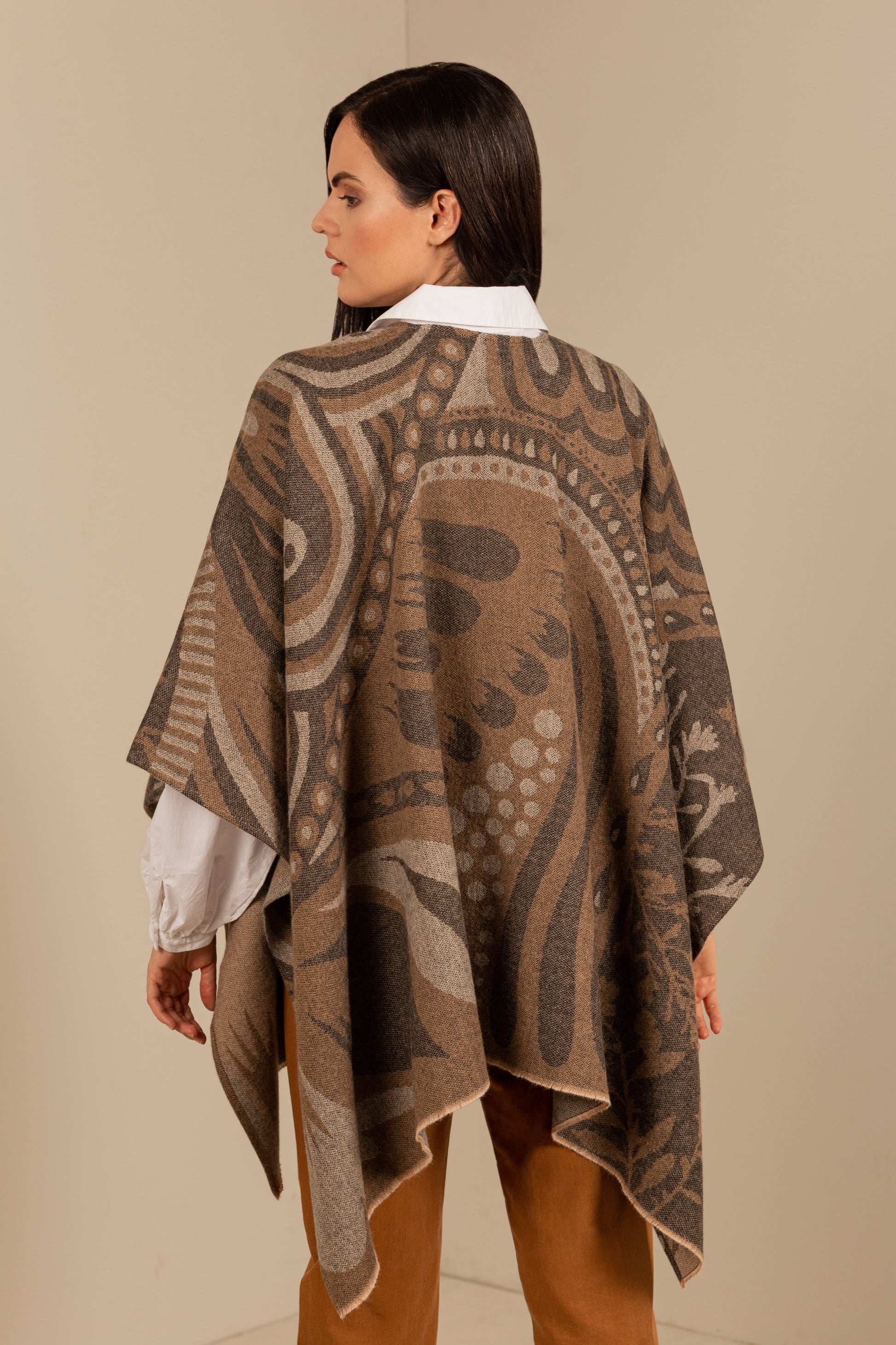 Reinvent your style with our Usher cape. The colours chosen to enhance the beautiful jacquard design are great to accentuate your unique style. Wear it with jeans for a casual look or with a dress for a more sophisticated occasion.