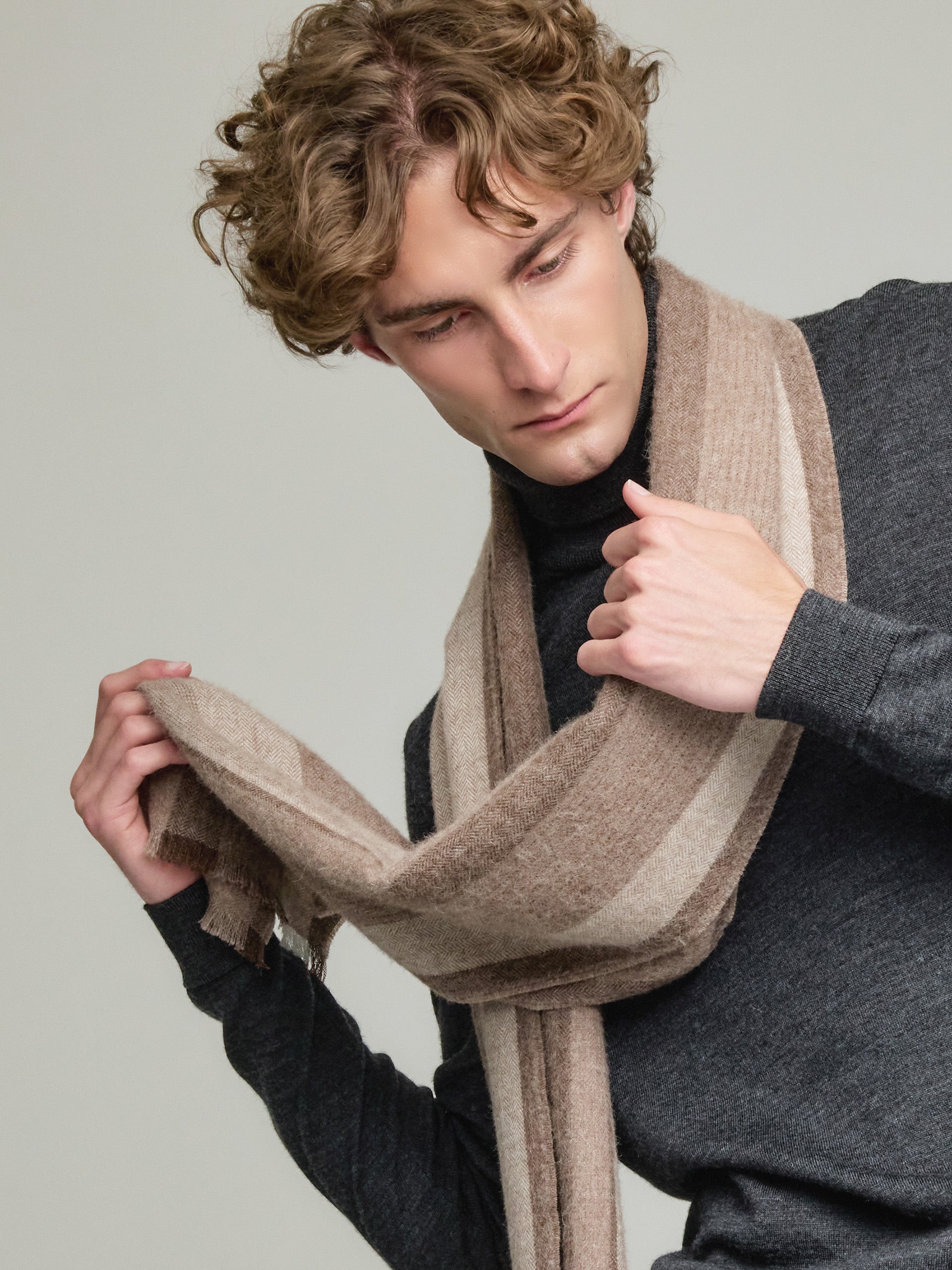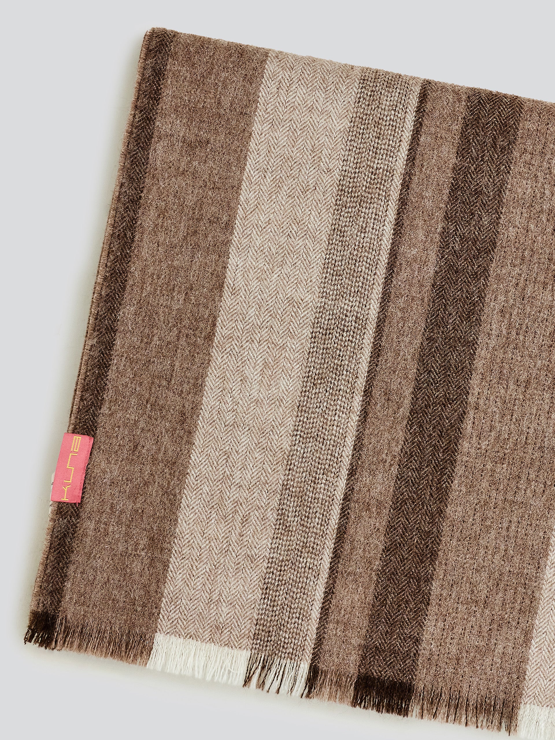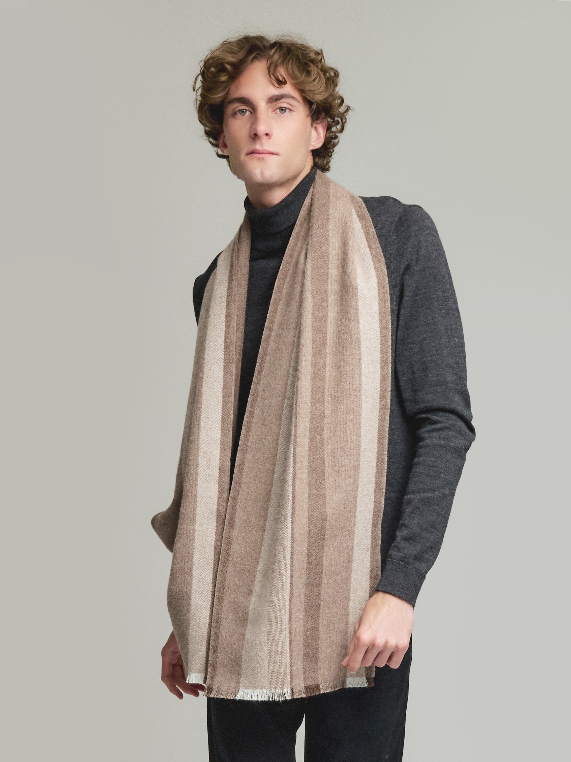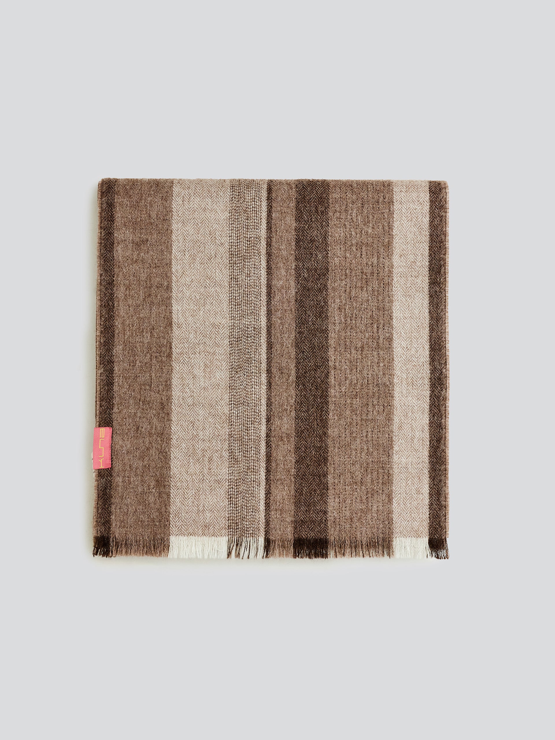 This warm and soft baby alpaca scarf adds the perfect touch of style to your outfits with its striped design. Sober colors are the characteristics that make this accessory a must-have for this season. Timeless and elegant, it will keep you warm with style. | Material predominante: Baby Alpaca
