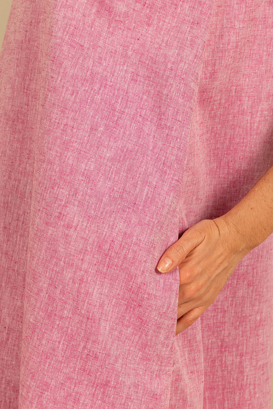 Fresh and light materials reinterpret the casual inspiration of our Ucina dress, made of linen and cotton fabric. The summery texture enhances the linear and fluid silhouette of the garment. Round neck and side pockets for comfort.