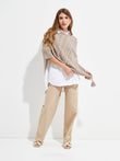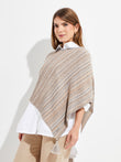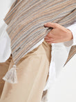 The Walnut cape, with a striped design and round neckline, is a must-have item in any wardrobe. Its pompom details at the tips add a distinctive touch. This woven fabric garment, available in two beautiful shades, is made of organic cotton and baby alpaca, guaranteeing both style and warmth. | Predominant material: Cotton