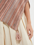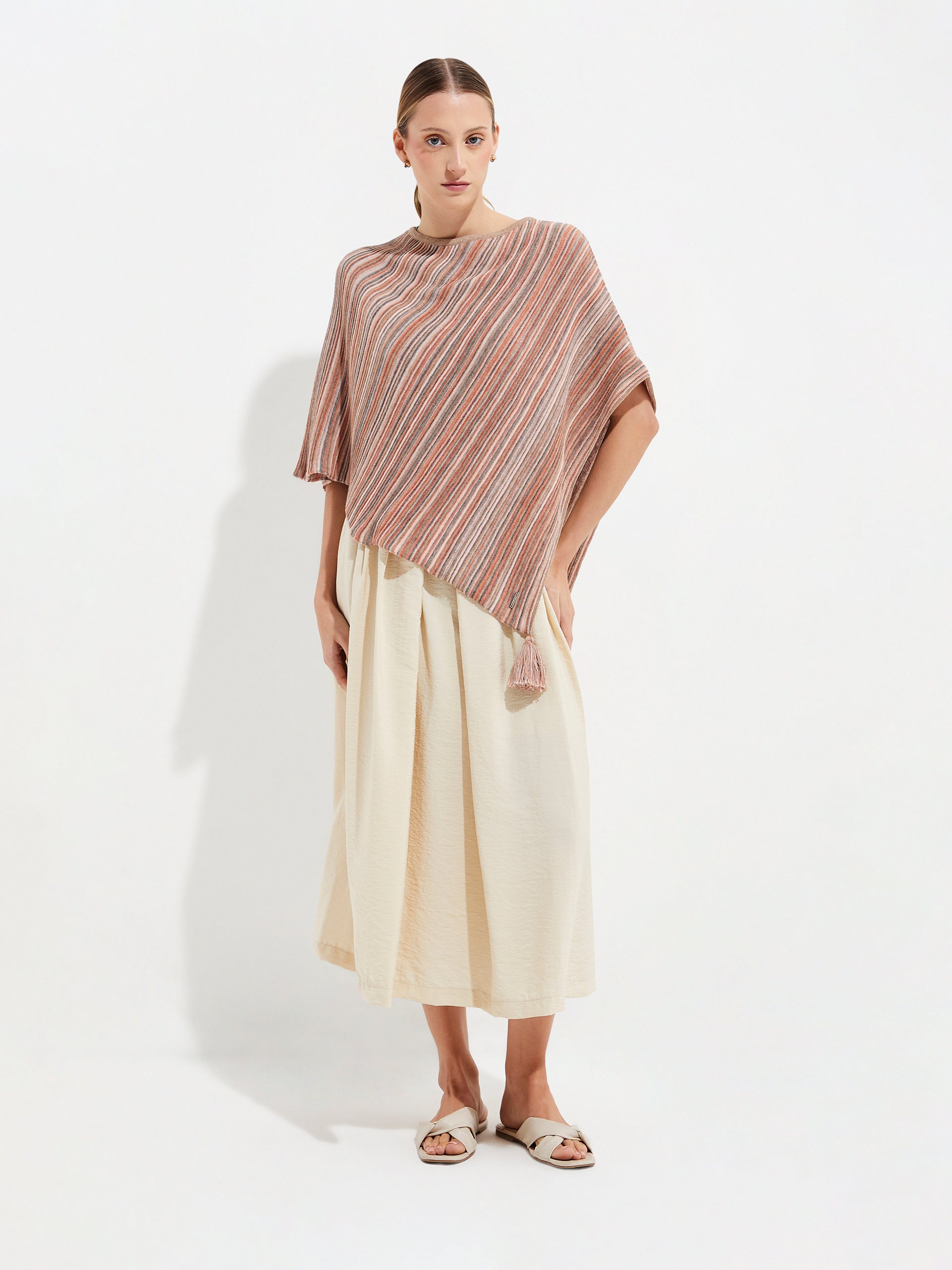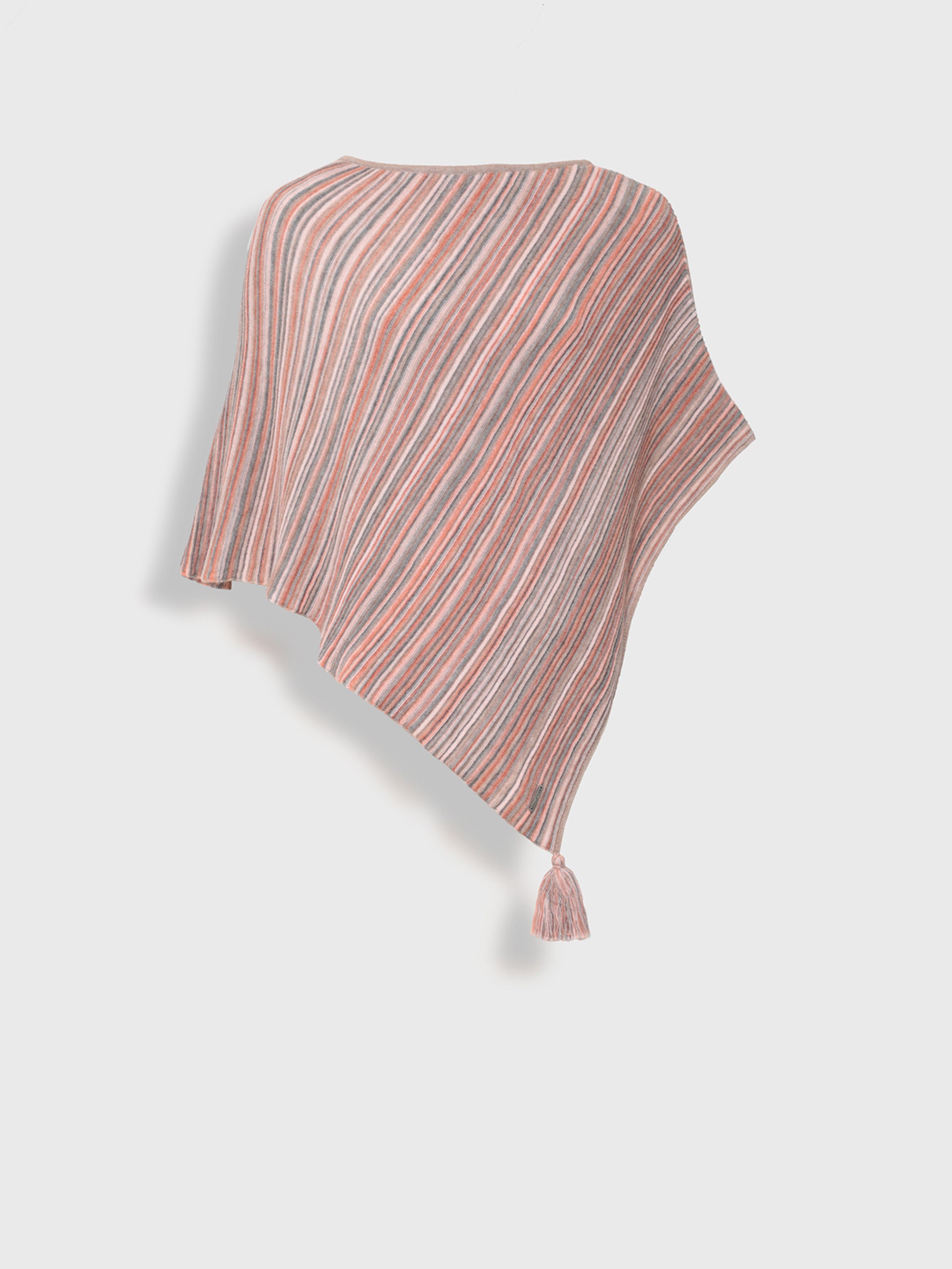 The Walnut cape, with a striped design and round neckline, is a must-have item in any wardrobe. Its pompom details at the tips add a distinctive touch. This woven fabric garment, available in two beautiful shades, is made of organic cotton and baby alpaca, guaranteeing both style and warmth. | Predominant material: Cotton